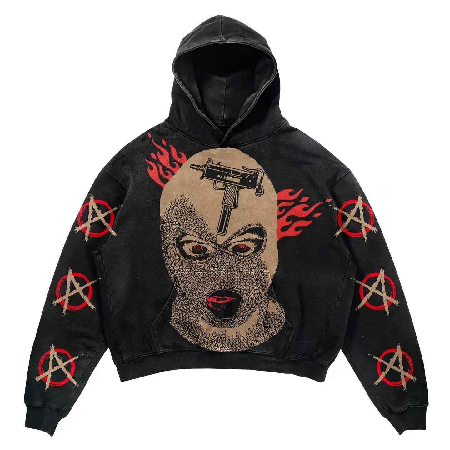 跨境热销街头潮牌骷髅套头卫衣周边3D数码印花休闲宽松连帽卫衣