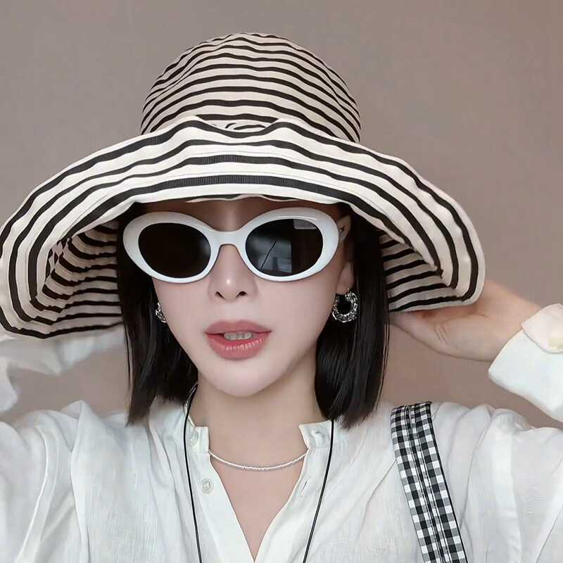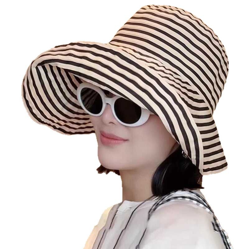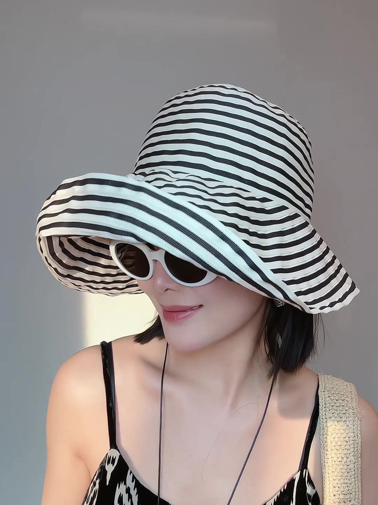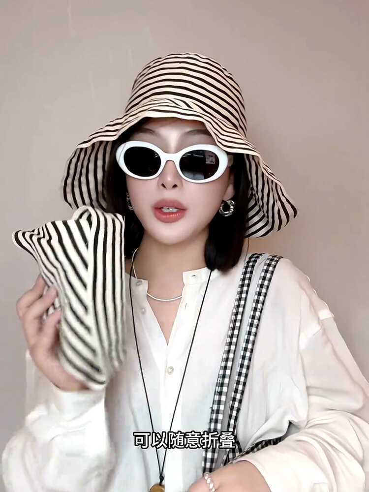帽子女夏季新款户外渔夫帽防晒遮阳太阳帽女款条纹时尚遮阳帽批发