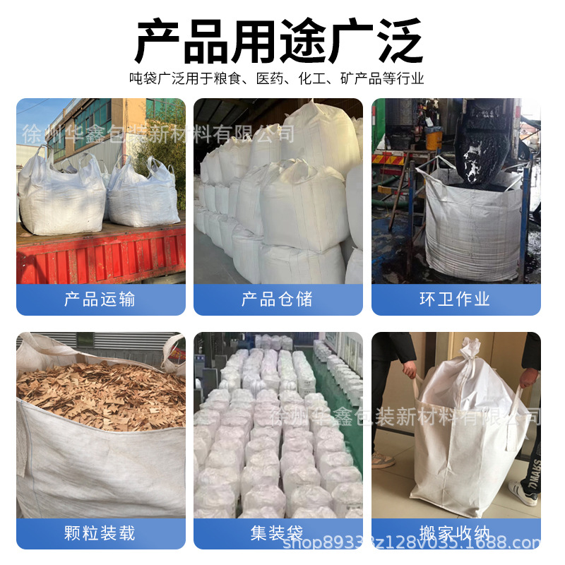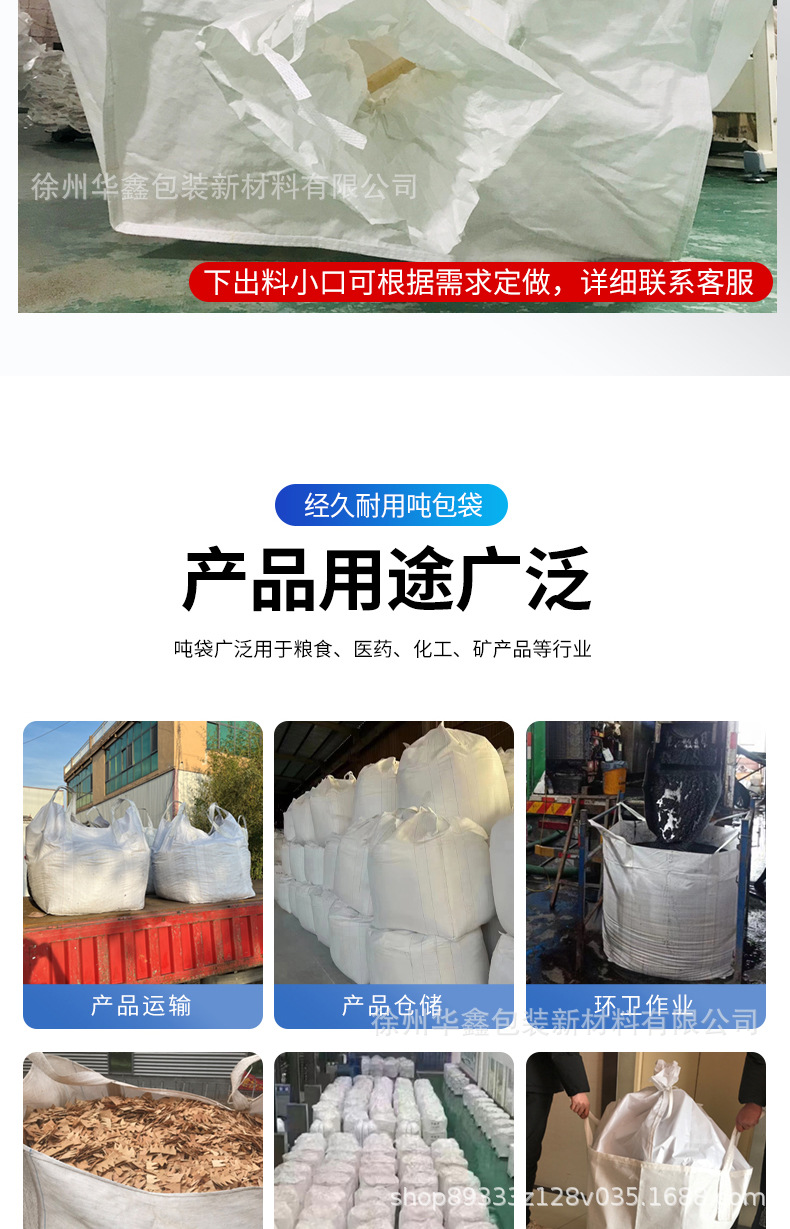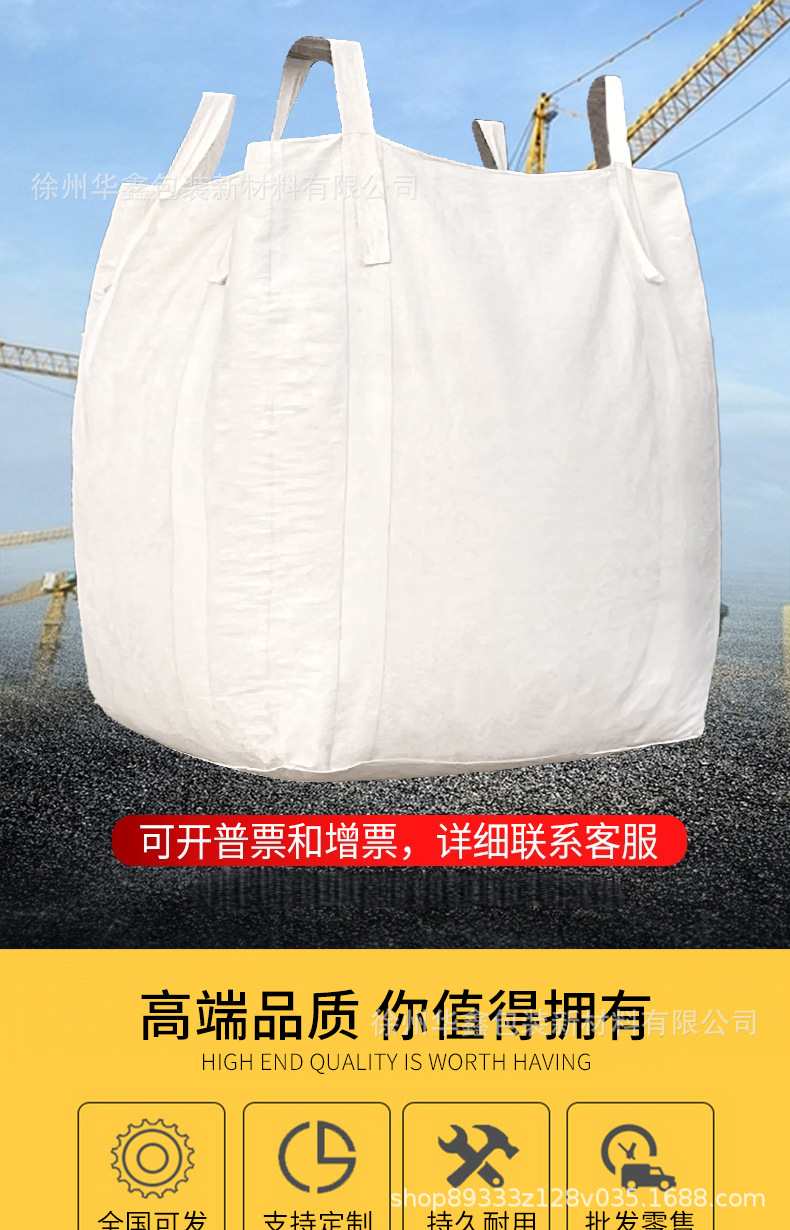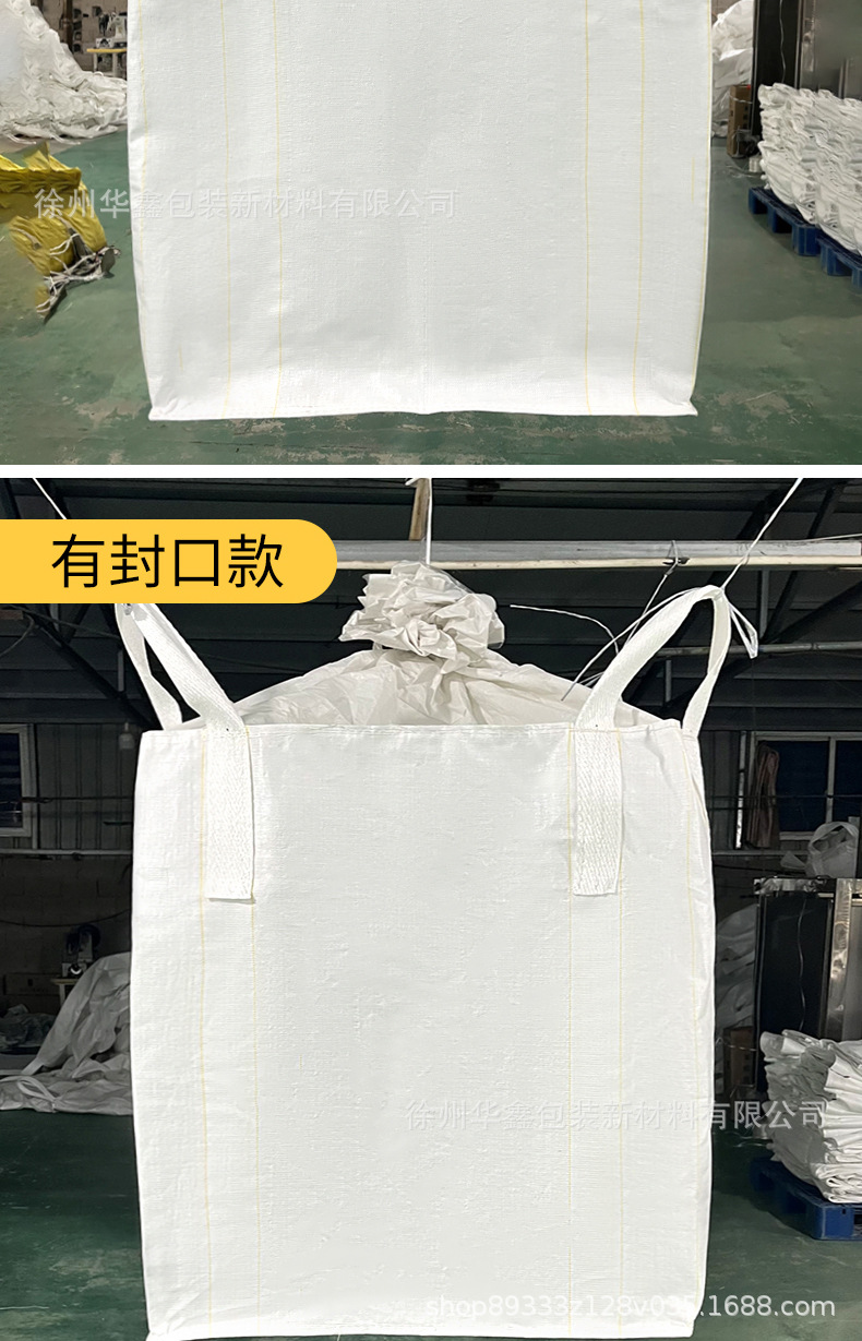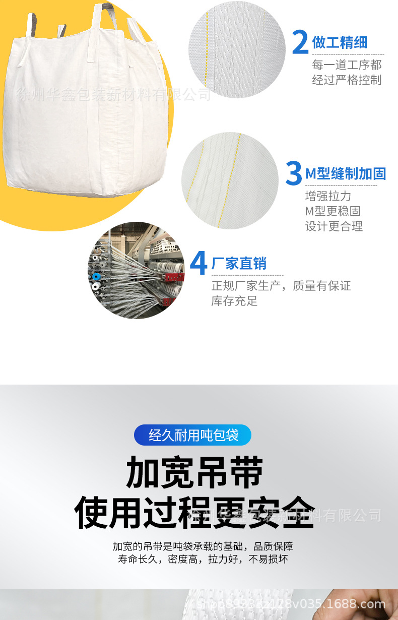 白色吨袋吨包带厂家批发1吨2吨集装袋现货全新pp料加厚四吊吨包袋