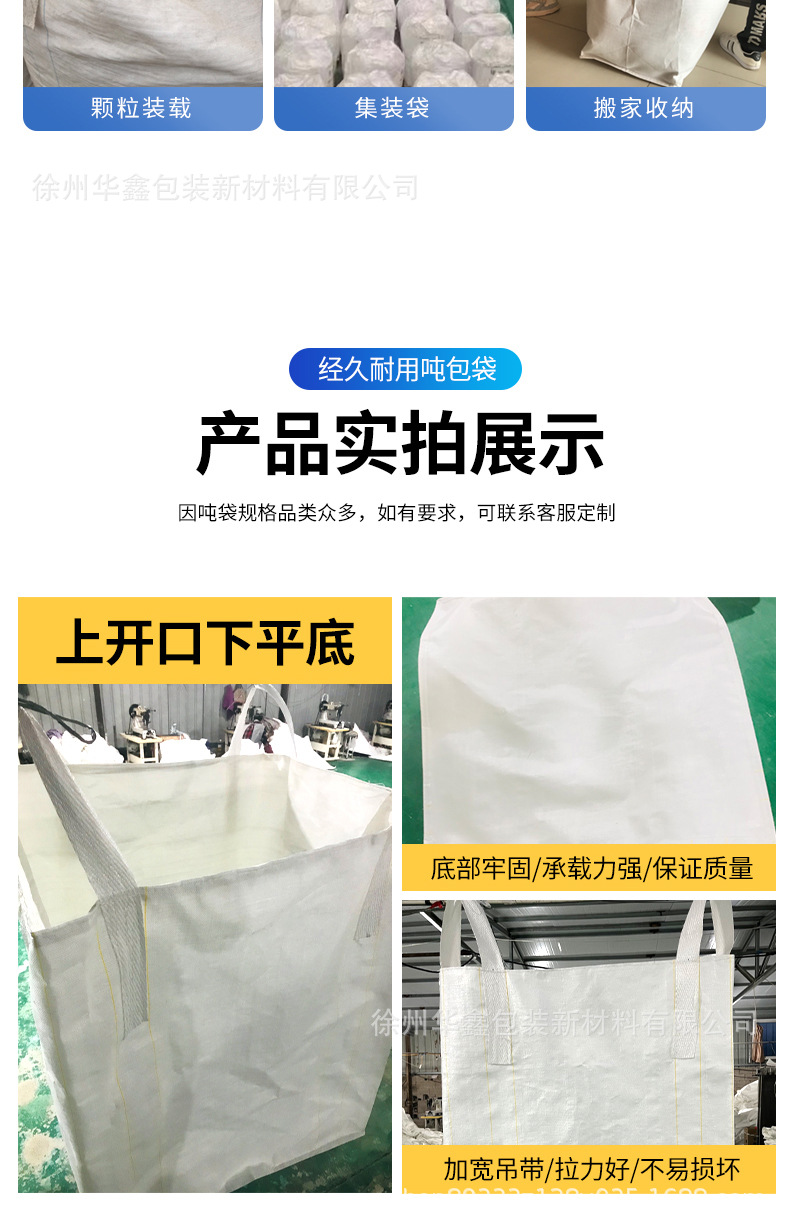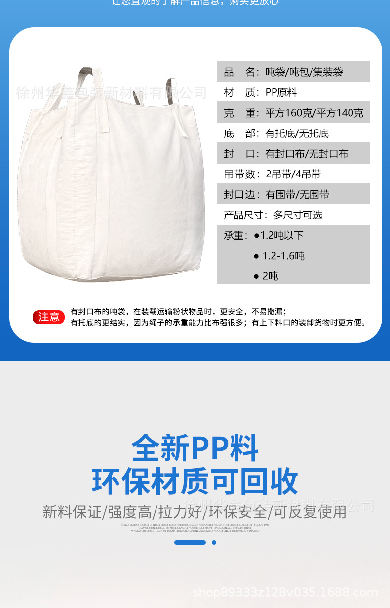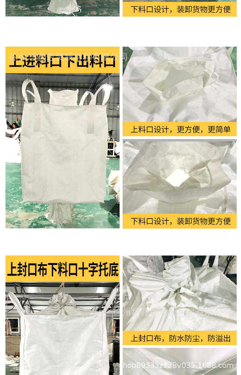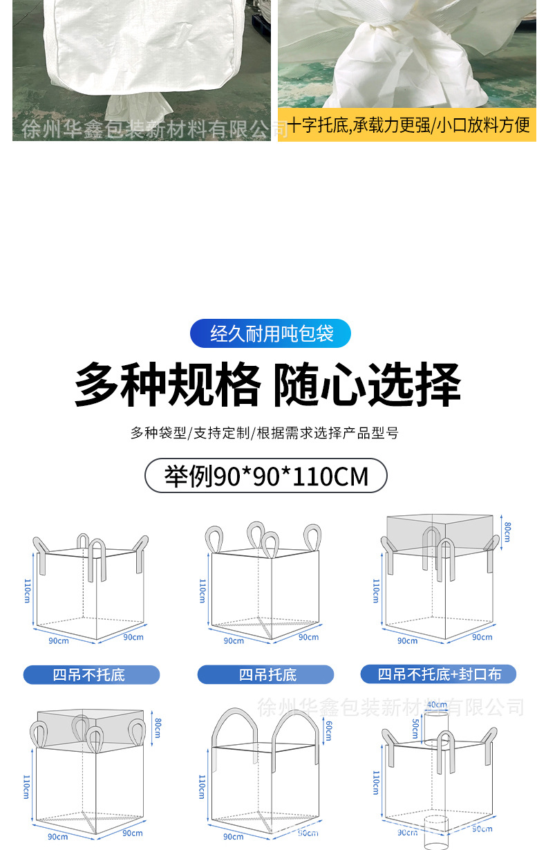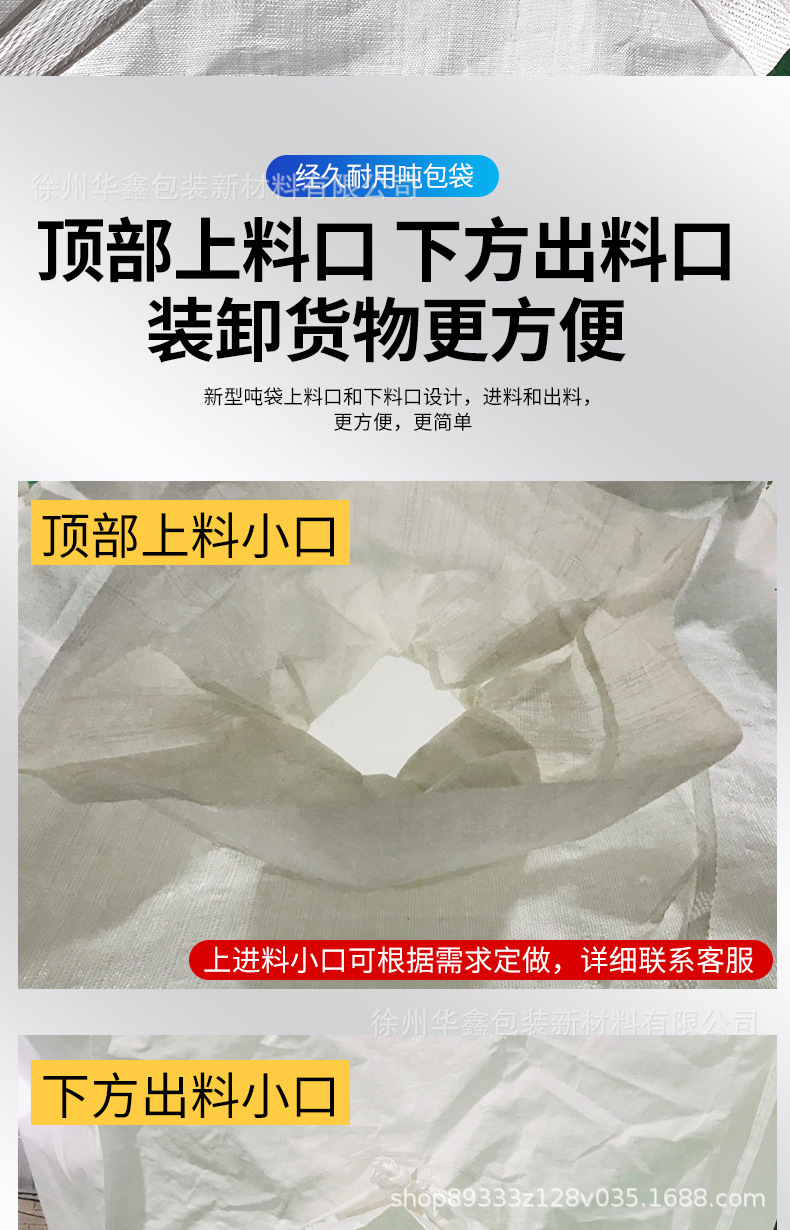 白色吨袋吨包带厂家批发1吨2吨集装袋现货全新pp料加厚四吊吨包袋
