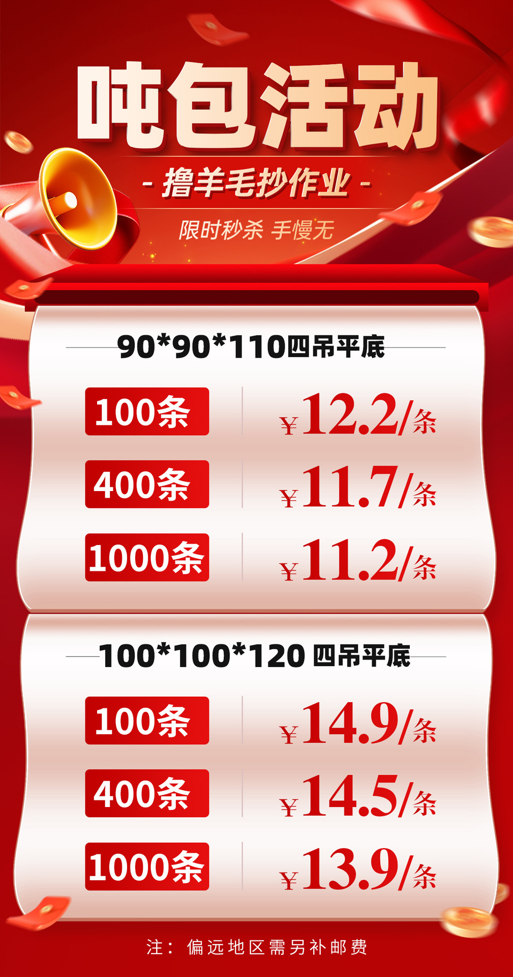 塑料pp吨包集装袋太空袋预压吨包袋吊带1吨白色吨袋厂家批发包邮