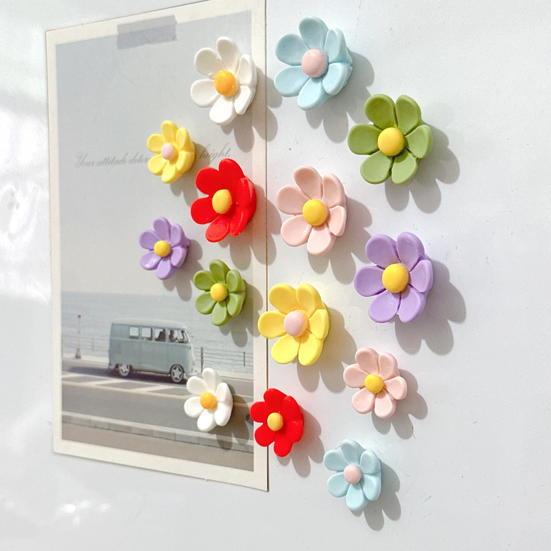 14枚跨境3D立体装饰花朵冰箱贴小雏菊INS风格花朵磁性贴DIY磁贴