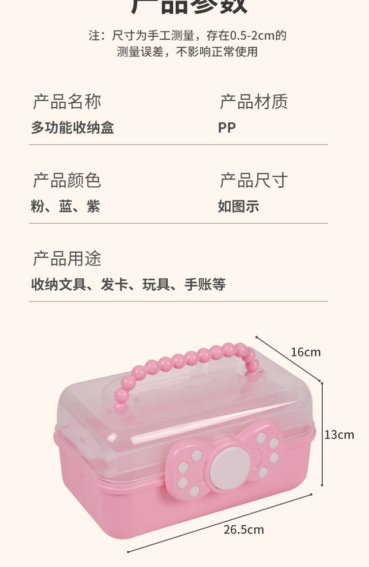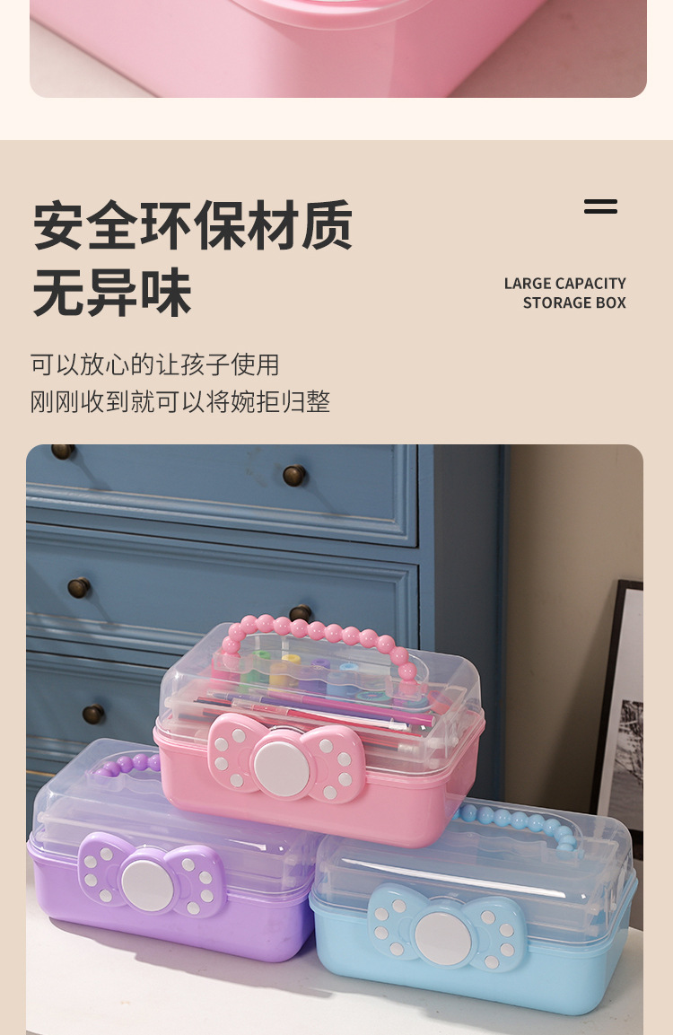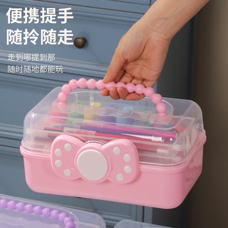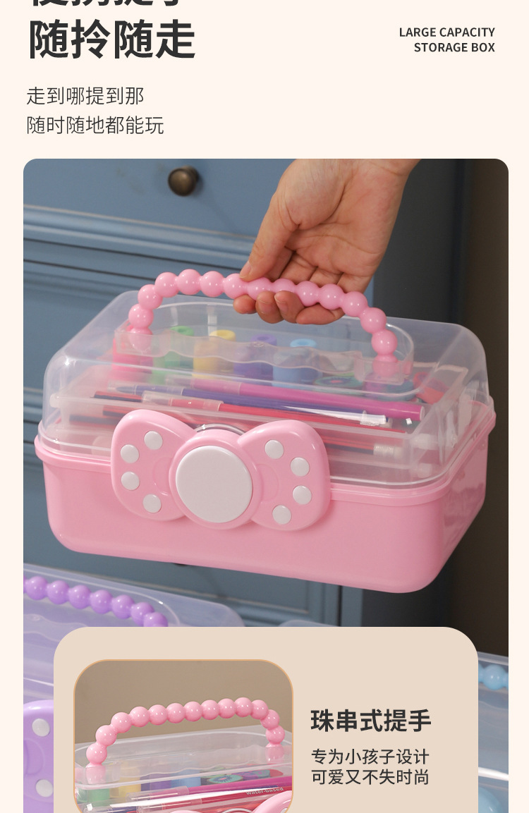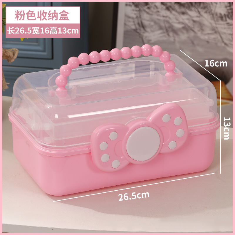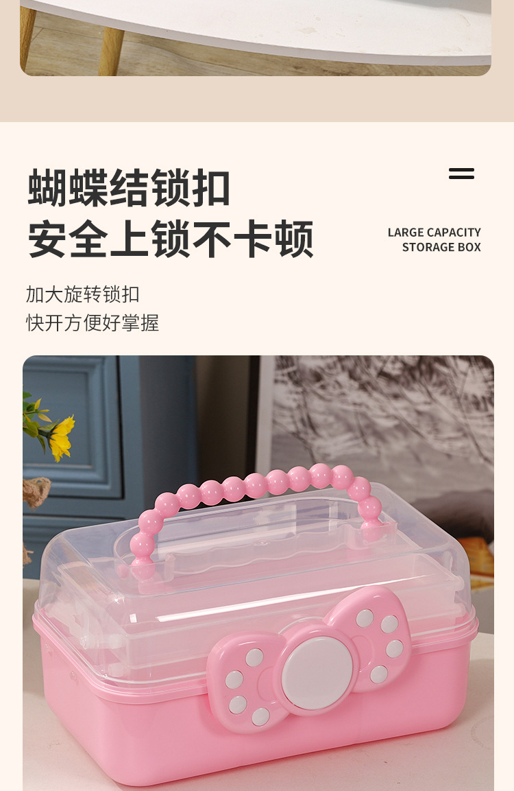 拼豆收纳盒3层儿童发饰收纳盒便携式大容量玩具护肤品三层蝴蝶结