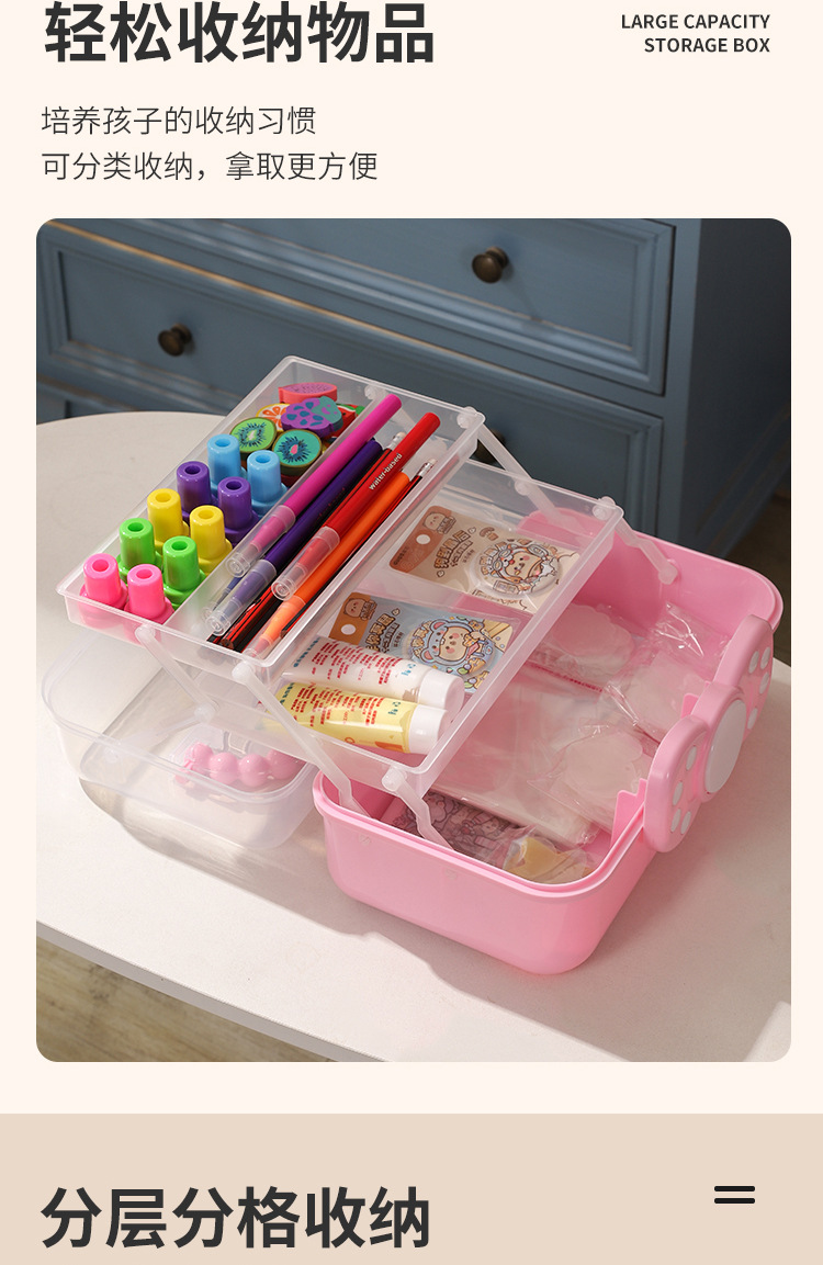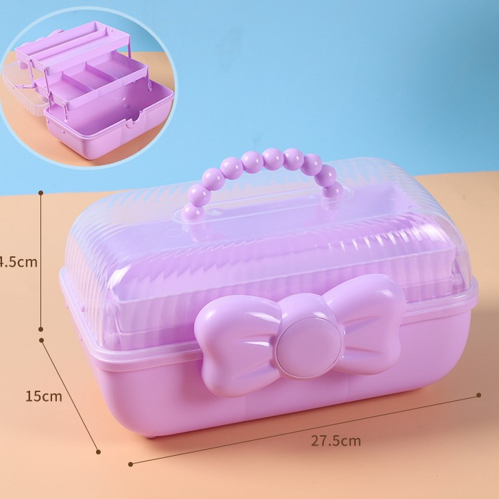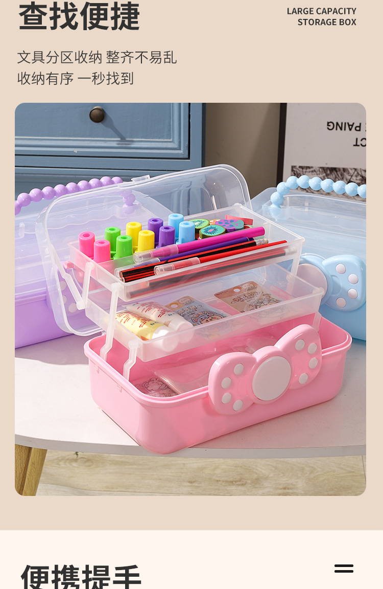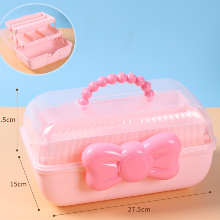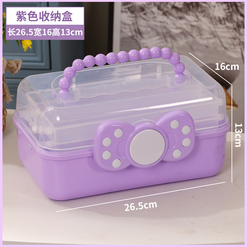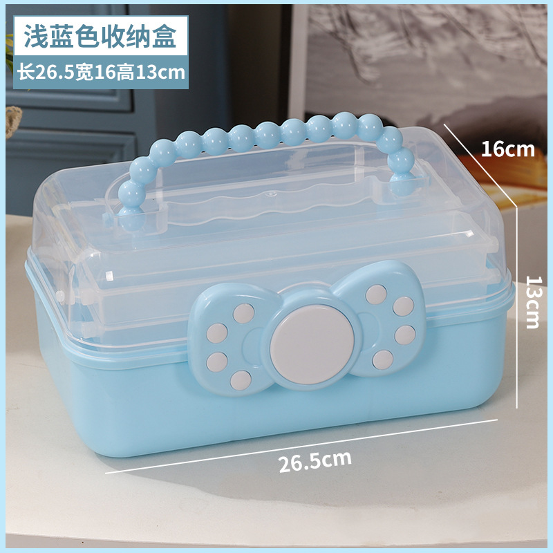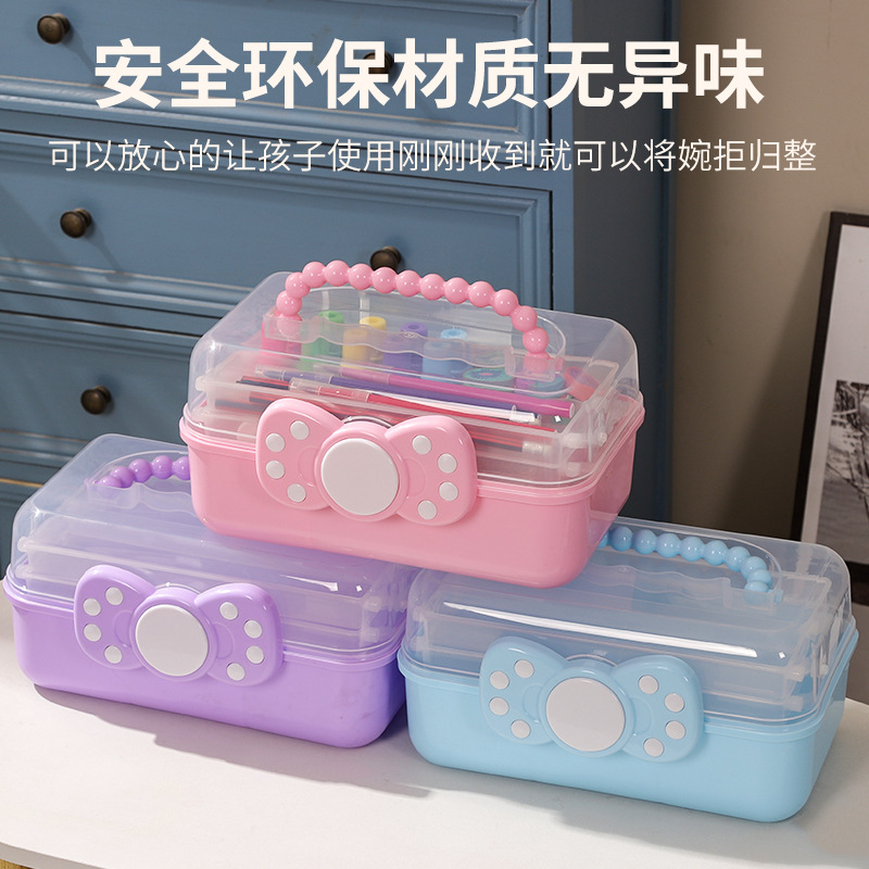 拼豆收纳盒3层儿童发饰收纳盒便携式大容量玩具护肤品三层蝴蝶结