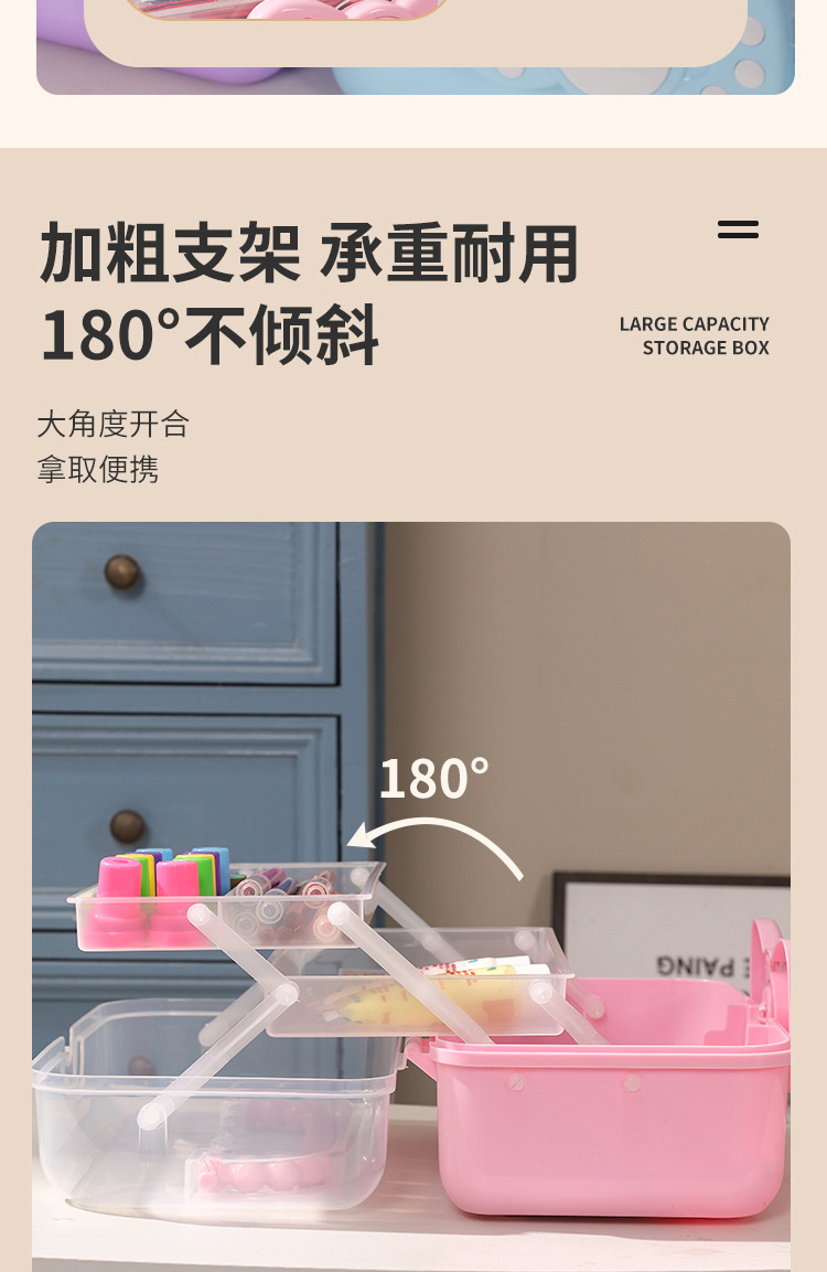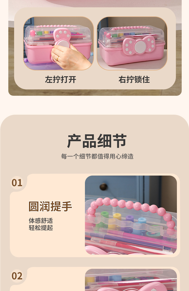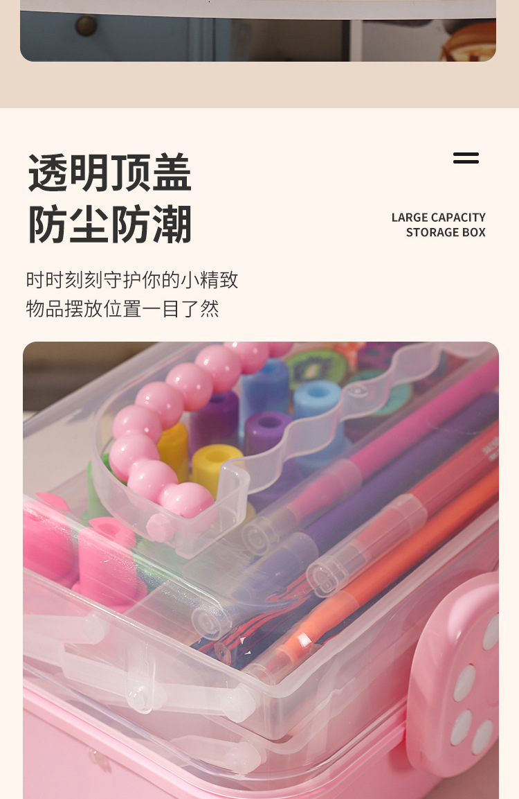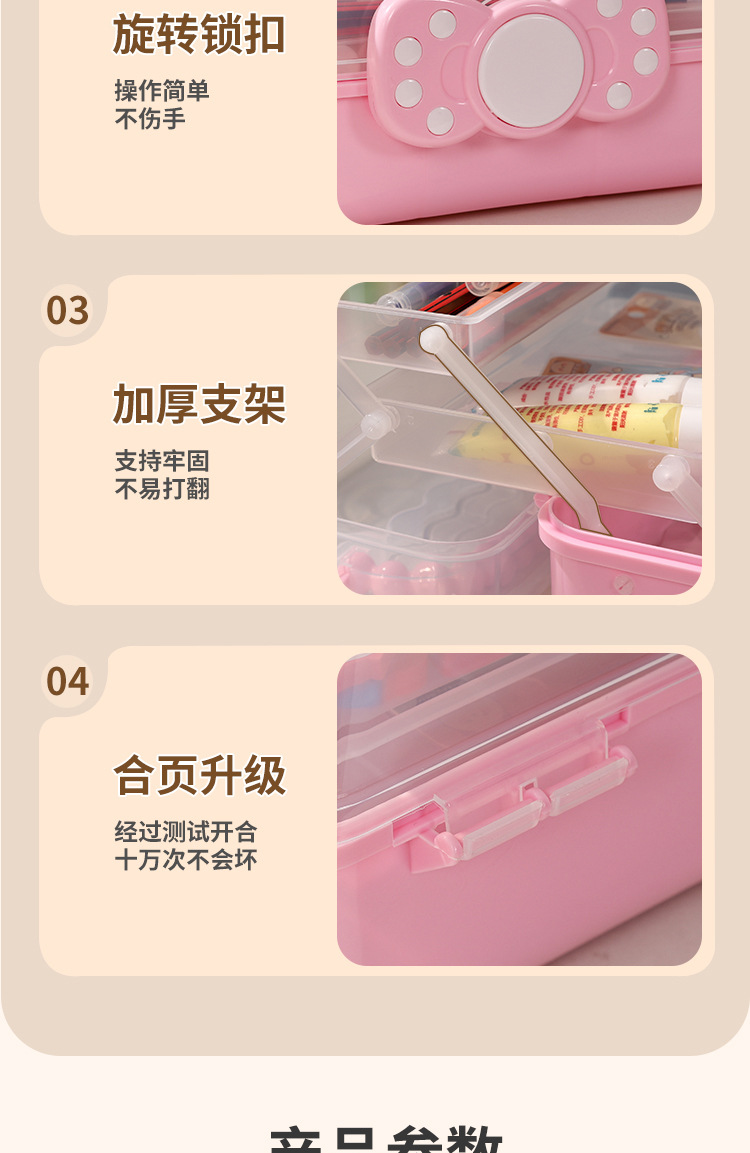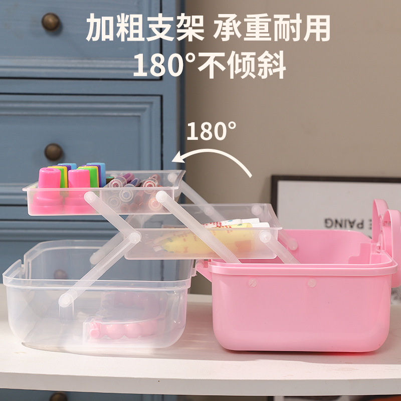 拼豆收纳盒3层儿童发饰收纳盒便携式大容量玩具护肤品三层蝴蝶结