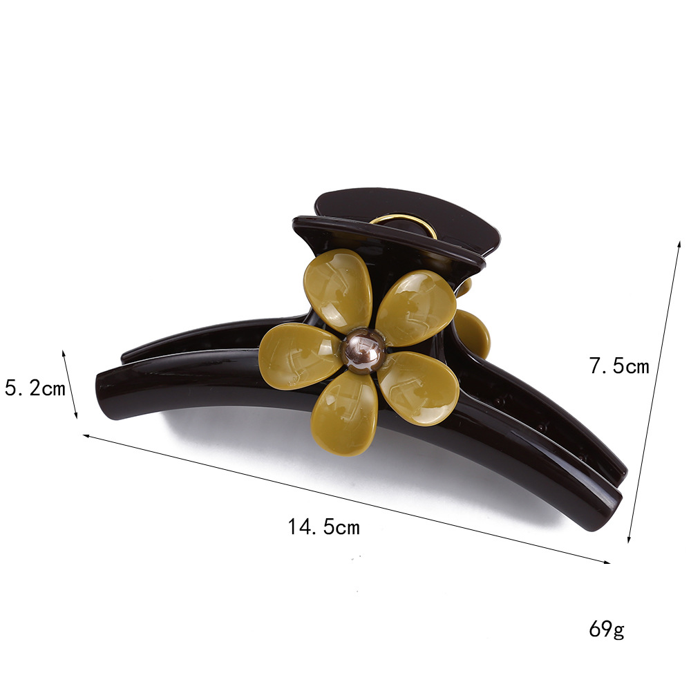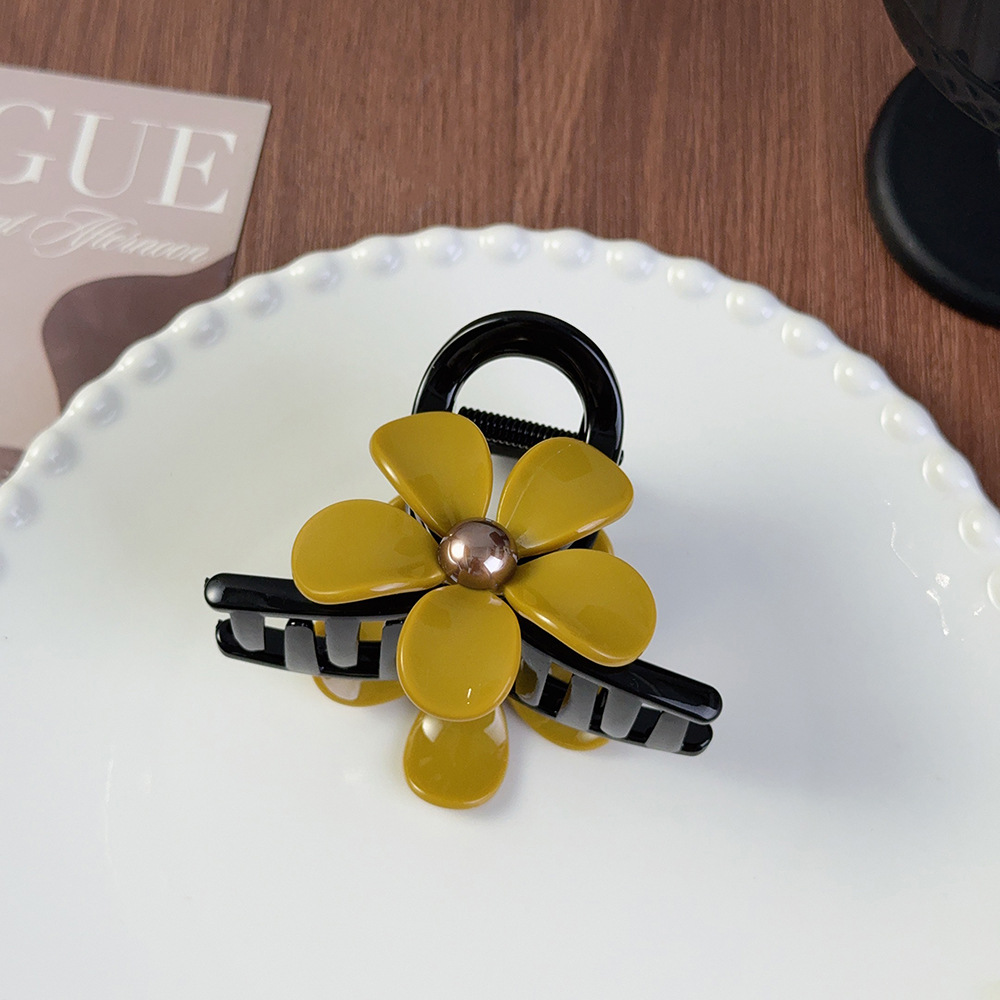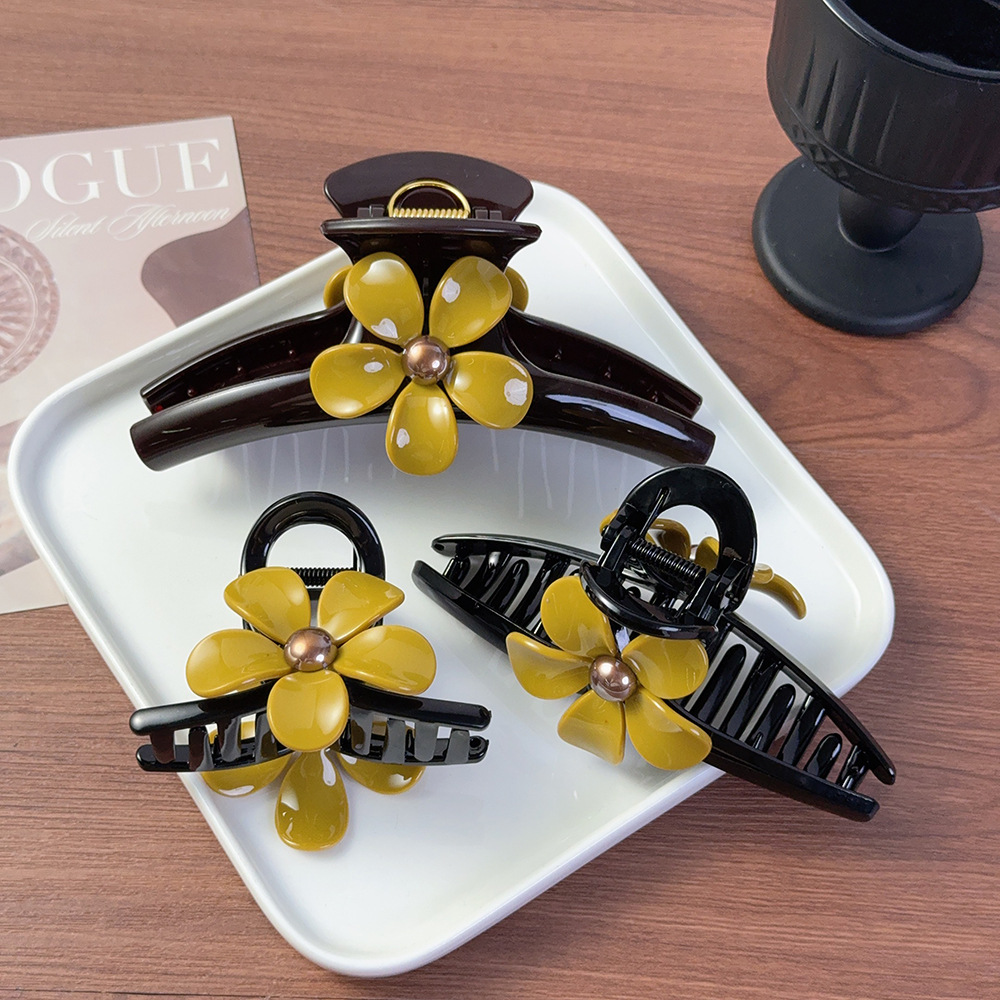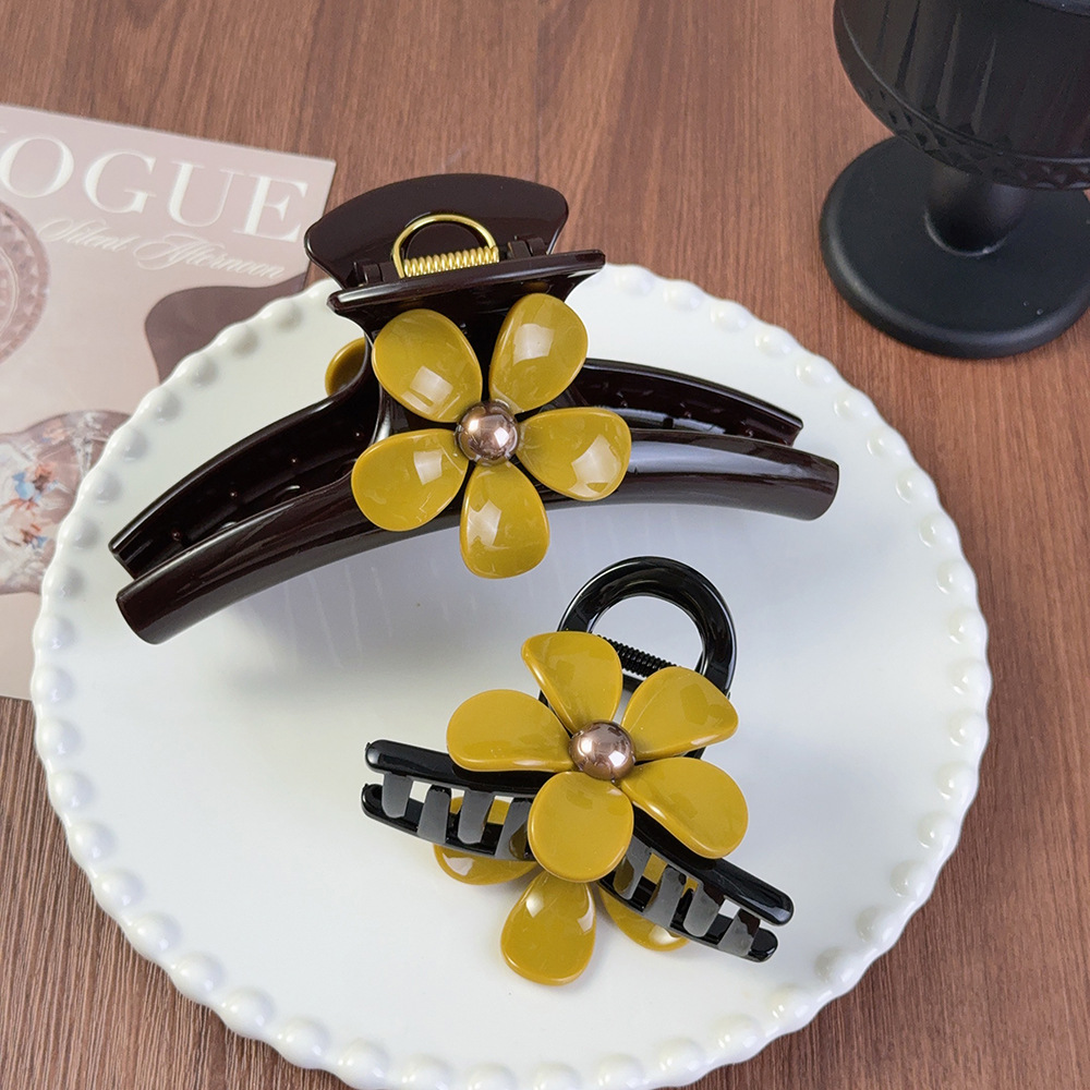 新款醋酸发夹复古风五瓣花朵大号抓夹小黄花发夹盘发夹鲨鱼夹现货