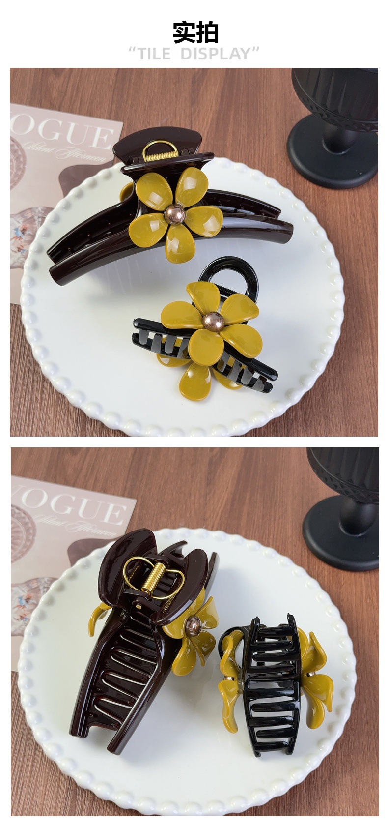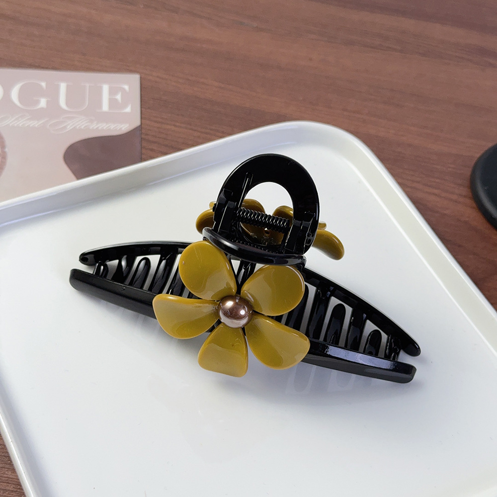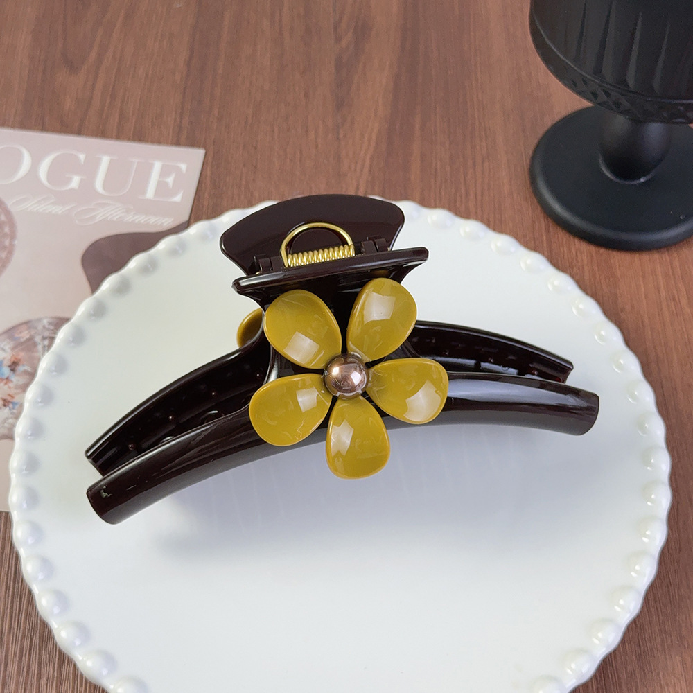 新款醋酸发夹复古风五瓣花朵大号抓夹小黄花发夹盘发夹鲨鱼夹现货