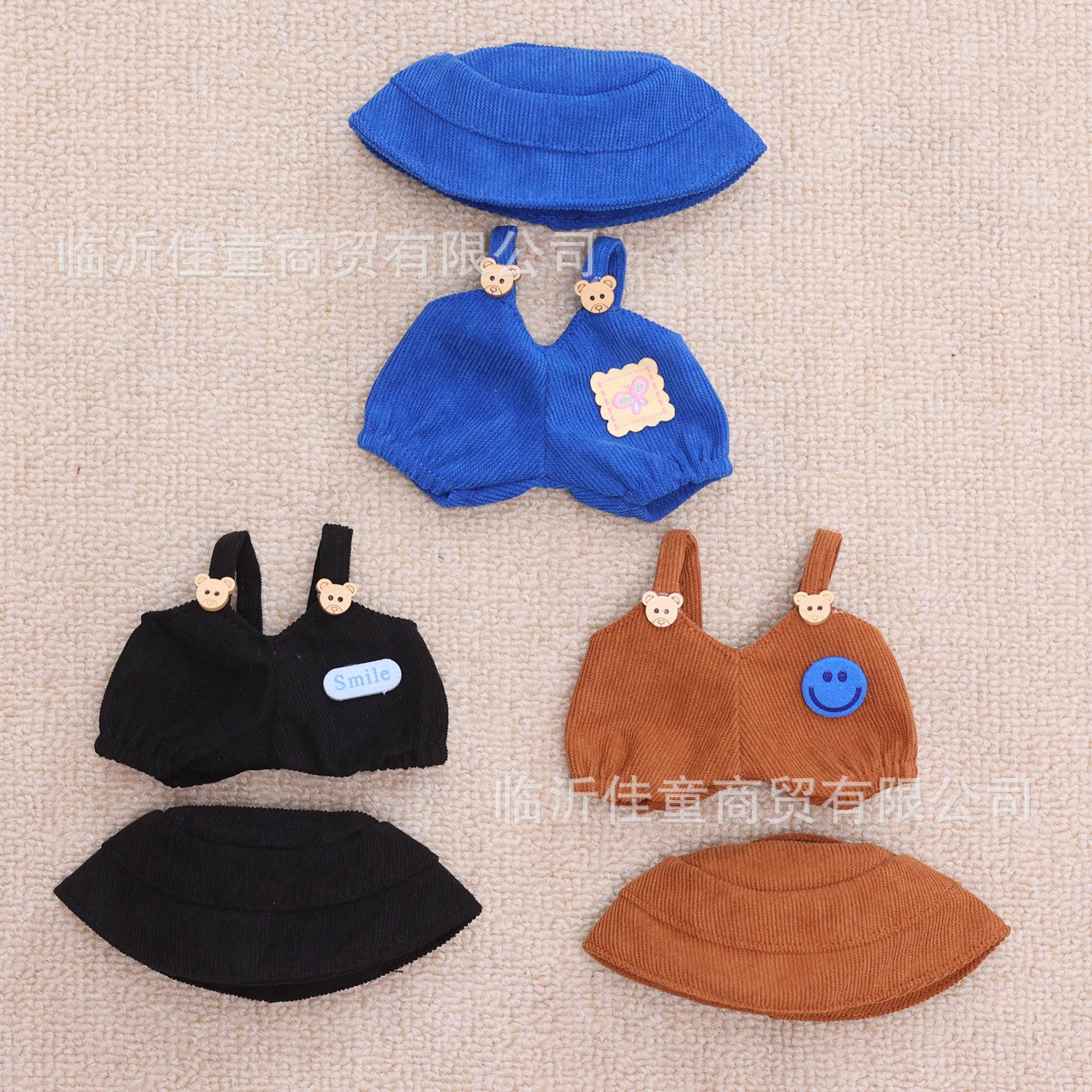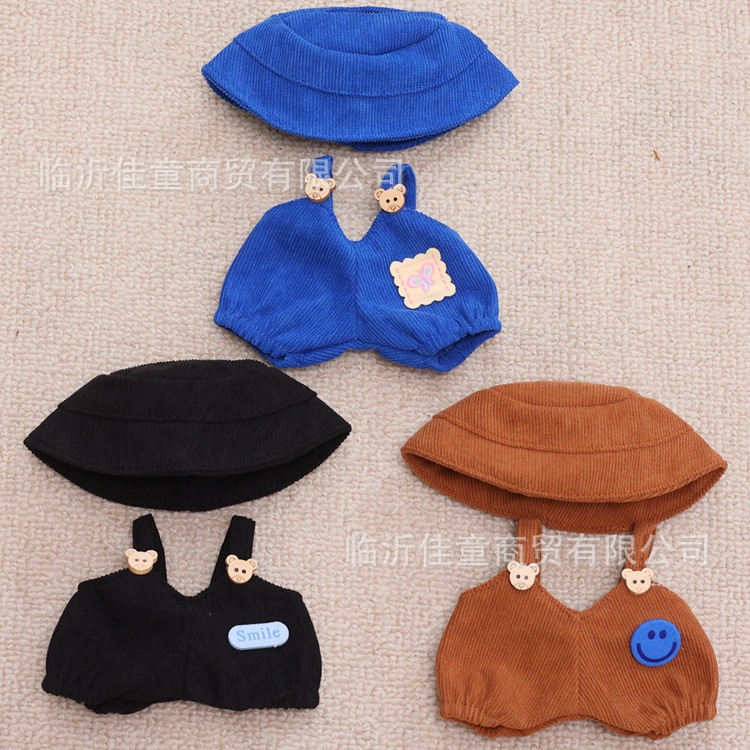 娃衣套装17厘米拉布布渔夫帽背带裤搪胶娃娃衣服玩偶挂件换装配饰