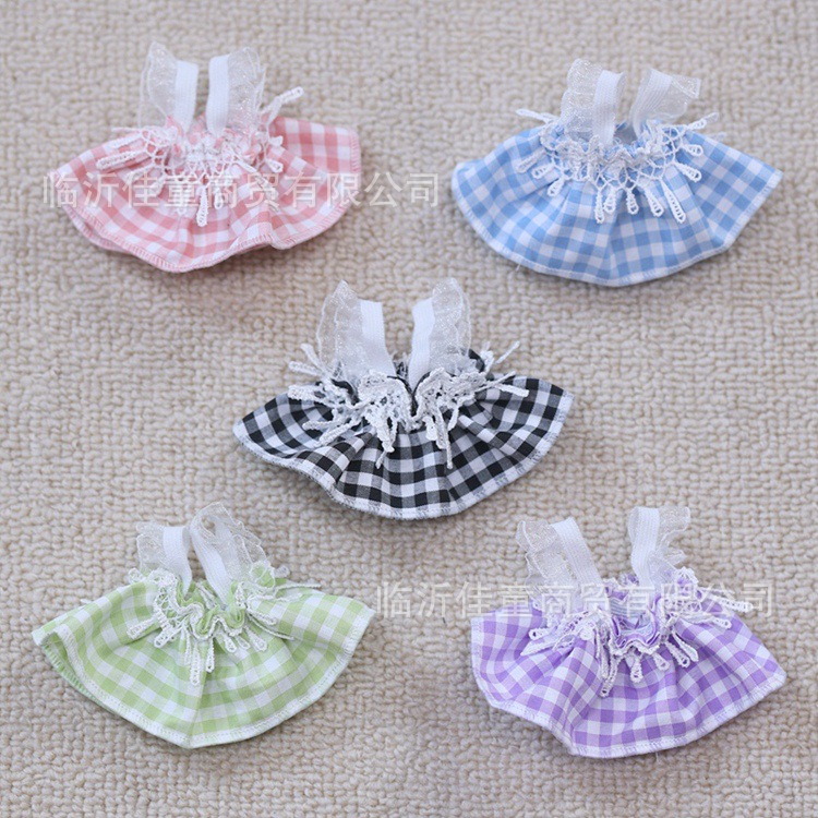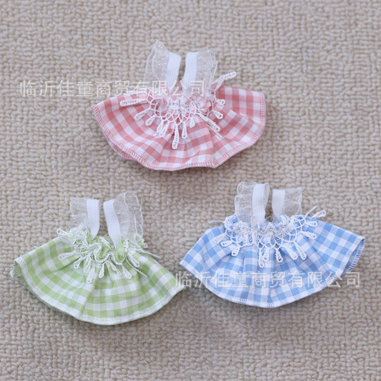 娃衣小裙子格子蕾丝吊带裙13cm掌门狗小挂件衣服娃裙换装辅料配件