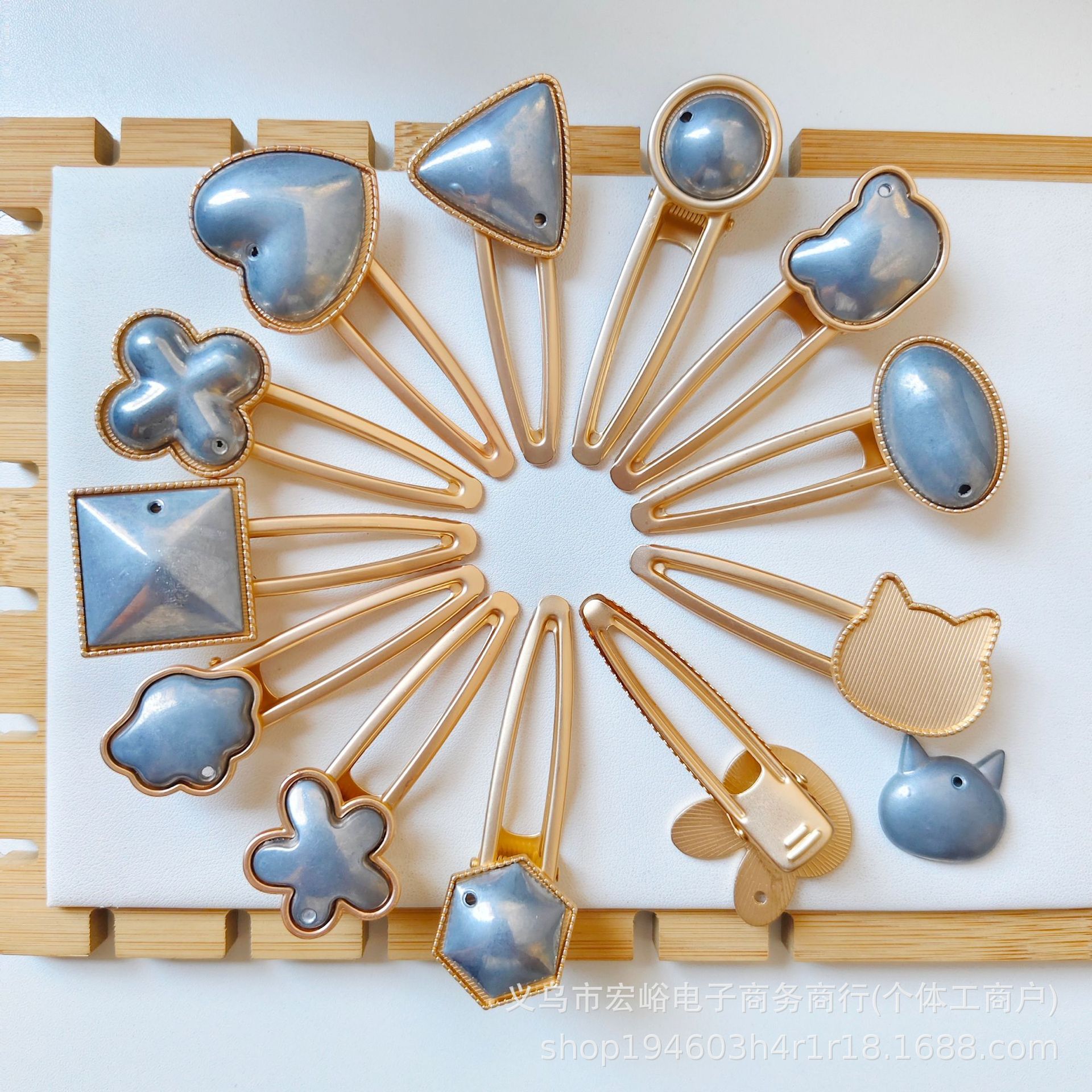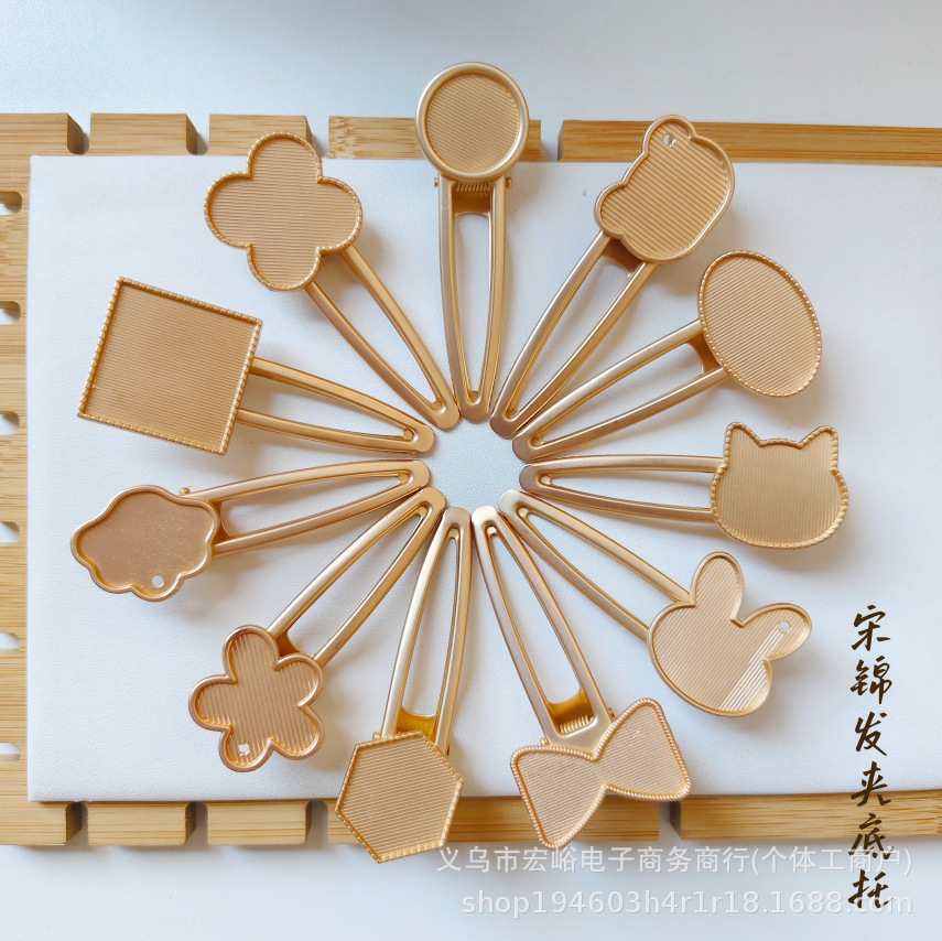 国风宋锦哑金镶钻发夹底托加盖diy材料包手工凹槽发饰饰品配件