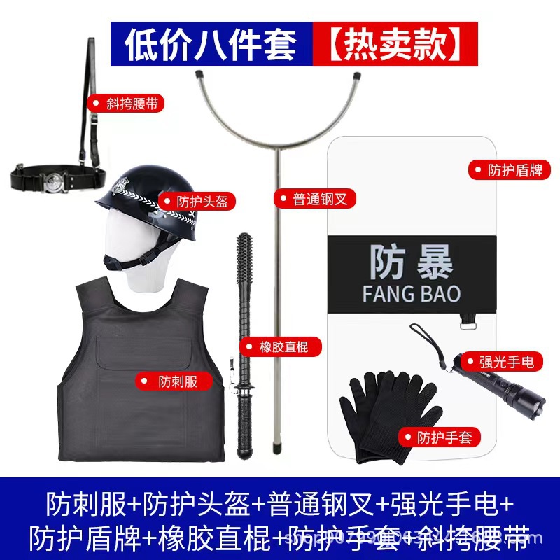 安保器材八件套加油站装备柜防暴盾牌钢叉防刺服校园保安8件