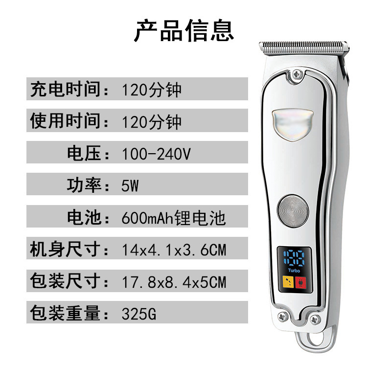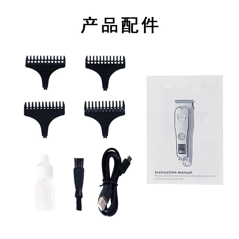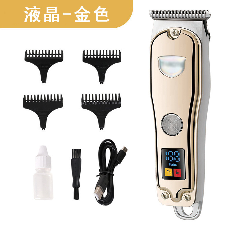 跨境油头液晶显示理发器usb充电式渐变雕刻T型零刀头电推修剪器