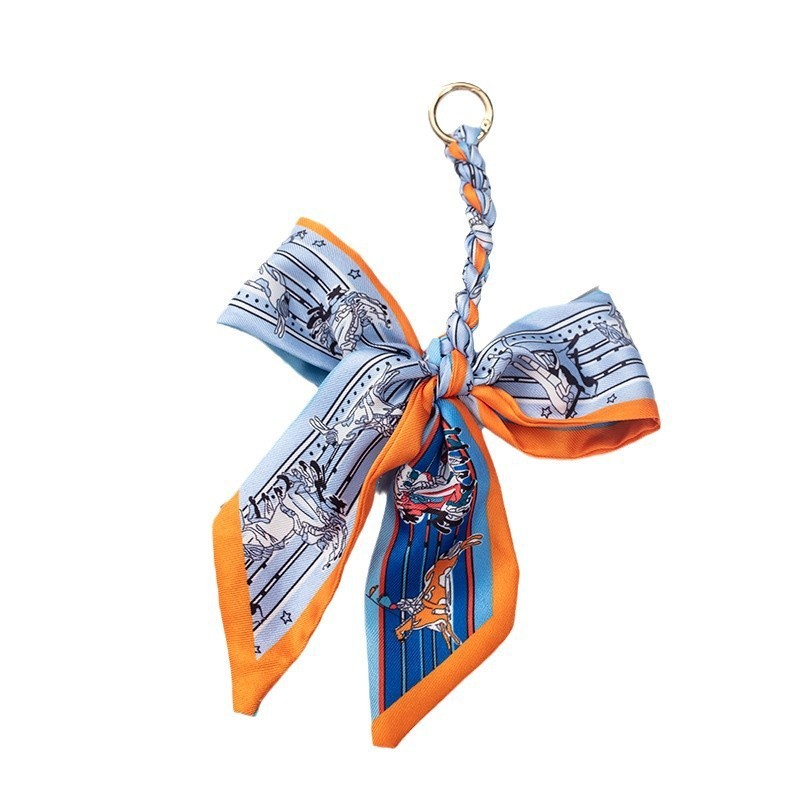 英文字母丝巾蝴蝶结钥匙扣时尚网红汽车钥匙链圈创意女士包包挂件