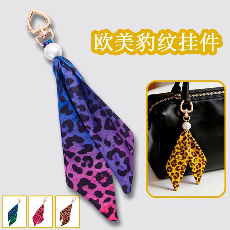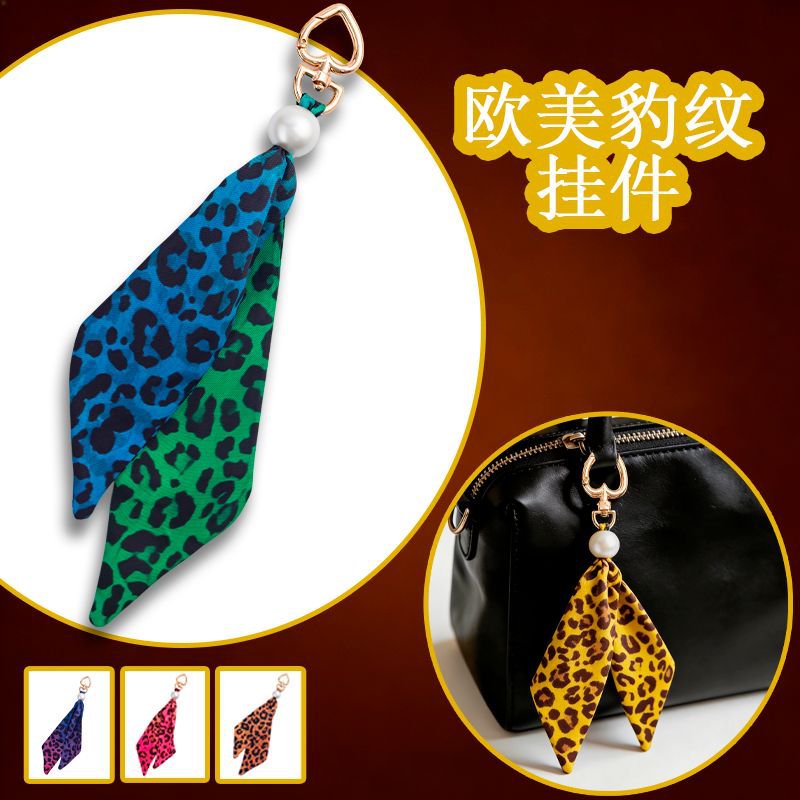 跨境新款豹纹包包挂件布艺钥匙扣挂饰diy创意时尚高级感包包配饰