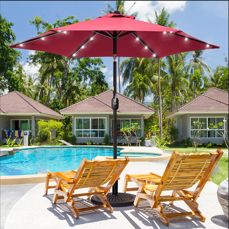 跨境爆品户外伞直杆伞LED中柱伞遮阳伞太阳伞庭院休闲沙滩伞广告