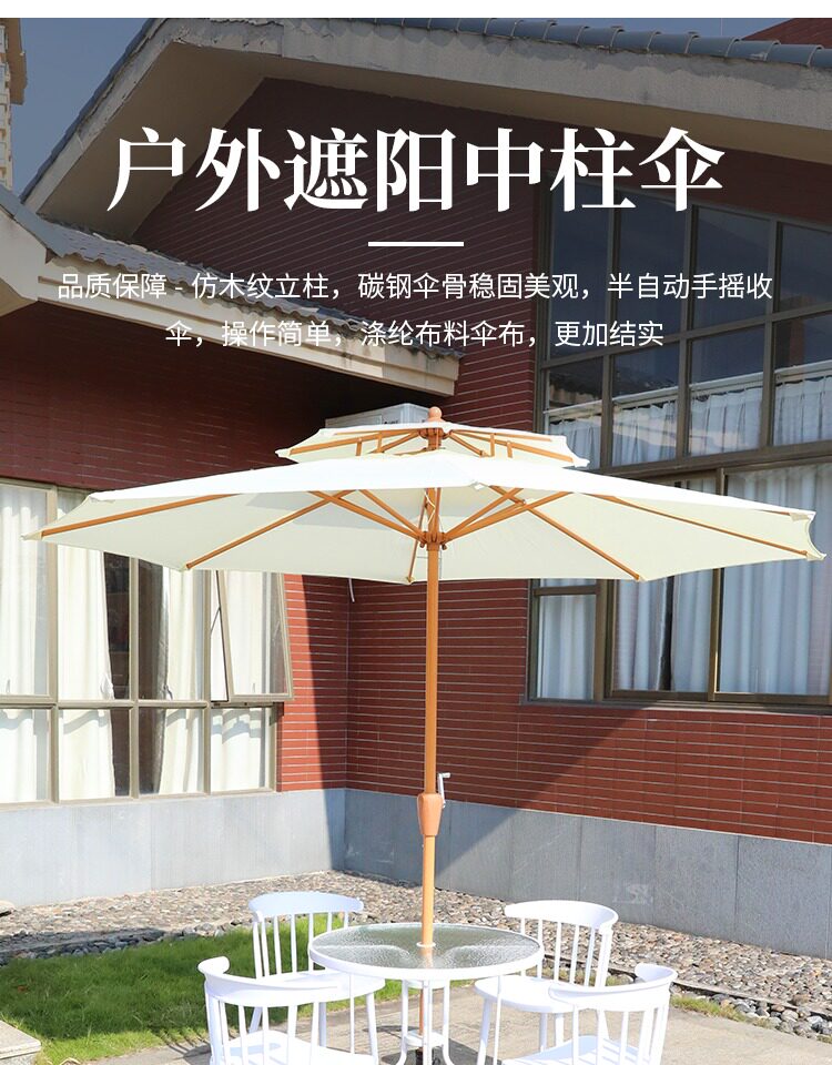 跨境爆款中柱遮阳伞户外摆摊花园太阳伞庭院咖啡厅露台桌椅伞批发