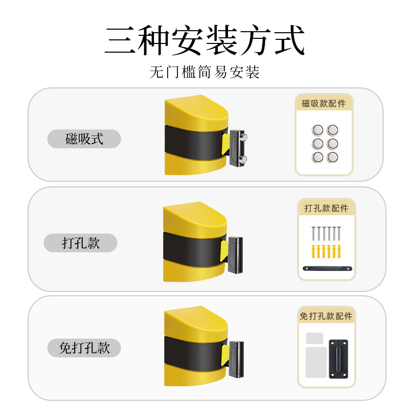 挂壁式隔离带黄黑款磁吸伸缩带伸缩带护栏禁止同行入内一米线警示