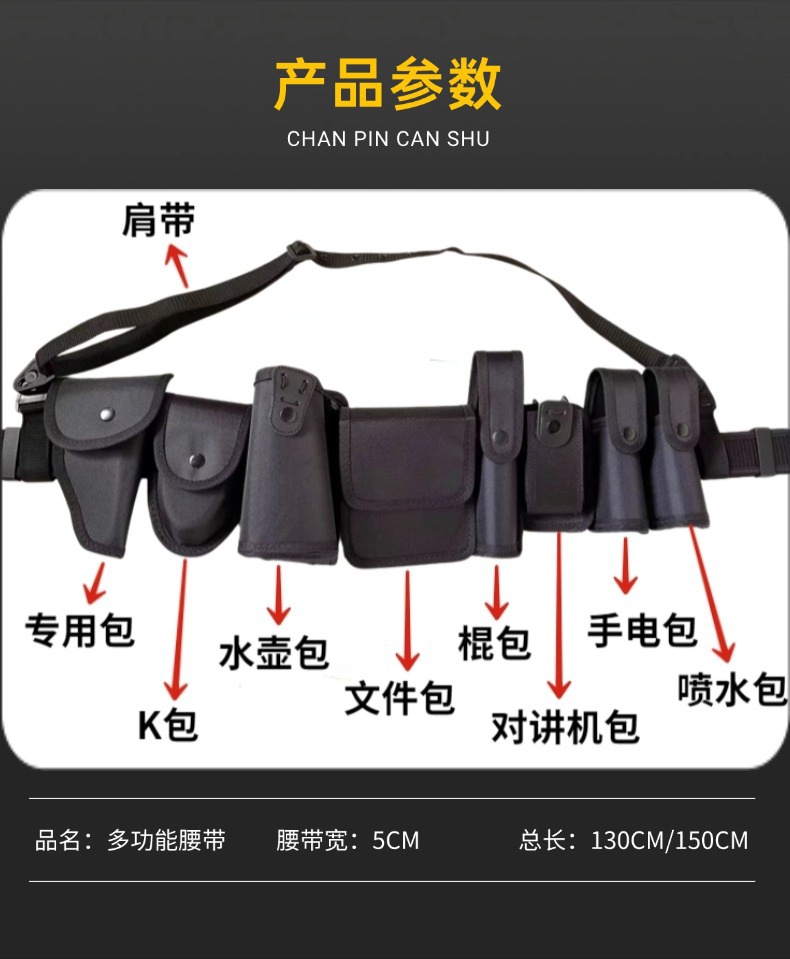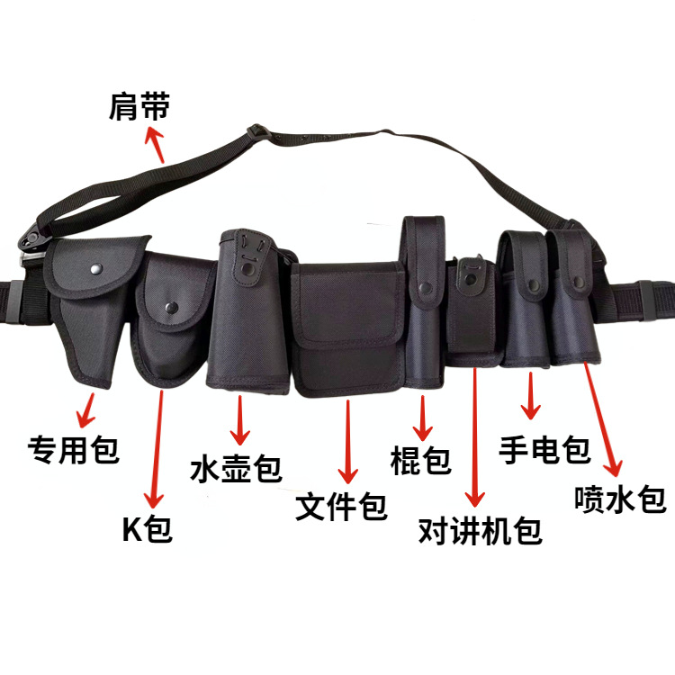 尼龙黑色保安巡逻执勤八件套腰带男安保多功能战术腰带配件包