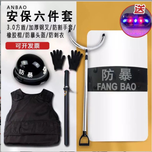 学校安保器材八件套安保套装防暴盾牌钢叉防护服幼儿园保安巡逻