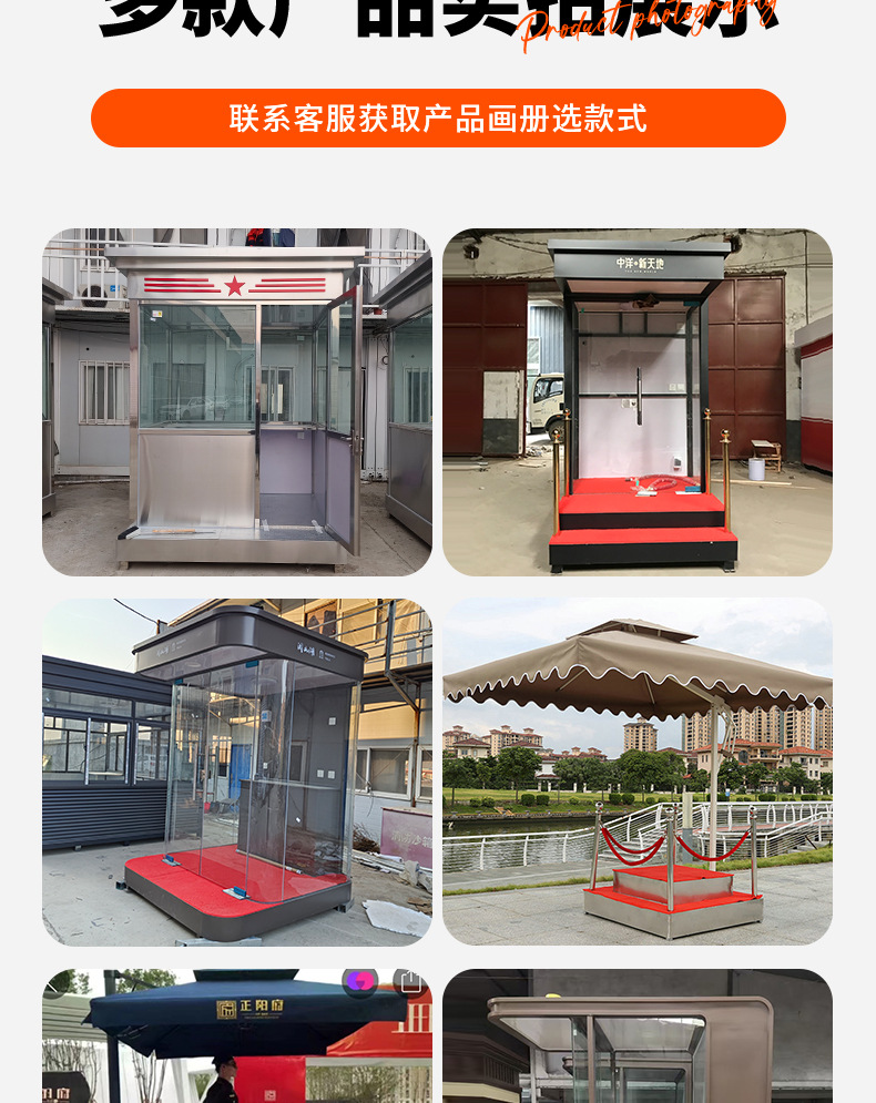 户外岗亭保安亭不锈钢门卫值班室小区物业收费亭治安亭定制门头