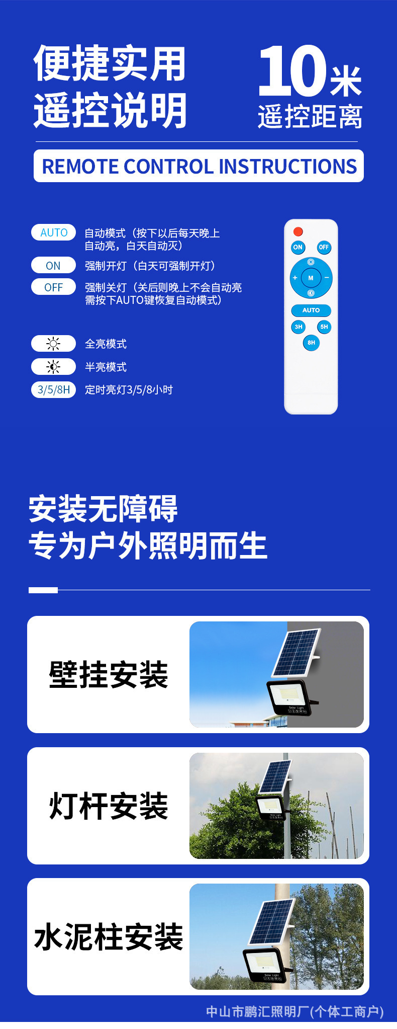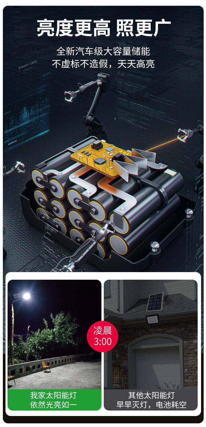 跨境太阳能户外庭院灯农村家用防水照明超亮大功率人体感应投光灯