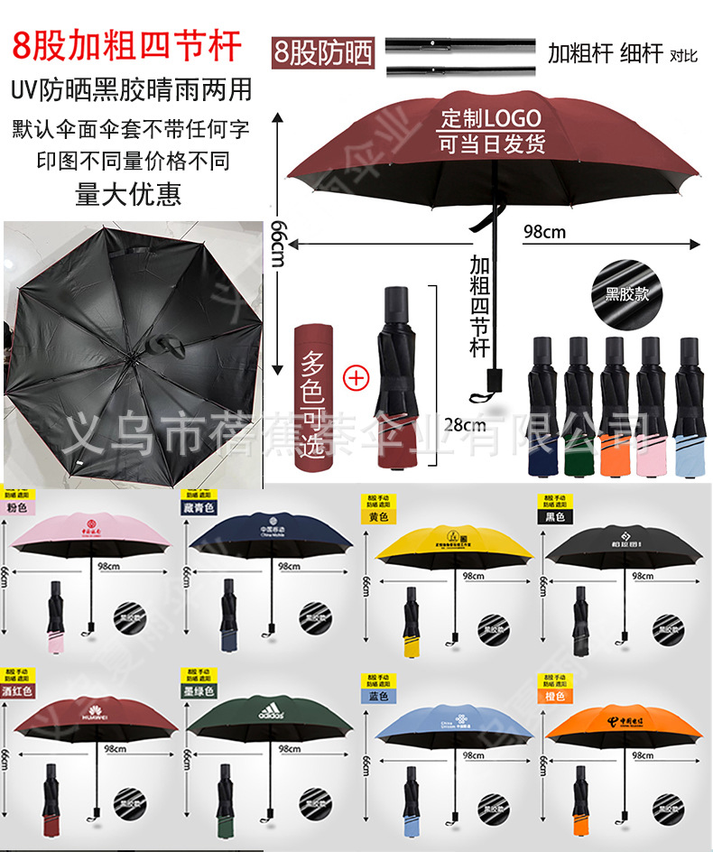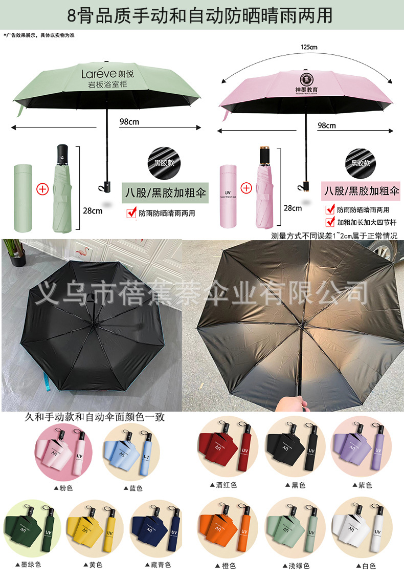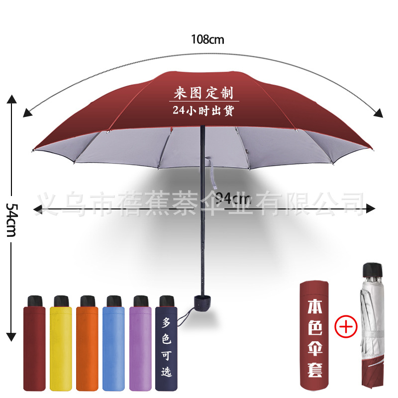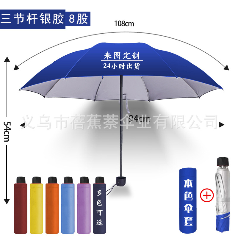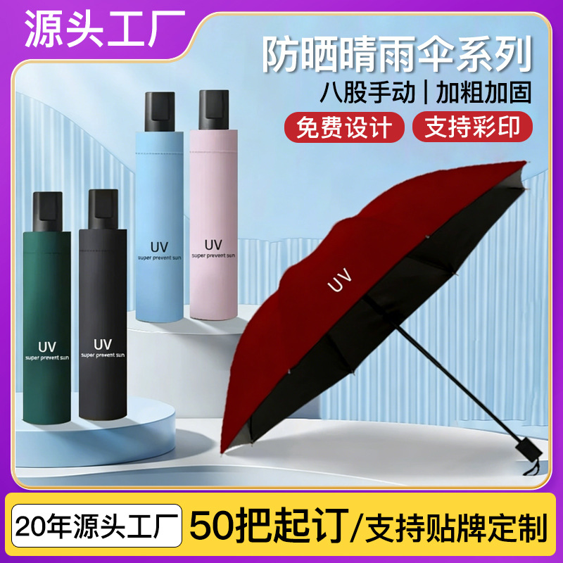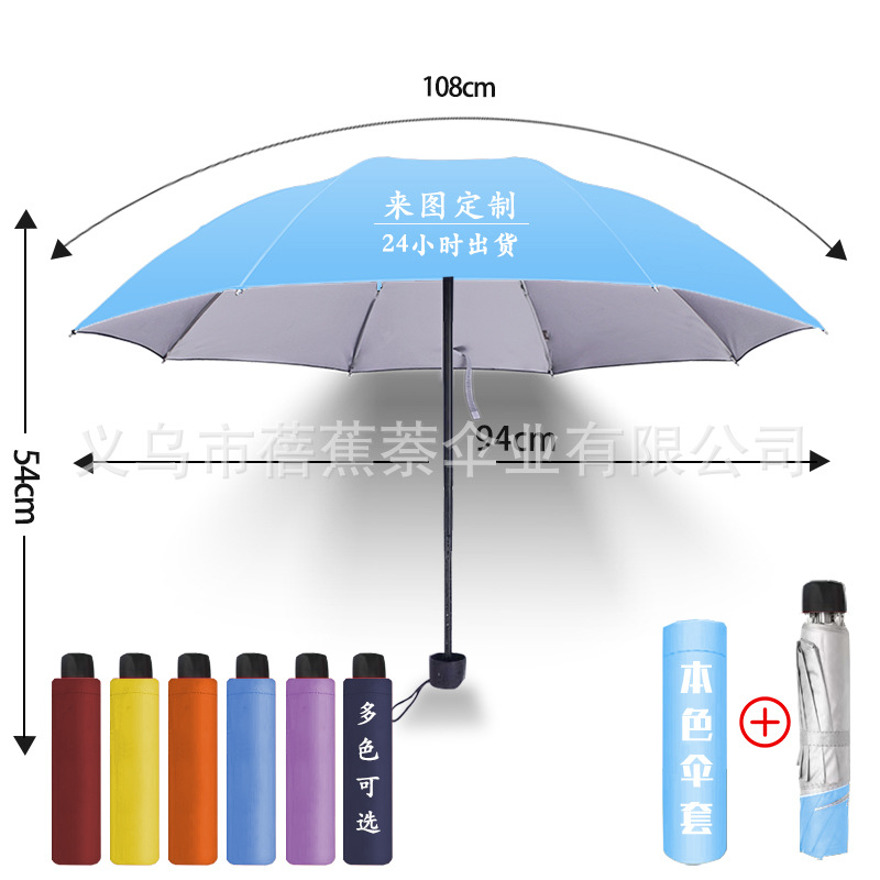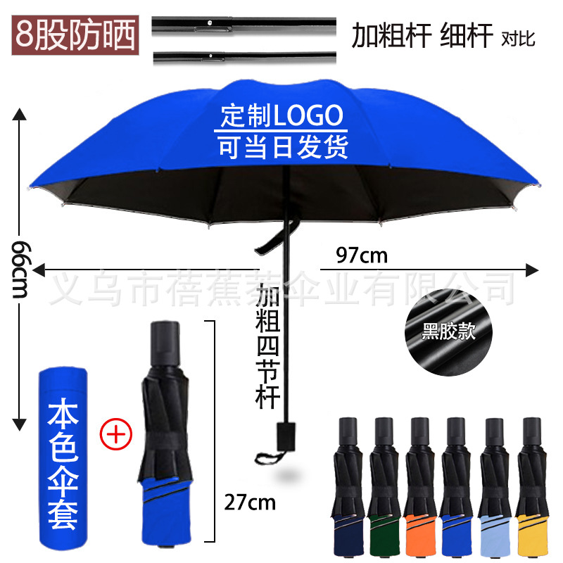 雨伞定制 UV黑胶 防晒晴雨伞广告伞 太阳伞厂家印LOGO 三折伞