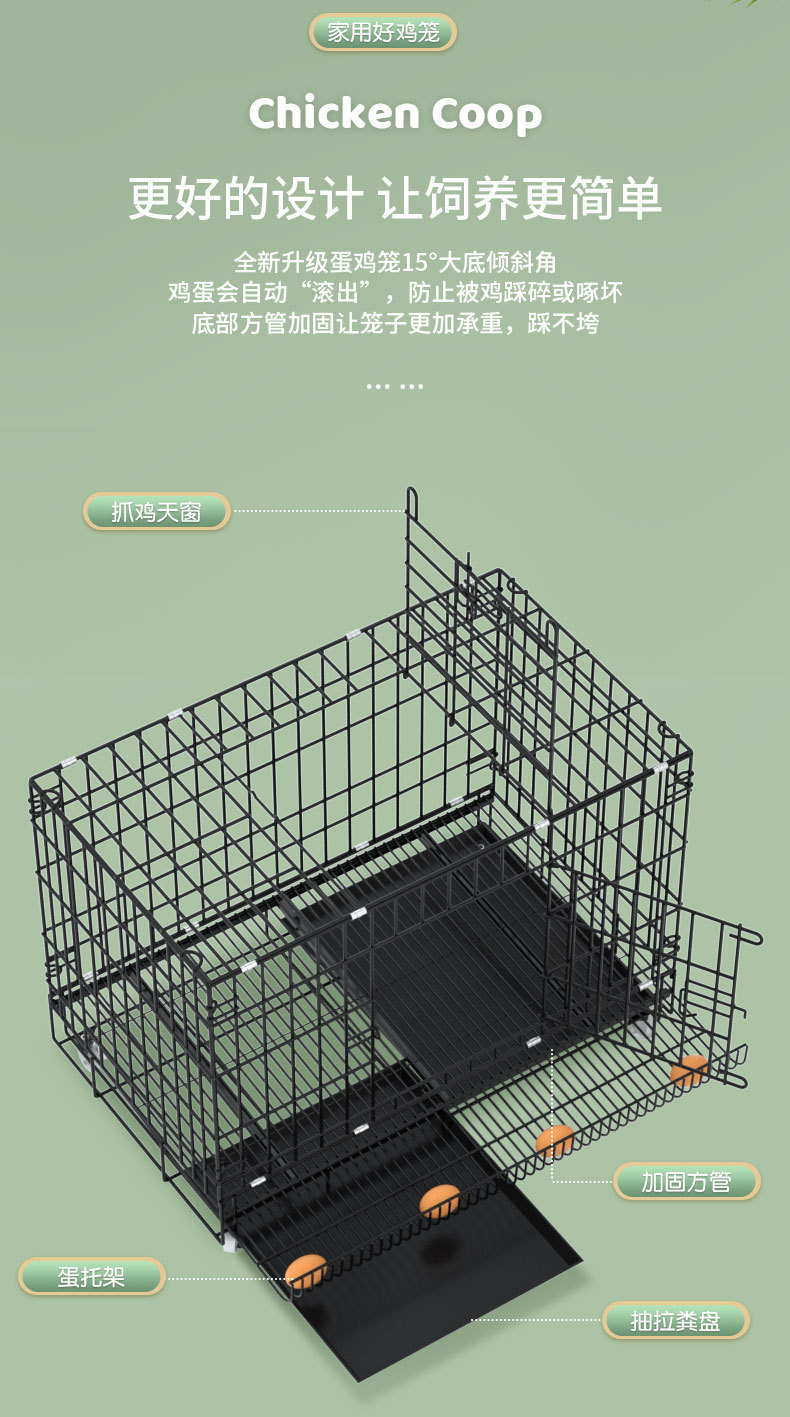 | wheel + dropping tray + foot mat + trough sink + waterproof cloth(轮子+粪盘+脚垫+食槽水槽+防雨布) | USD $21.99 | 9999 piece available |