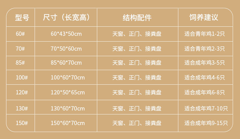 | wheel + dropping tray + foot mat + trough sink + waterproof cloth(轮子+粪盘+脚垫+食槽水槽+防雨布) | USD $35.14 | 9999 piece available |