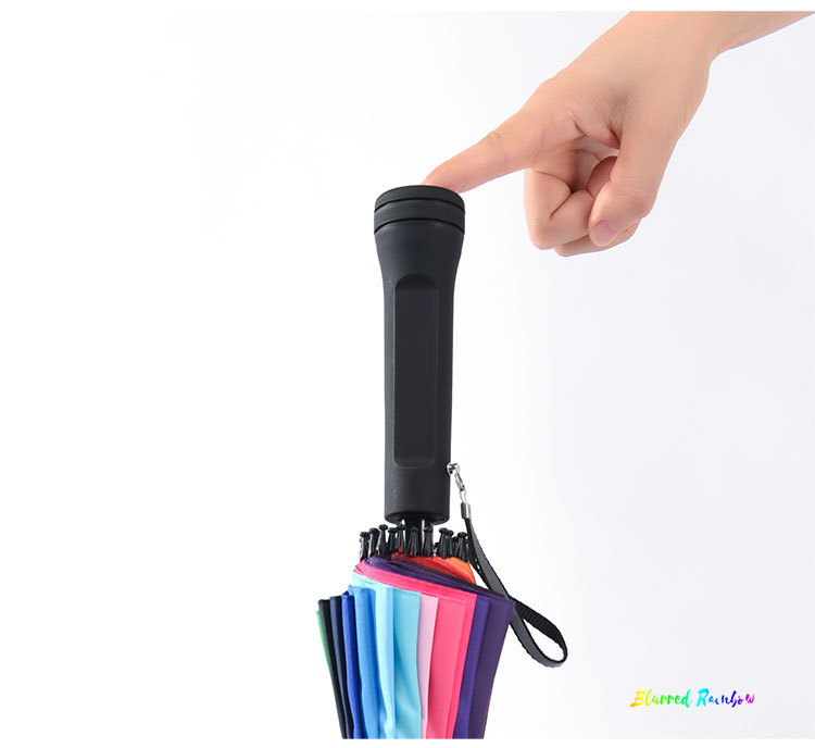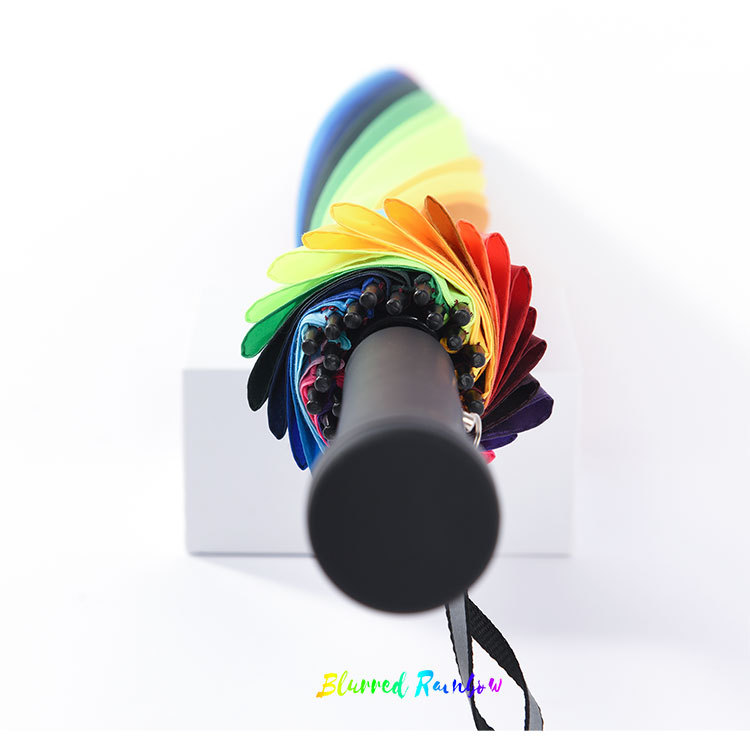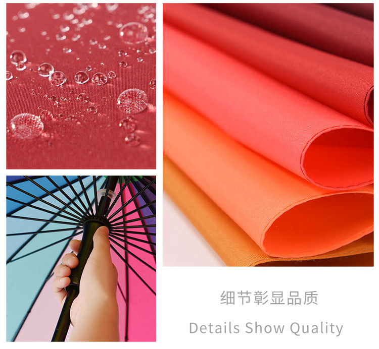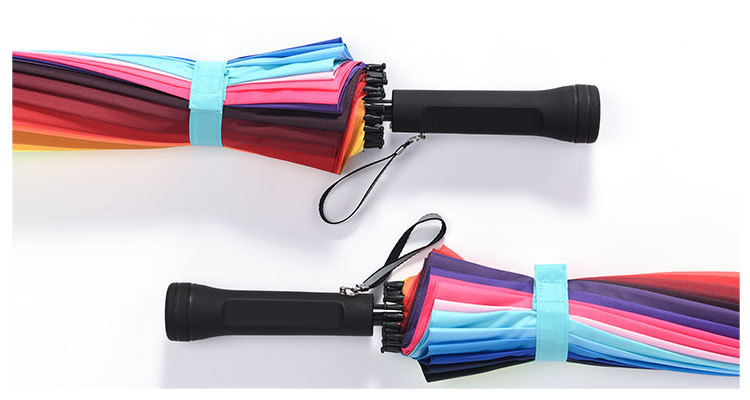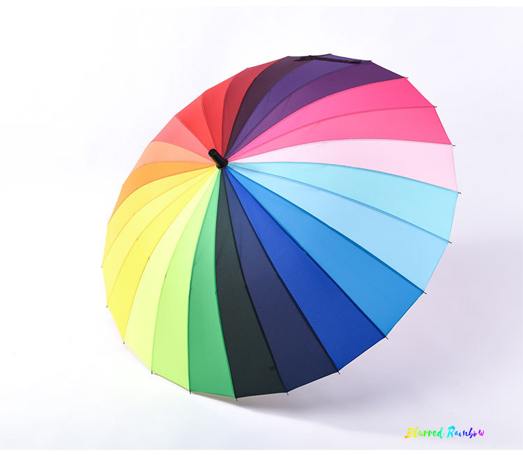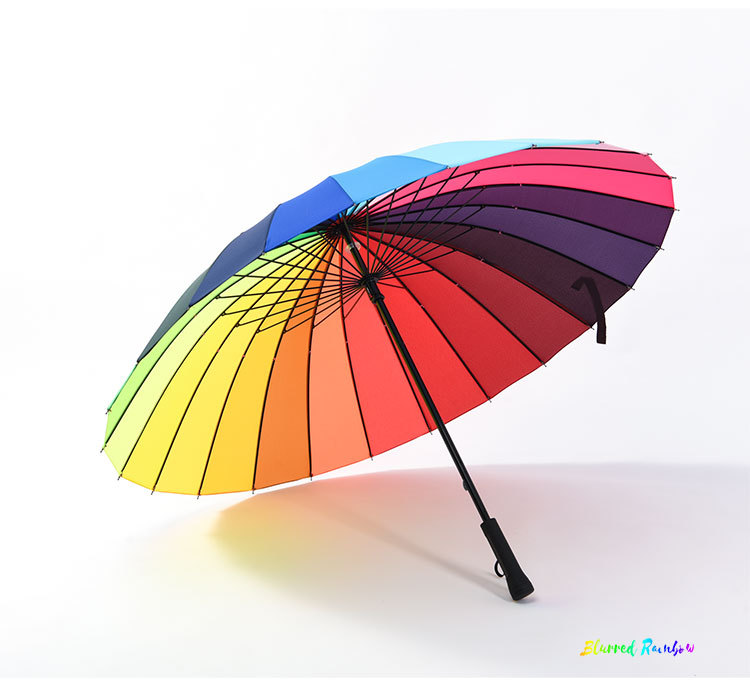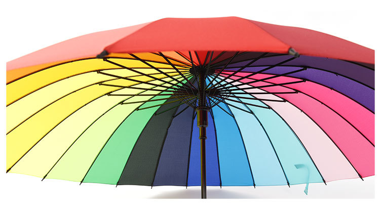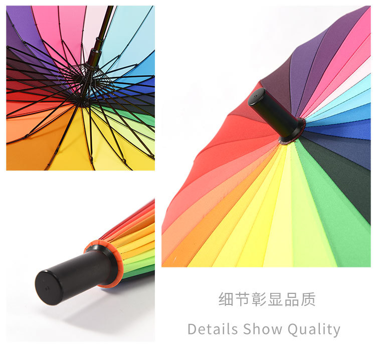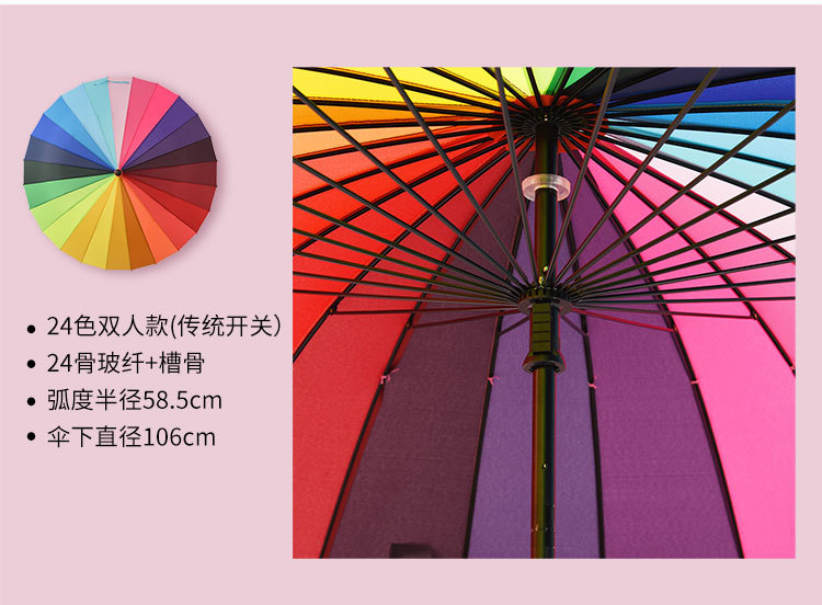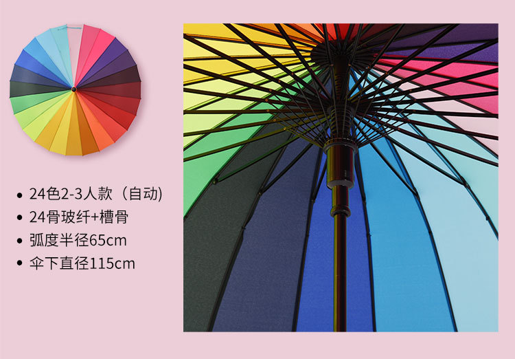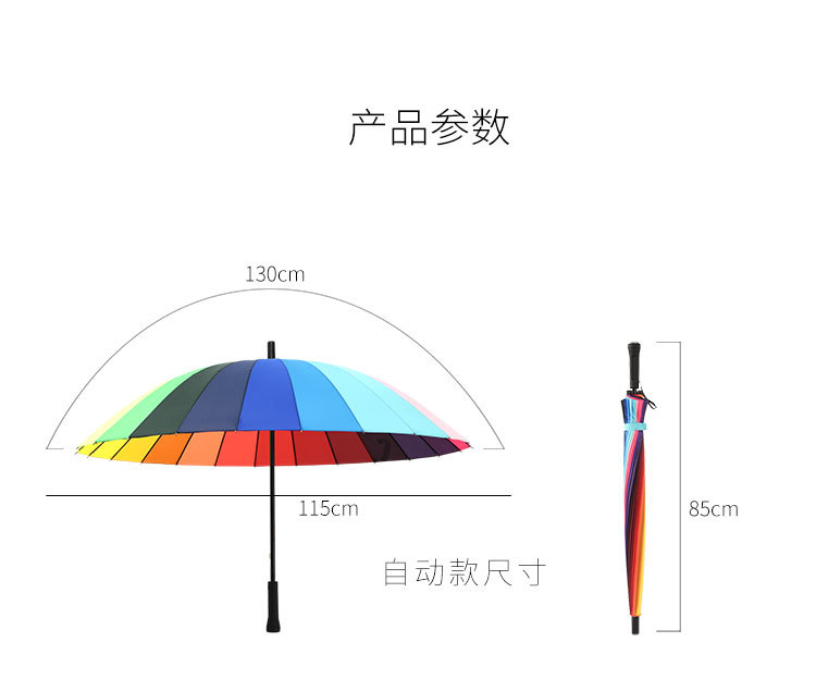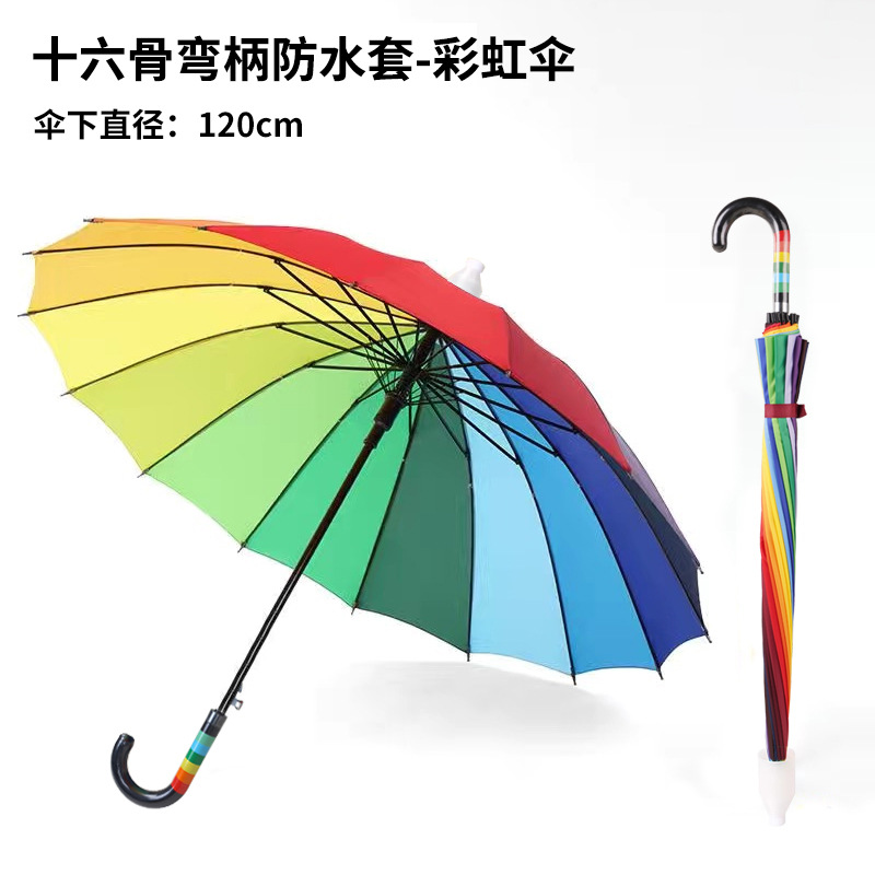 24骨彩虹伞双人七彩长柄大号全自动抗风直杆雨伞带防水套弯钩雨伞
