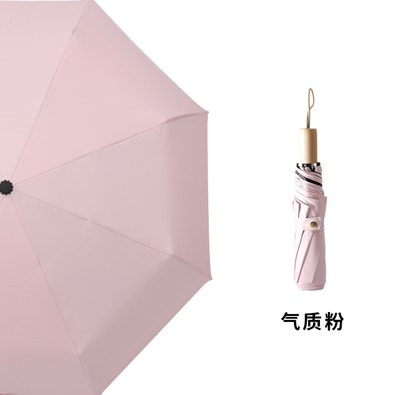 厂家直供木柄遮阳伞印logo三折伞防紫外线黑胶晴雨伞ins女防晒伞