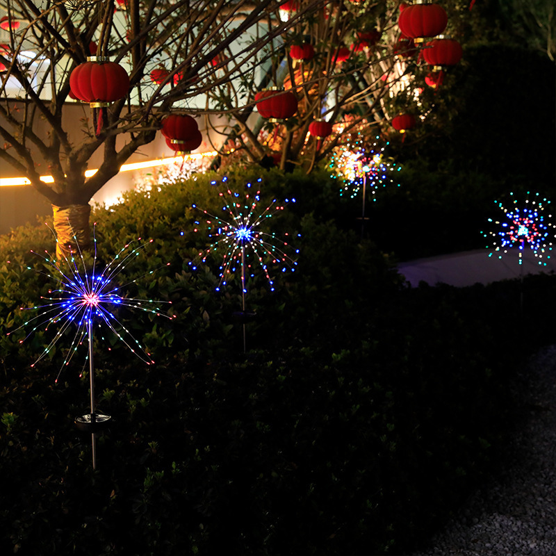 跨境太阳能烟花灯户外彩灯防水庭院小彩灯地插灯花园装饰灯氛围灯