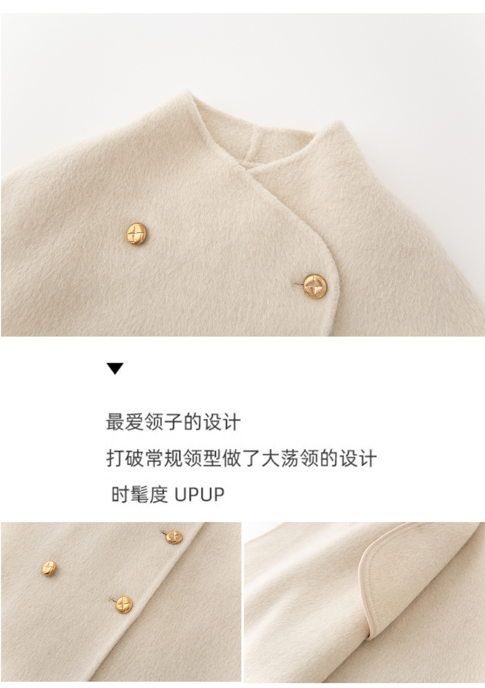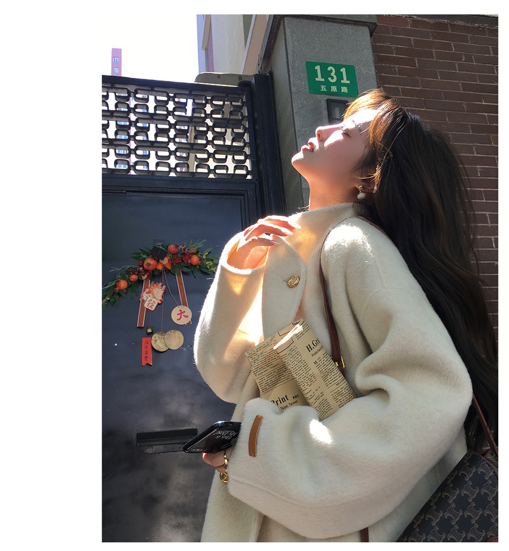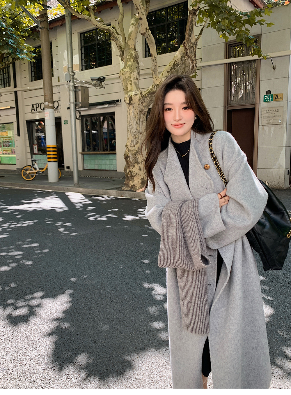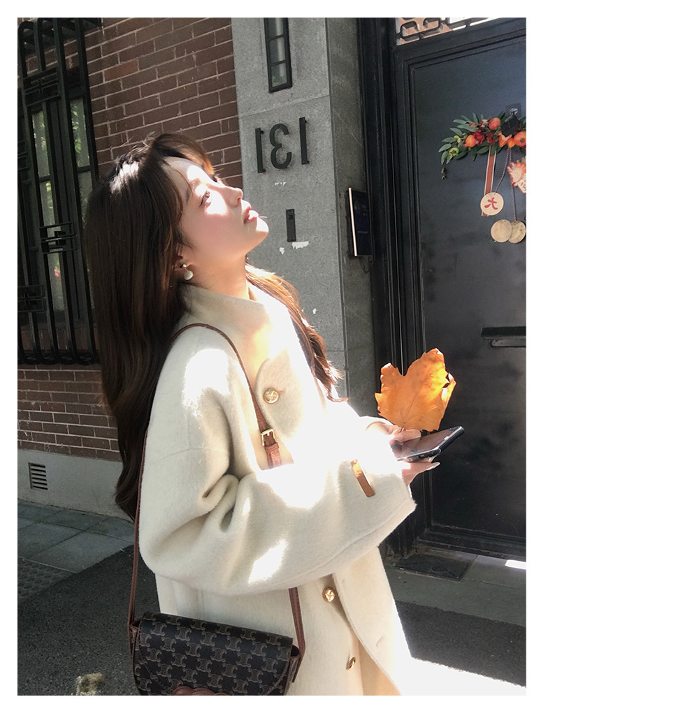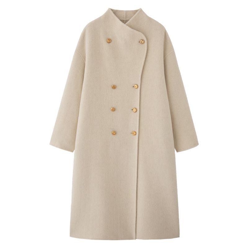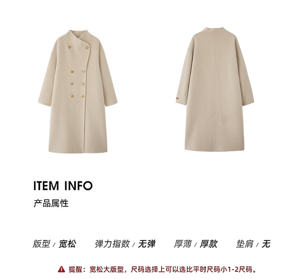 金扣中长款双面羊绒大衣女2024秋冬季高级感韩系立领宽松毛呢外套