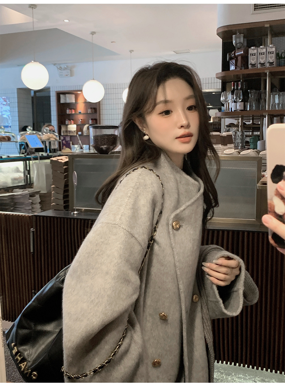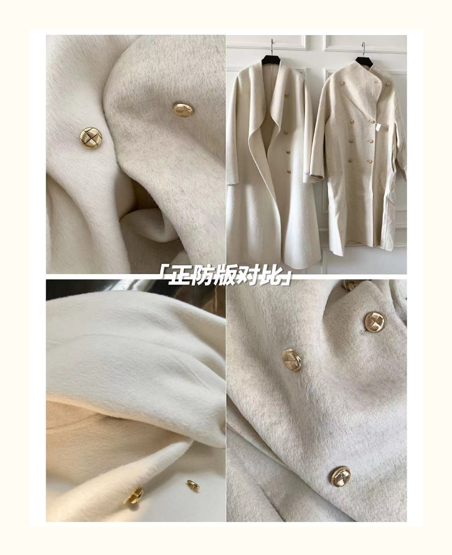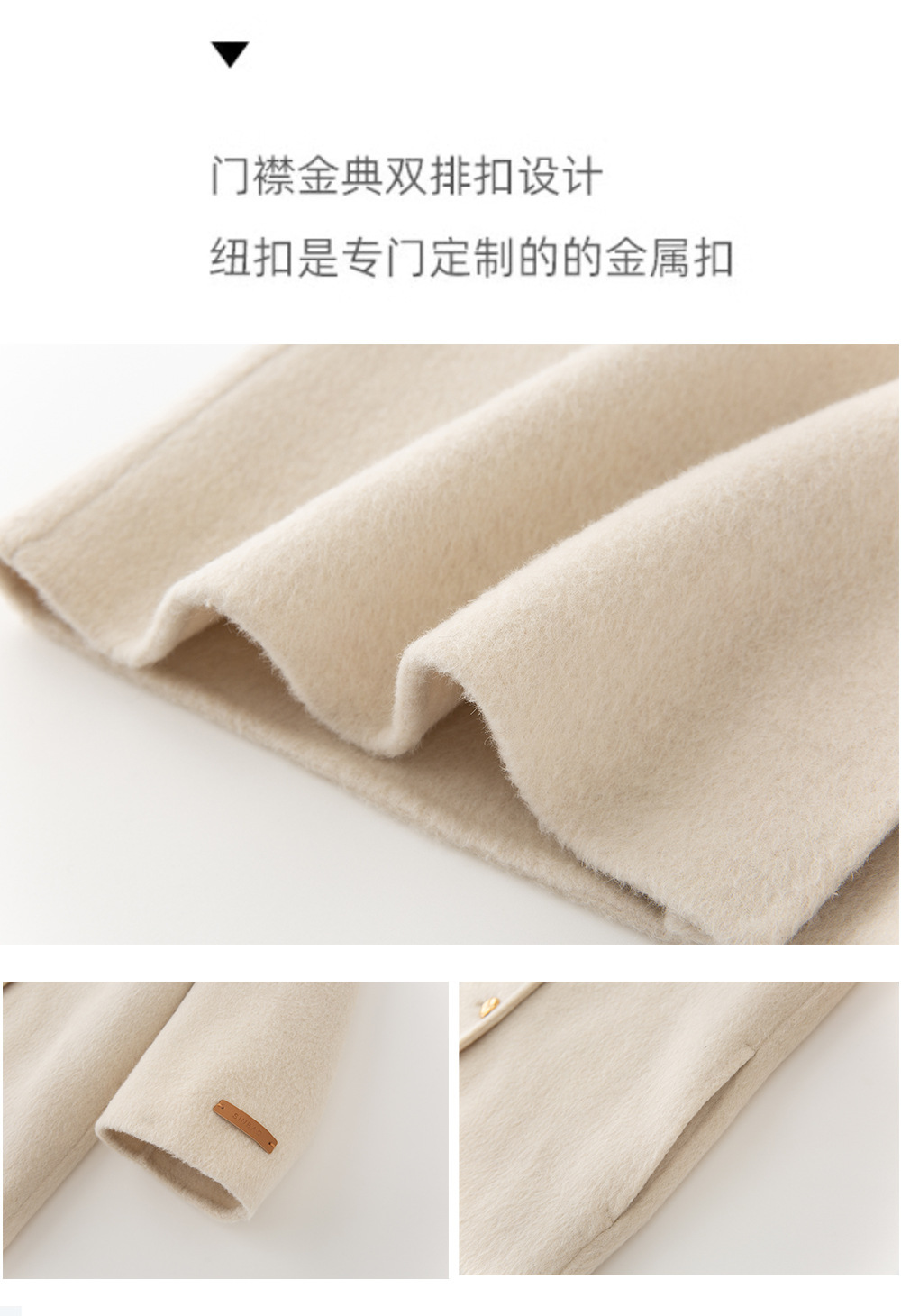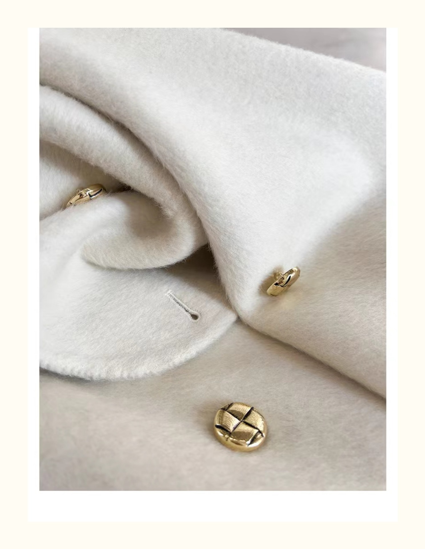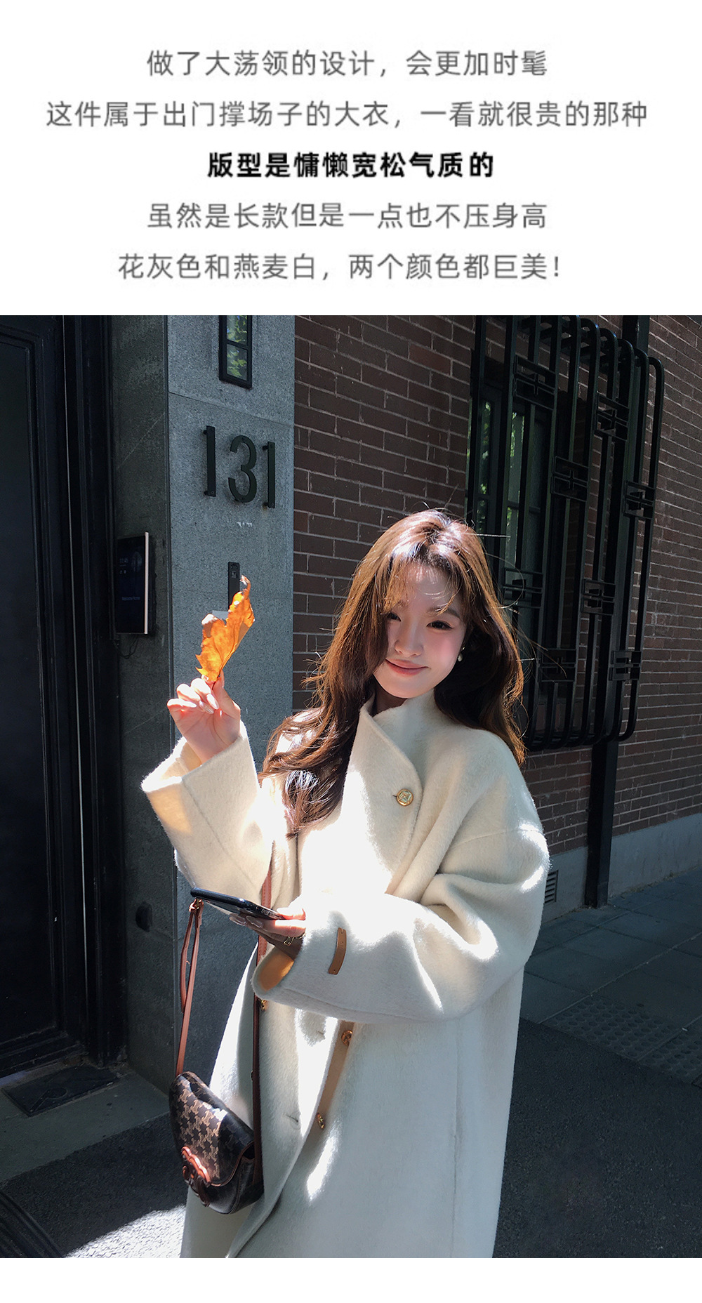 金扣中长款双面羊绒大衣女2024秋冬季高级感韩系立领宽松毛呢外套