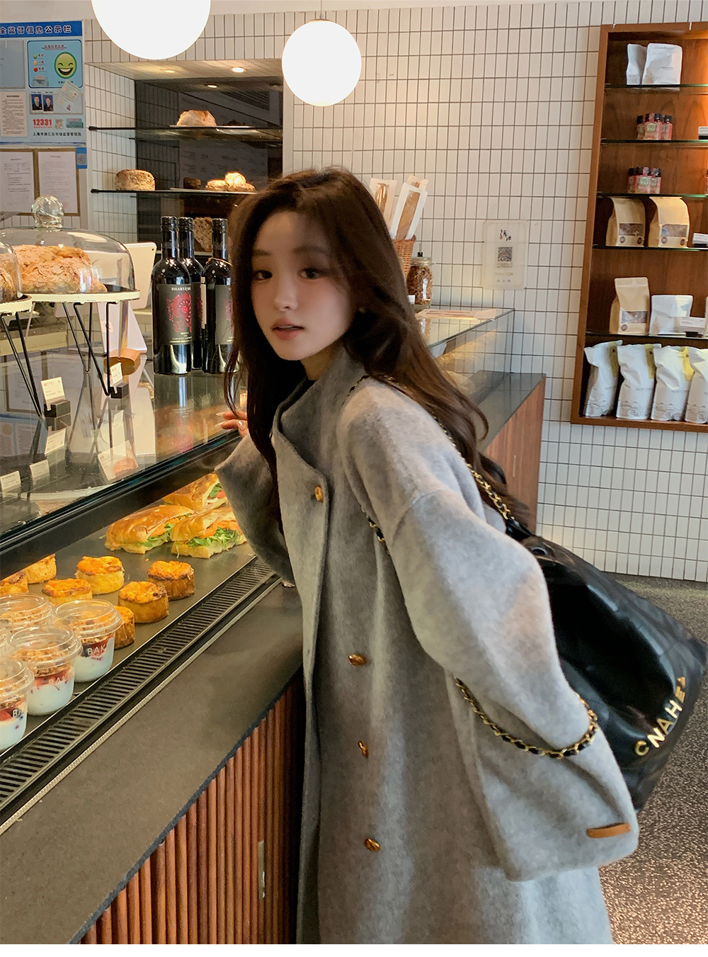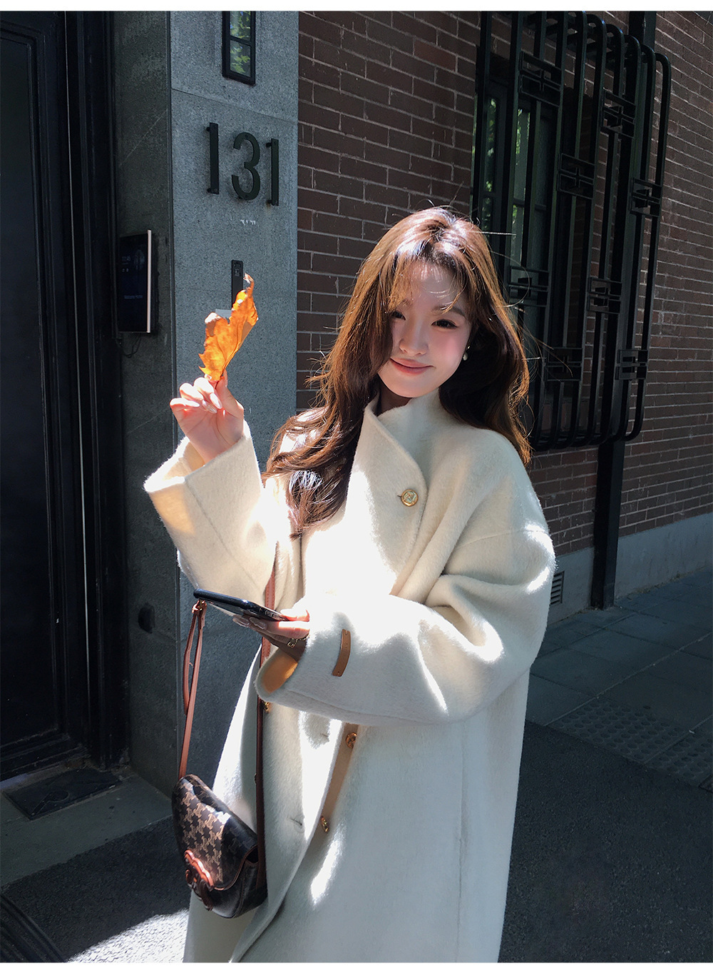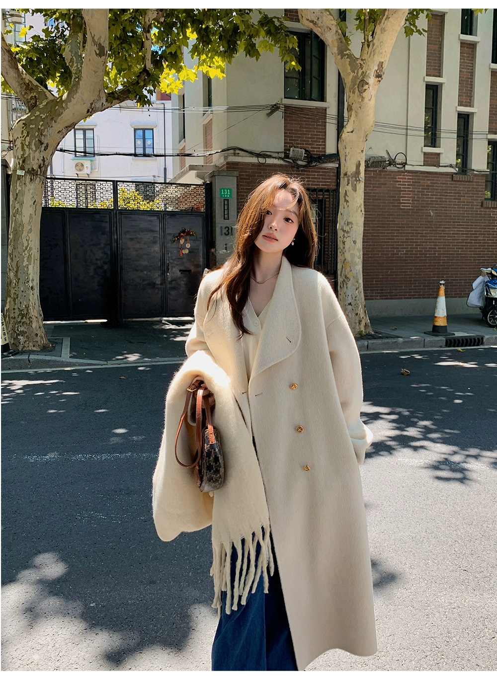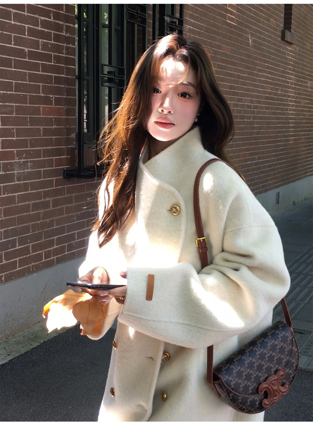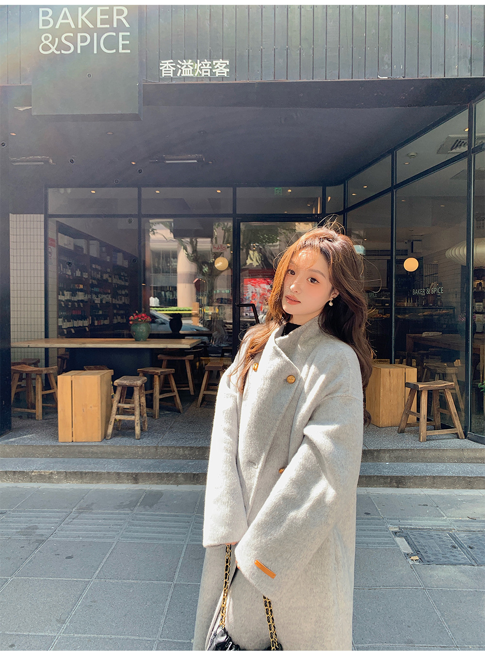 金扣中长款双面羊绒大衣女2024秋冬季高级感韩系立领宽松毛呢外套