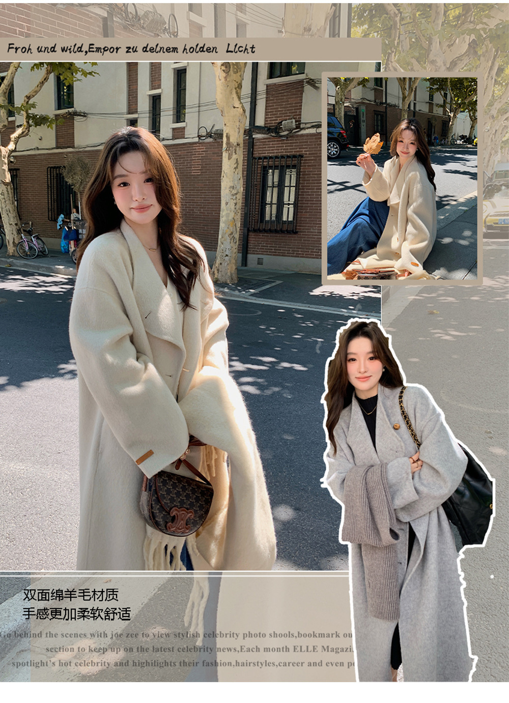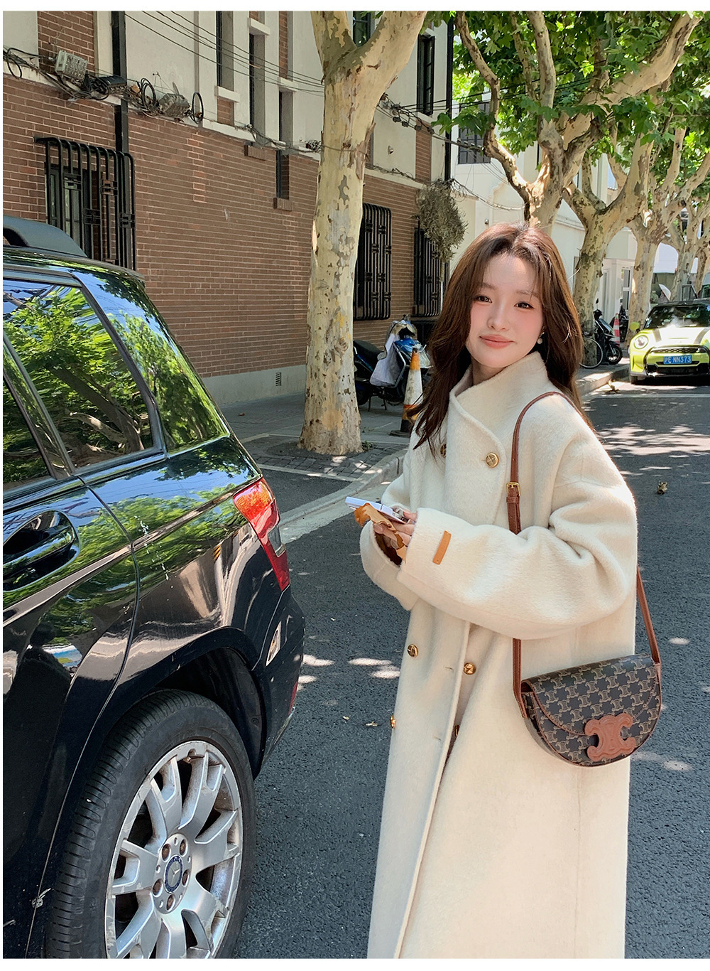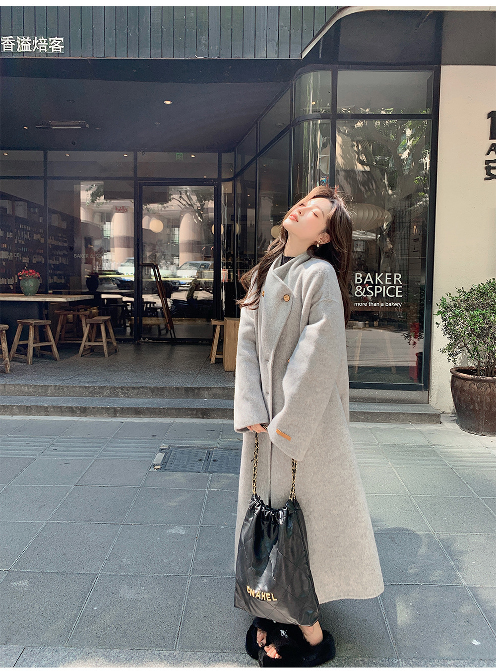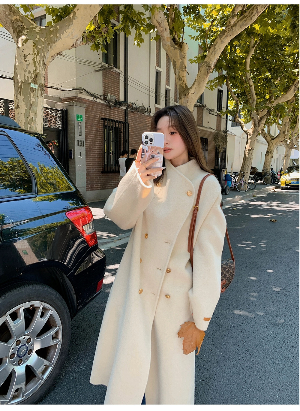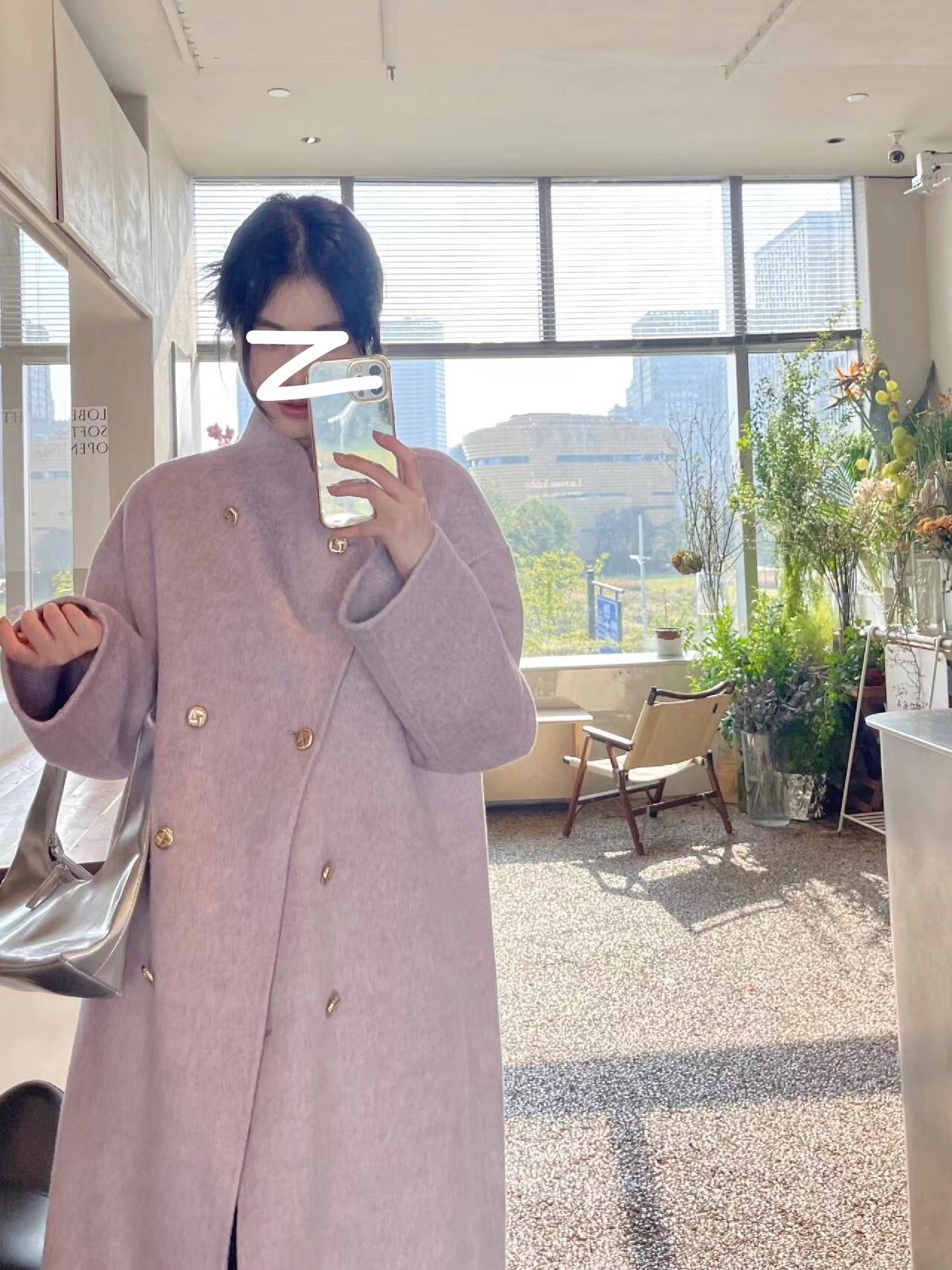 金扣中长款双面羊绒大衣女2024秋冬季高级感韩系立领宽松毛呢外套