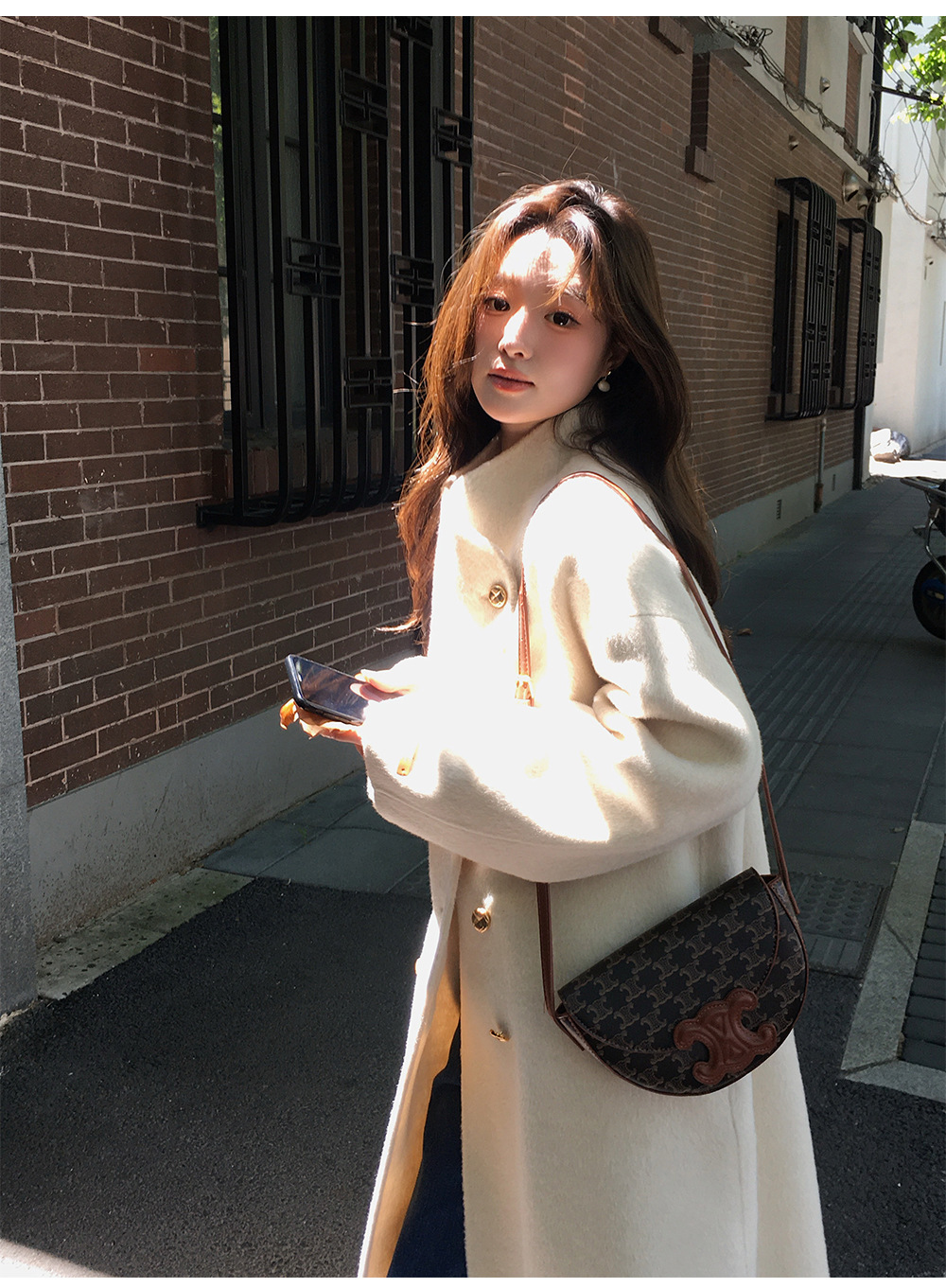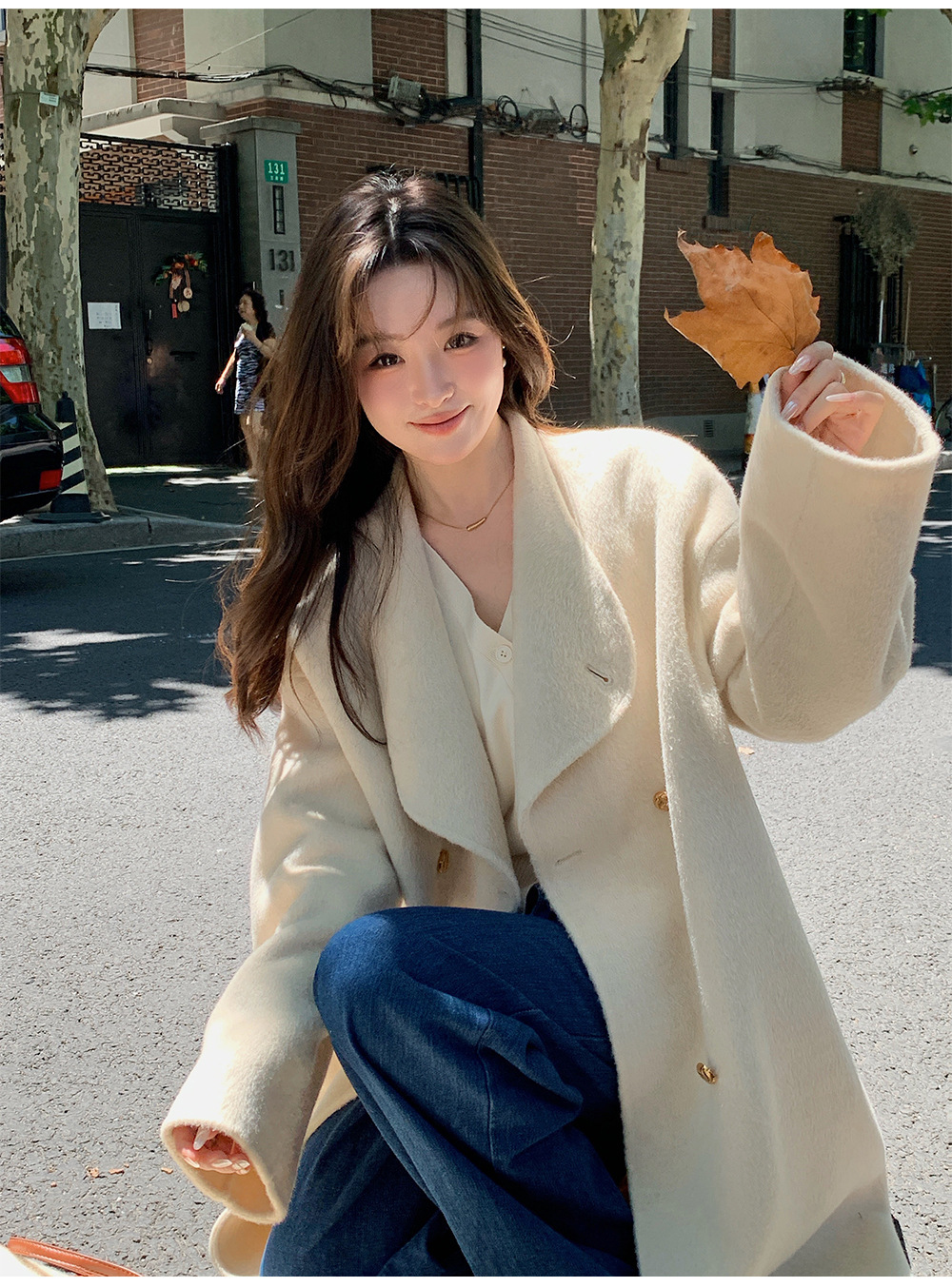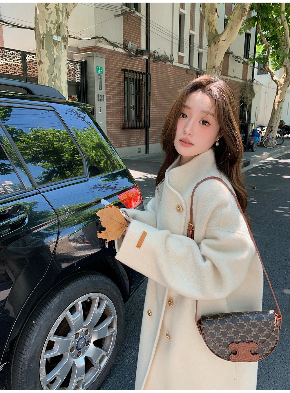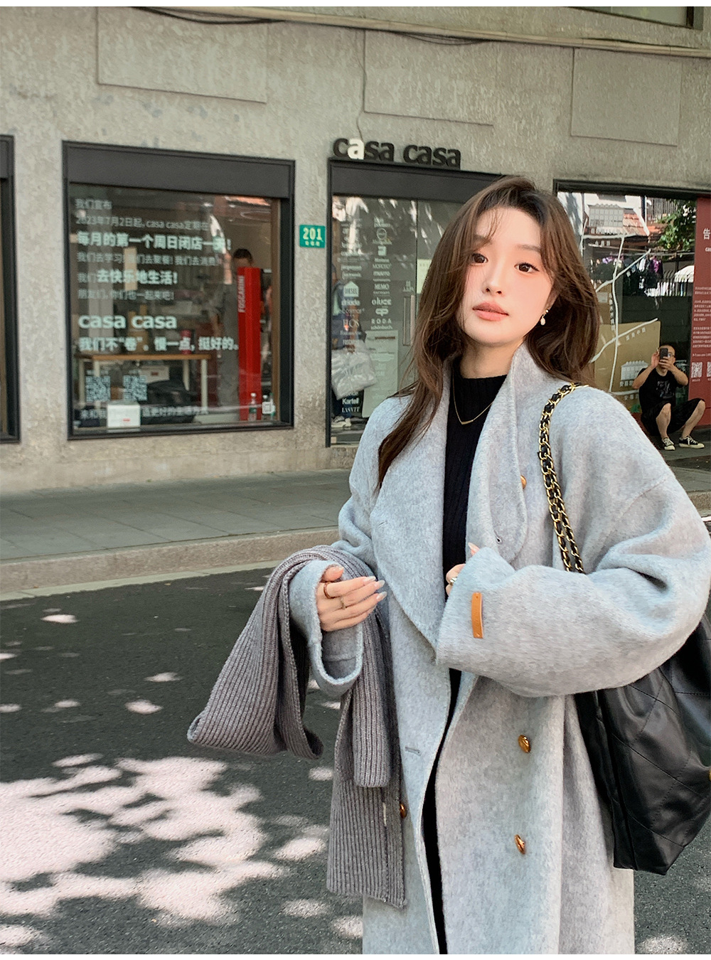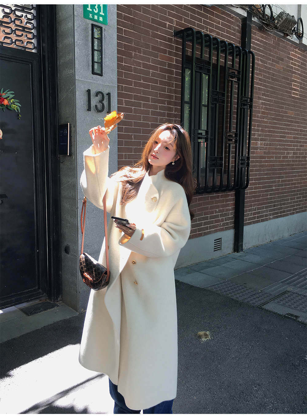 金扣中长款双面羊绒大衣女2024秋冬季高级感韩系立领宽松毛呢外套
