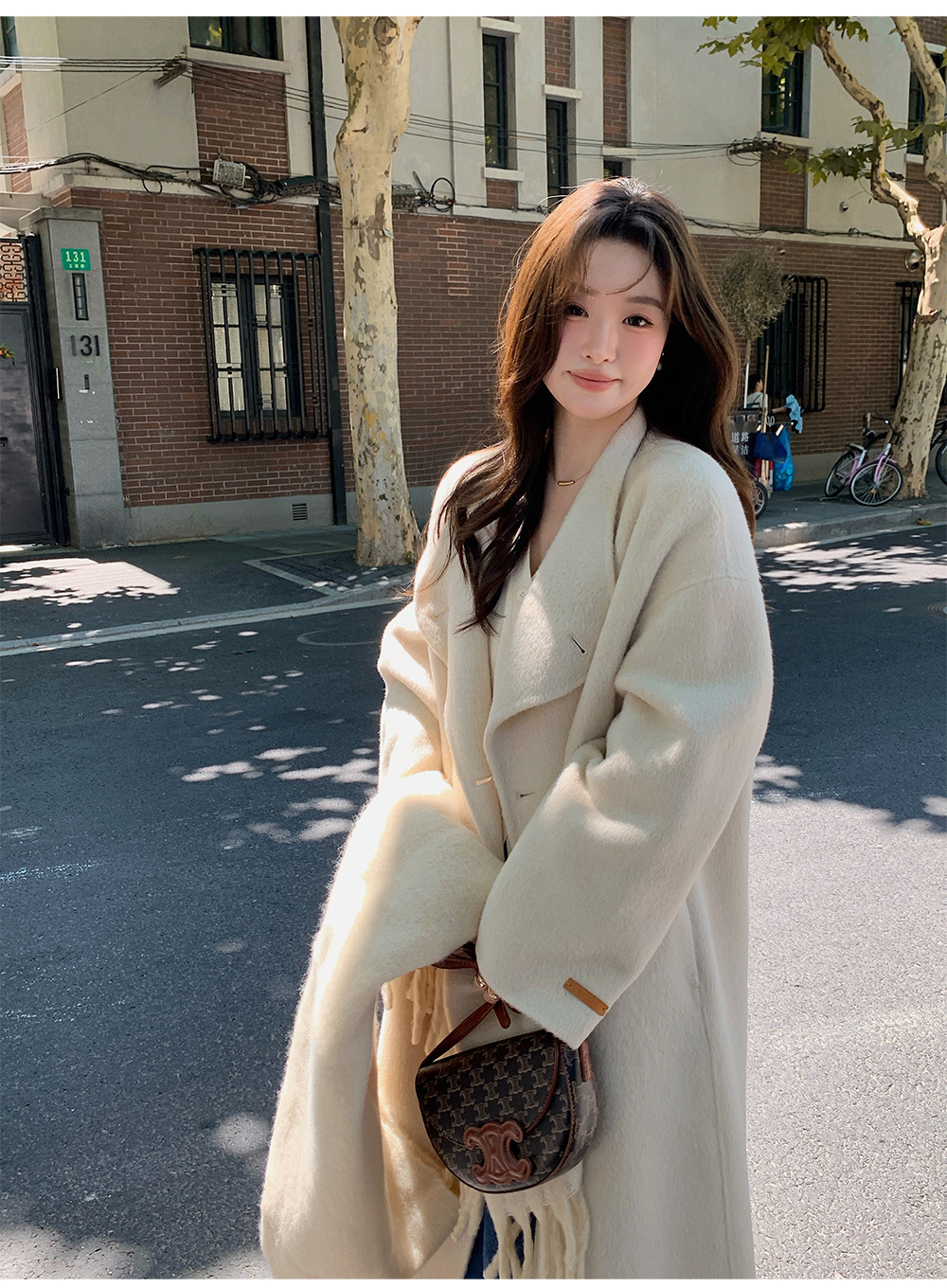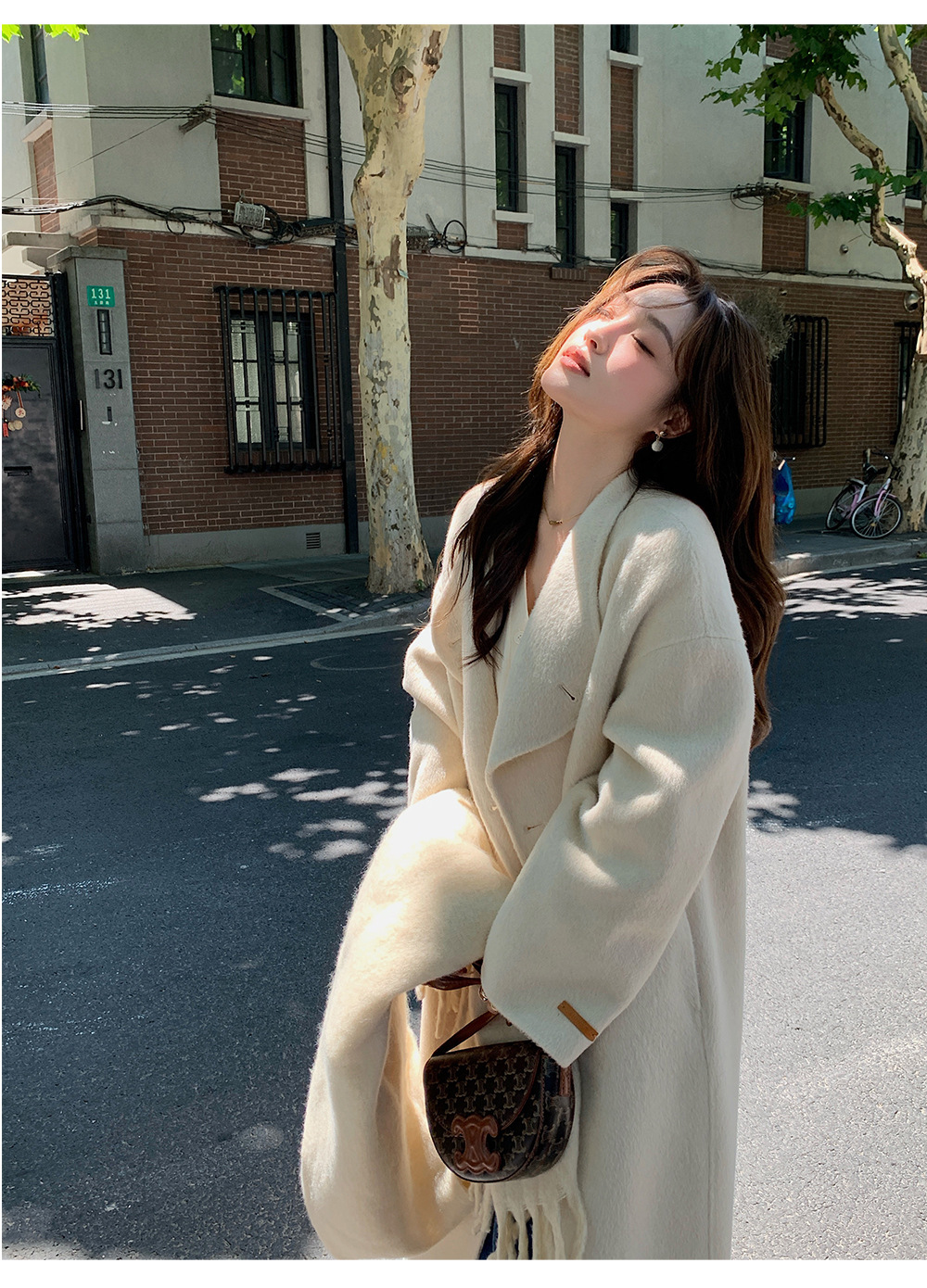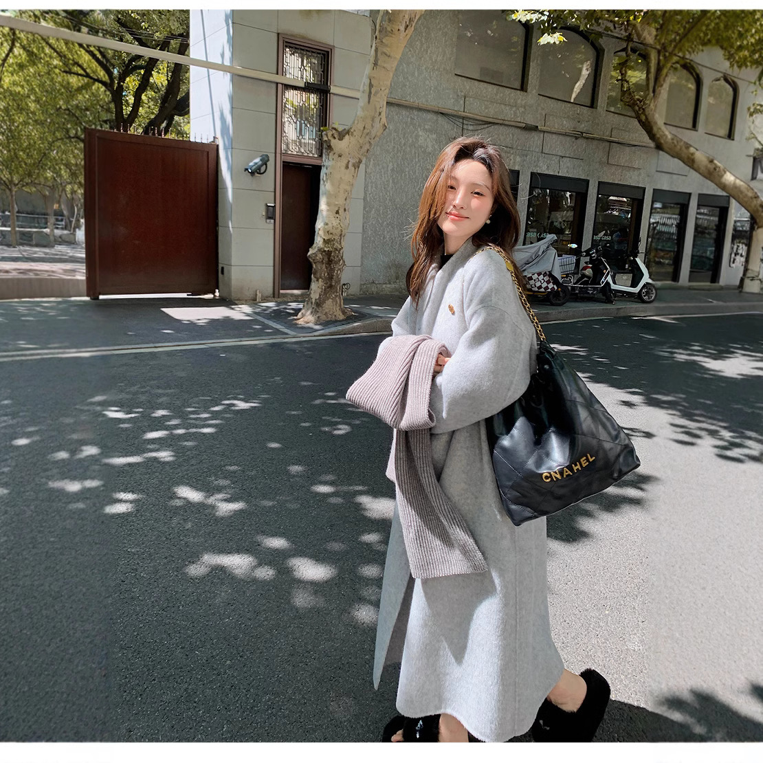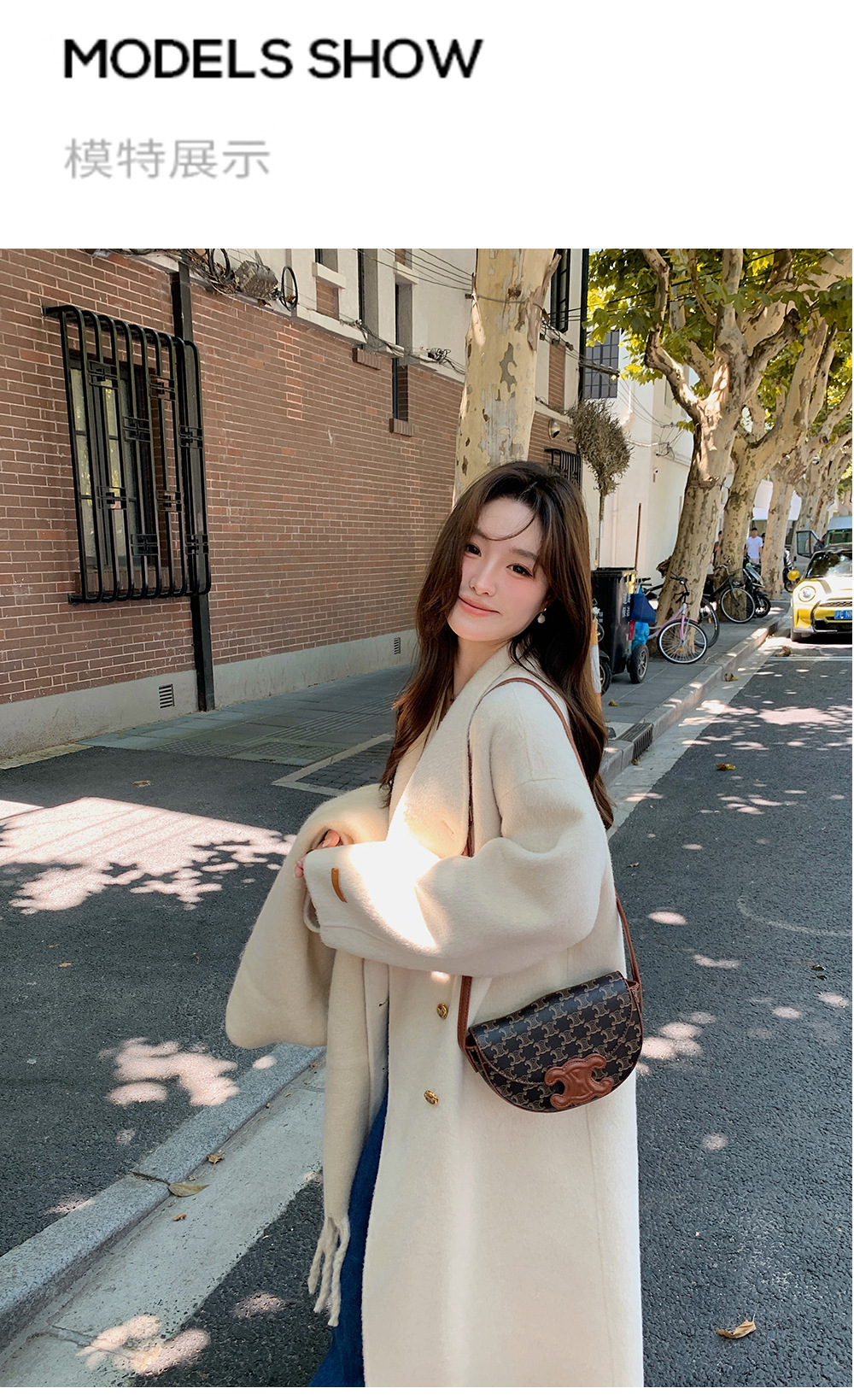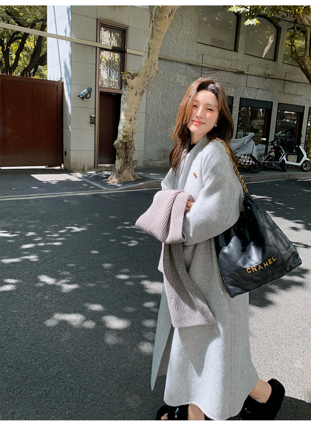 金扣中长款双面羊绒大衣女2024秋冬季高级感韩系立领宽松毛呢外套