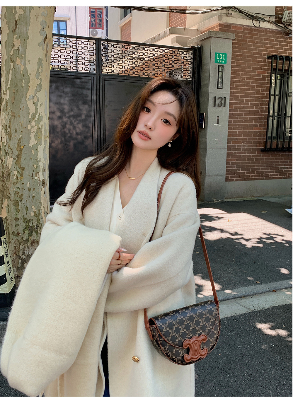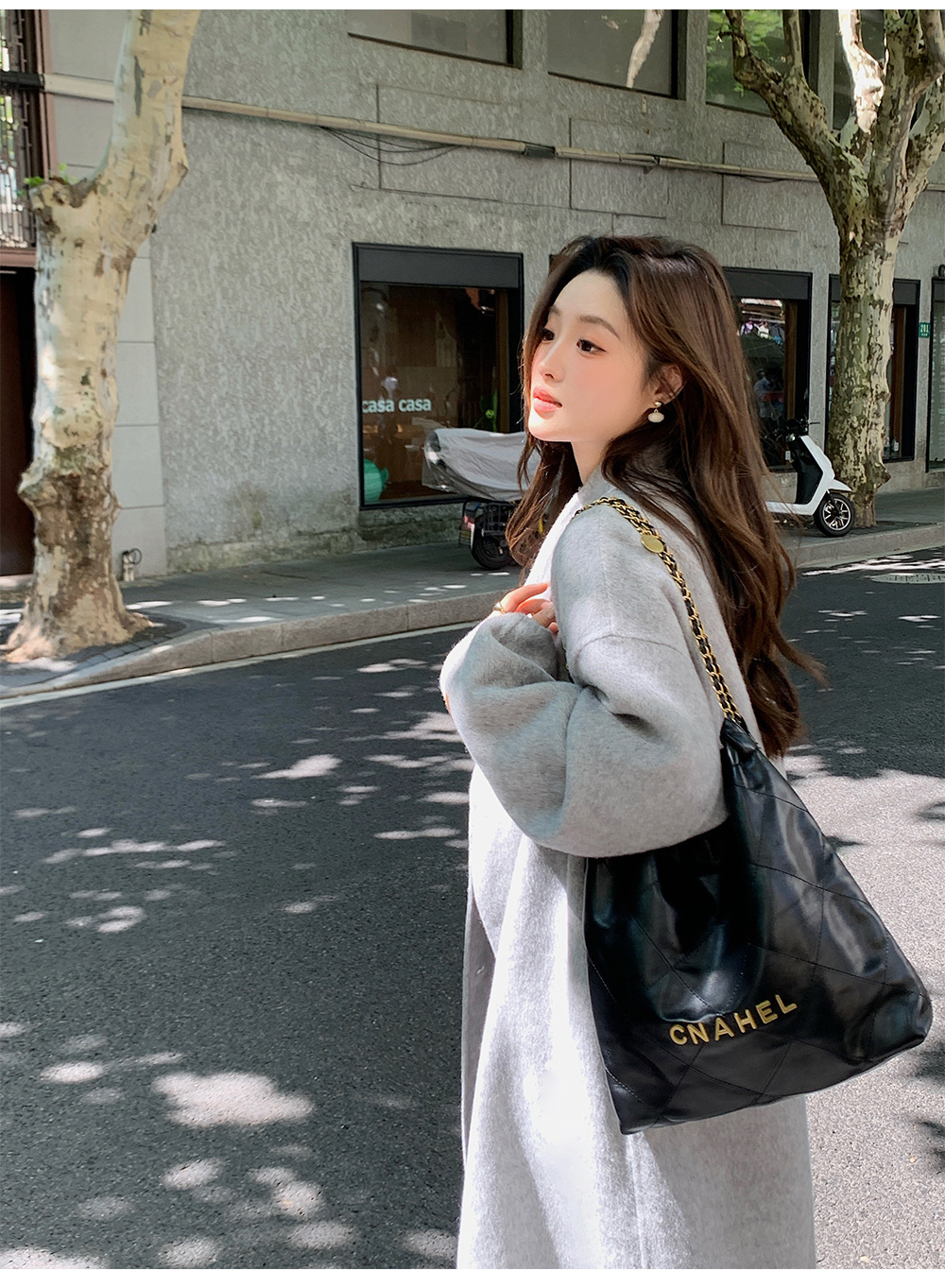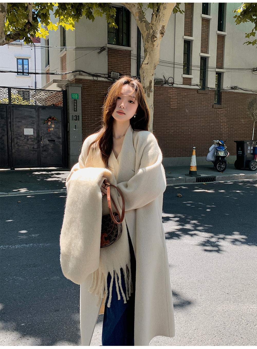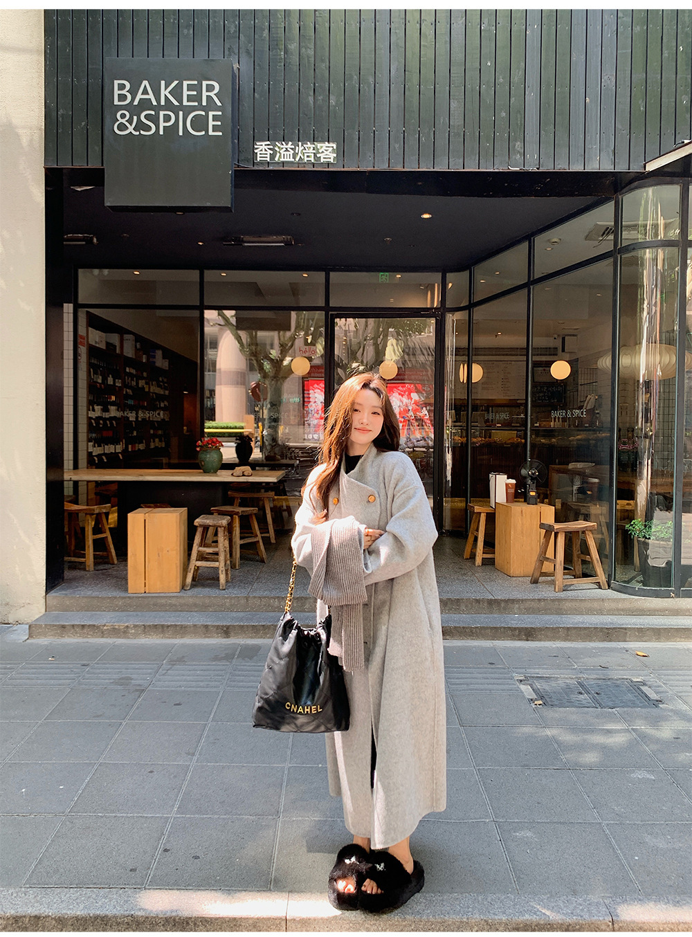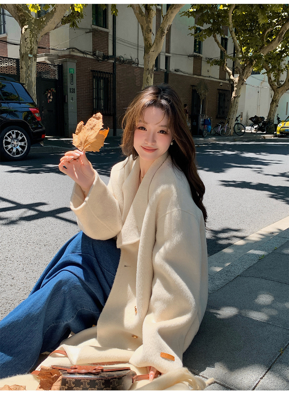 金扣中长款双面羊绒大衣女2024秋冬季高级感韩系立领宽松毛呢外套