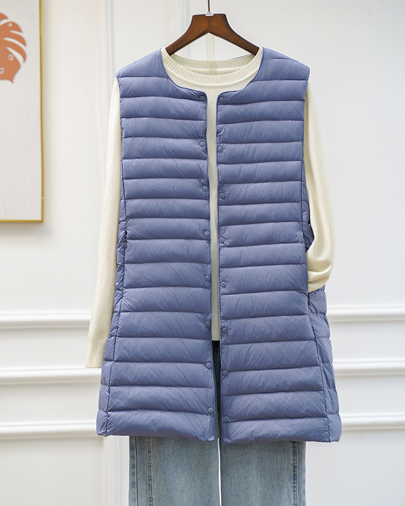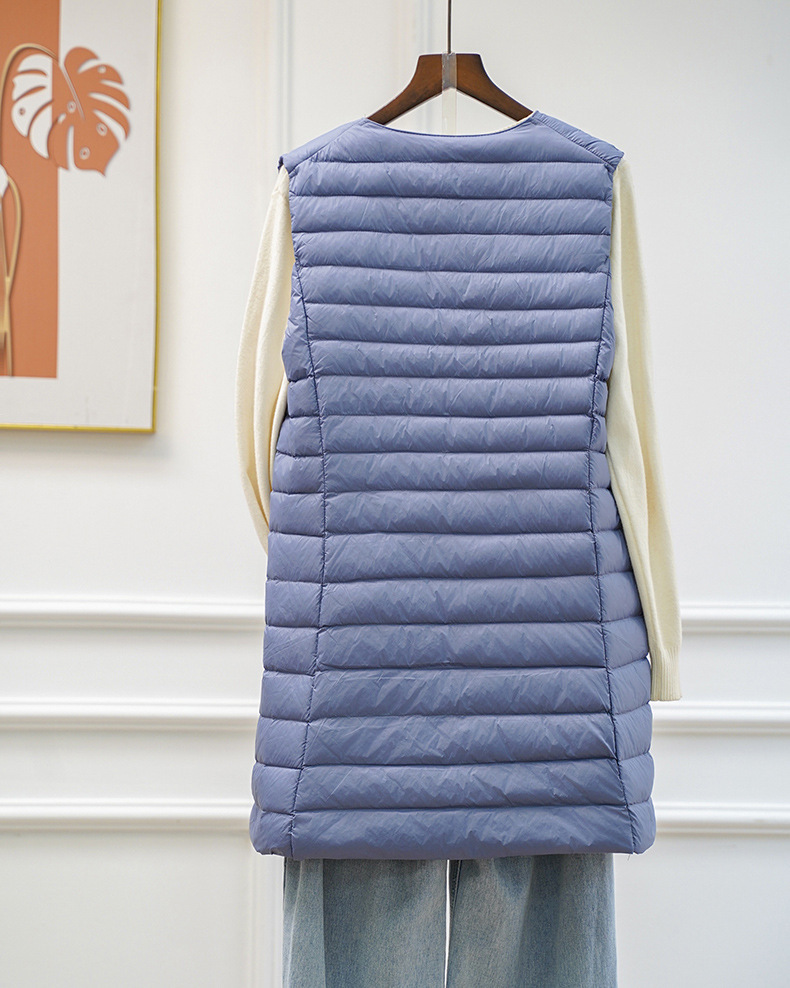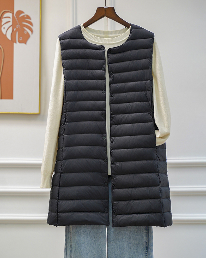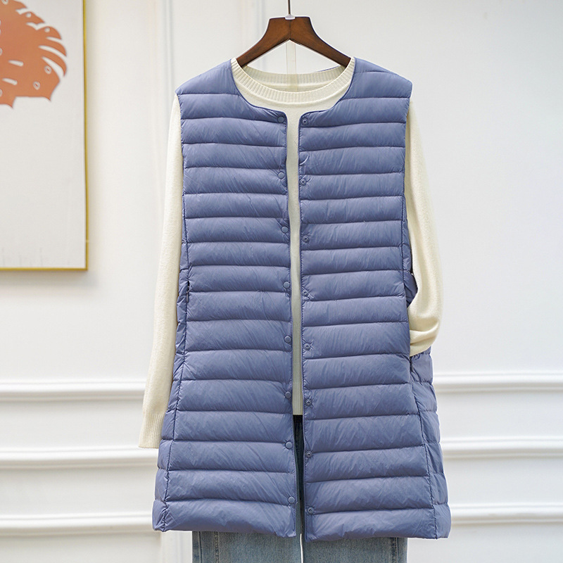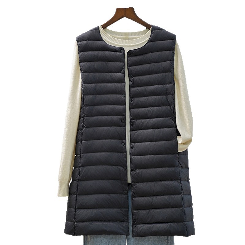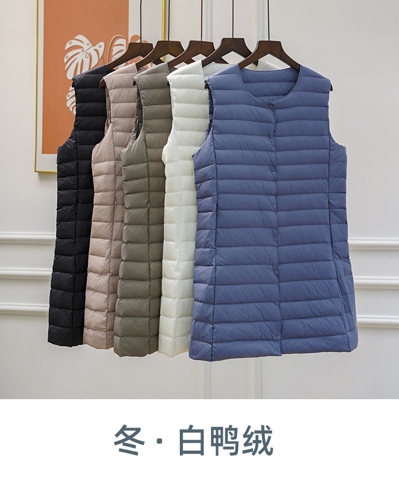 跨境TikTok轻薄羽绒服马甲女中长款圆领V领冬季韩版时尚保暖外套