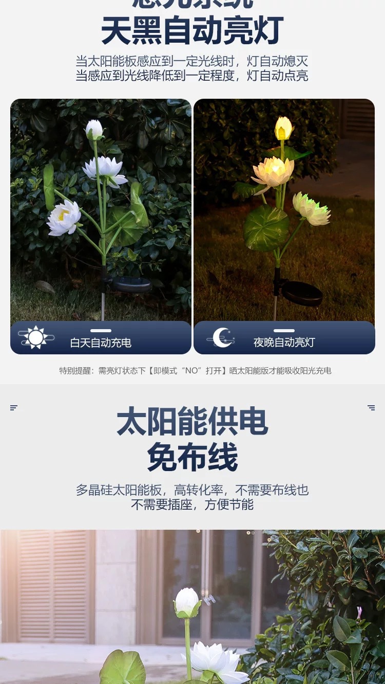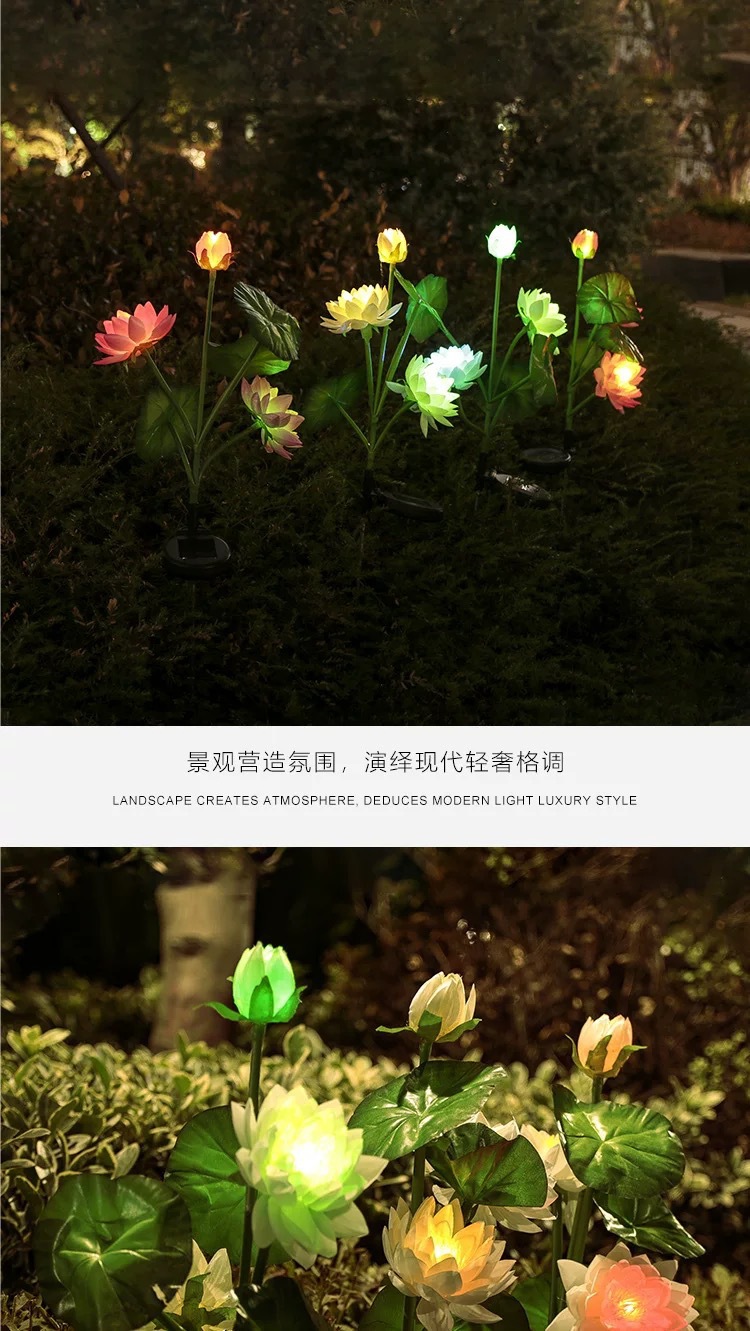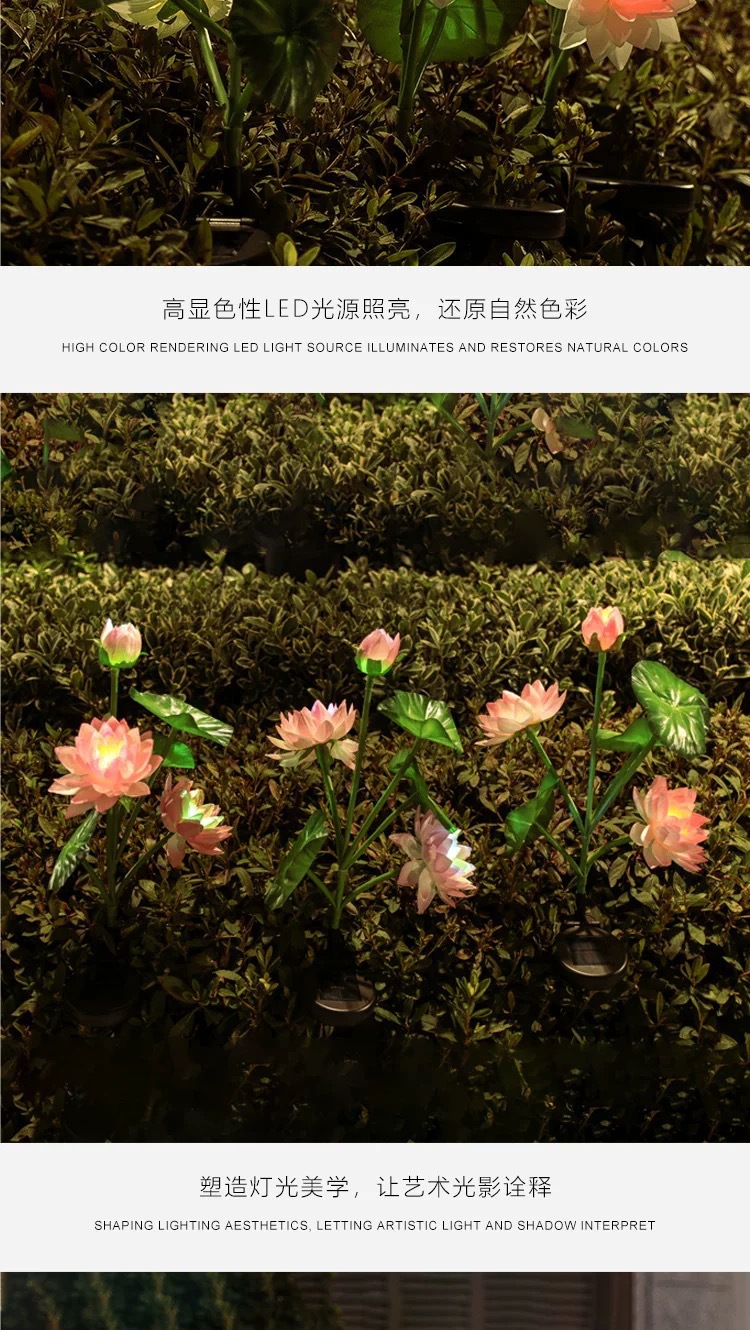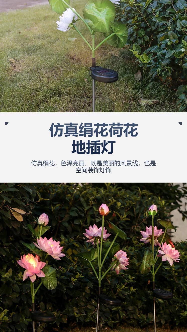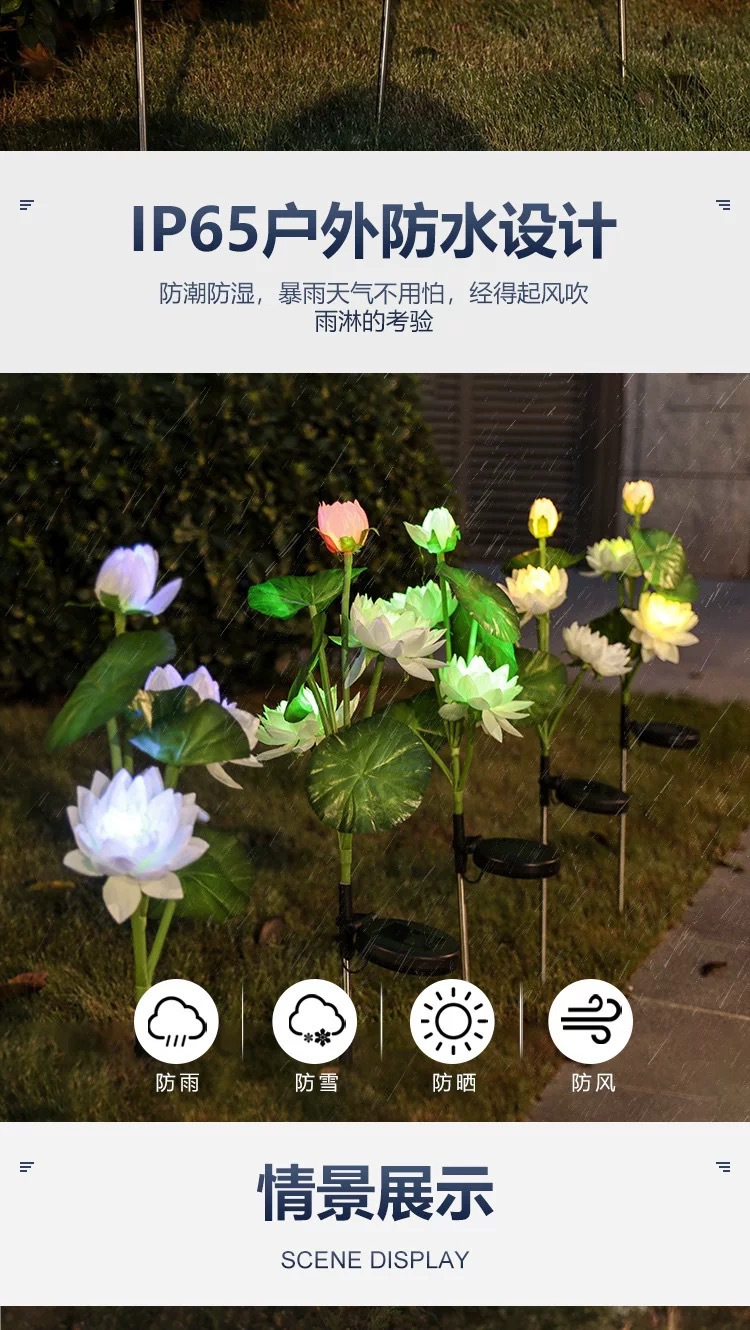 跨境太阳能荷花草坪灯户外景观灯花园地插灯莲花灯氛围装饰灯