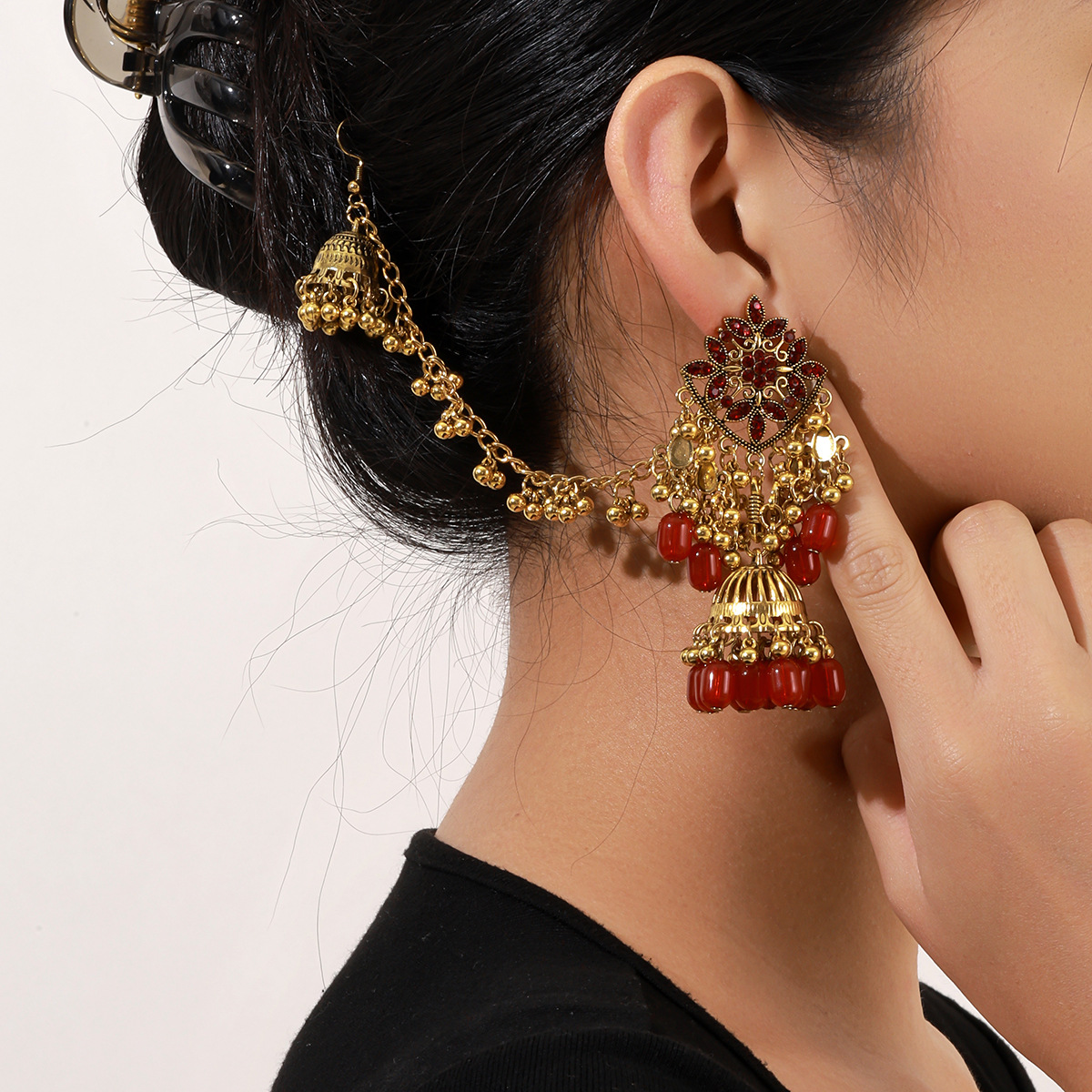 欧美时尚复古流苏耳环波西米亚风民族风个性气质鸟笼铃铛吊坠铃铛