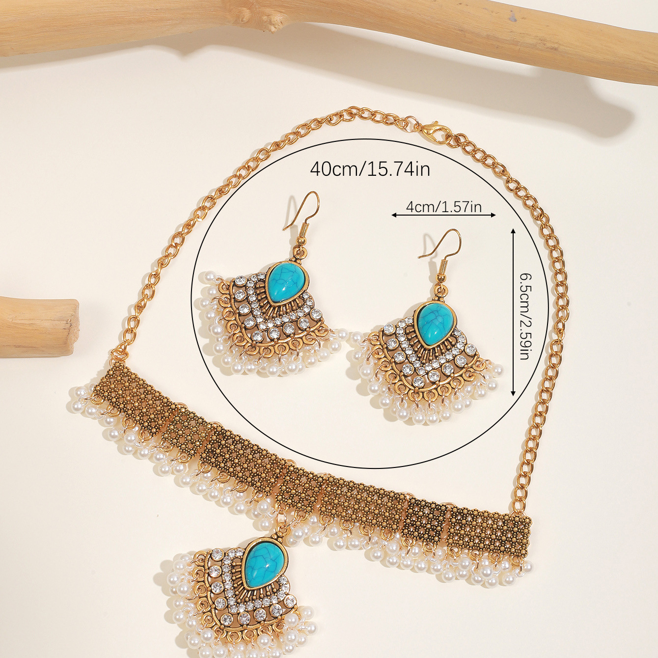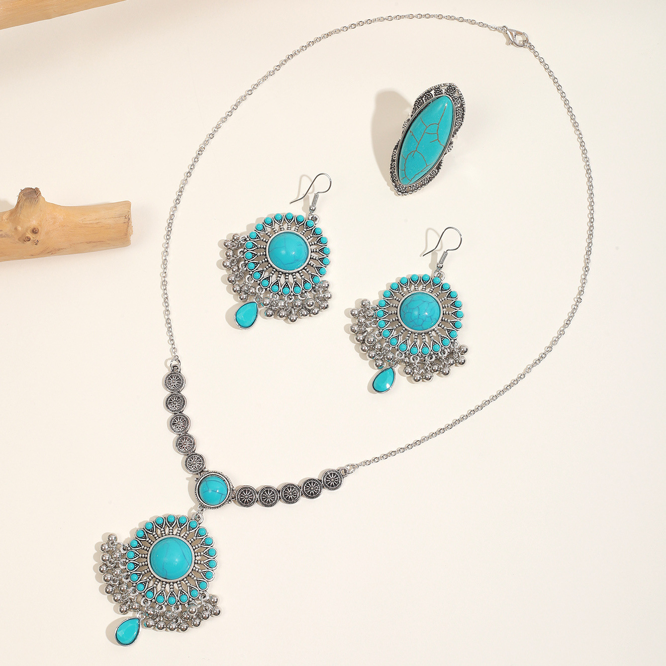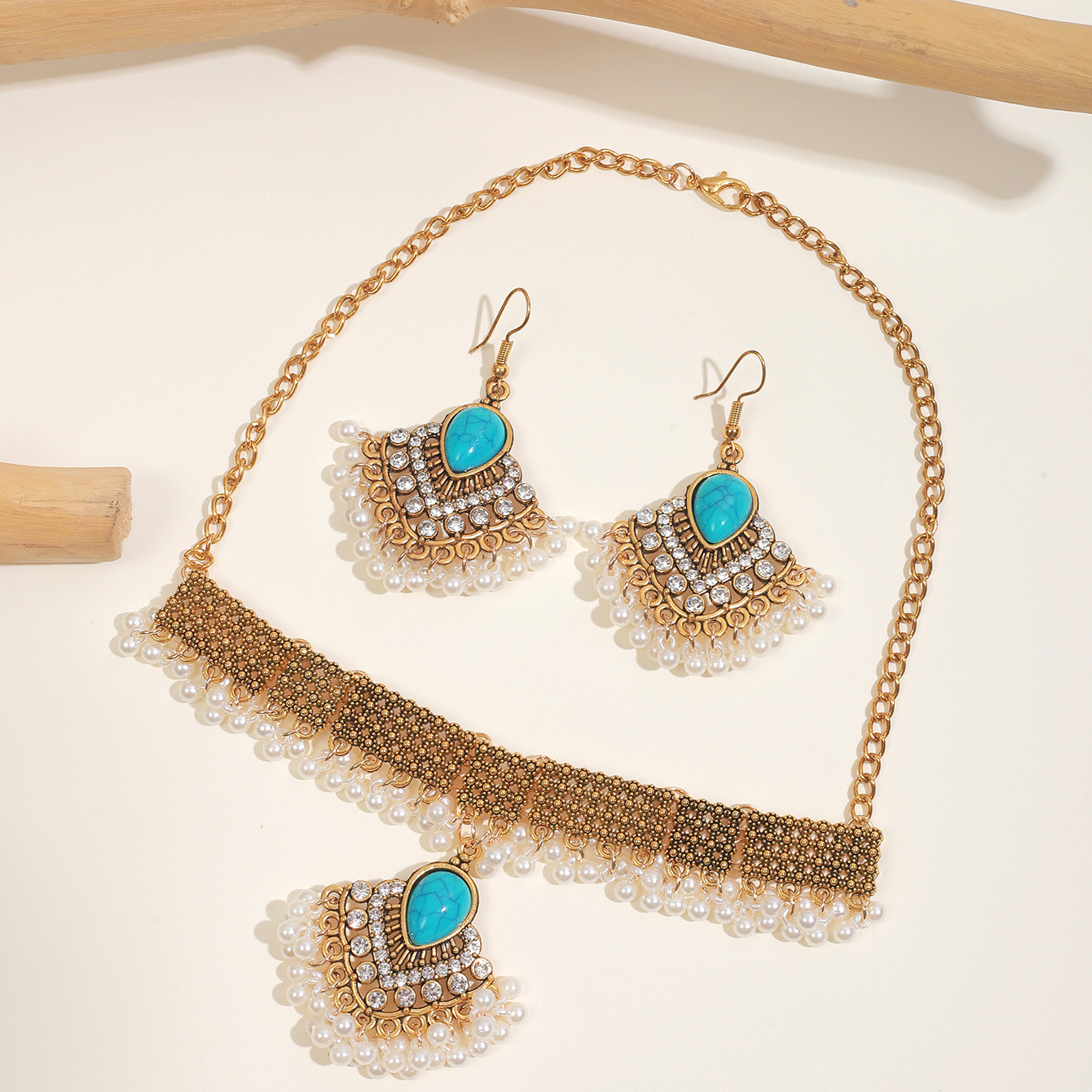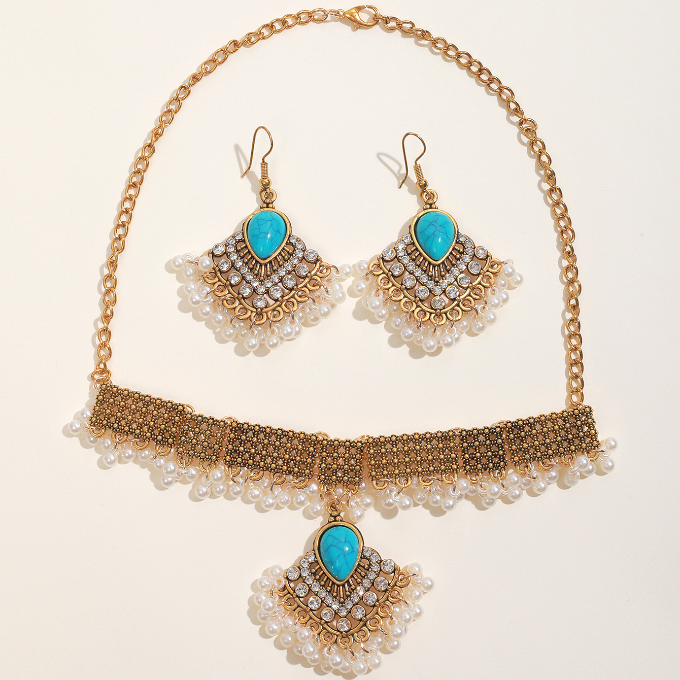 绿松石欧美跨境复古吊坠项链耳环套装批发绿松石欧美跨境复古吊坠