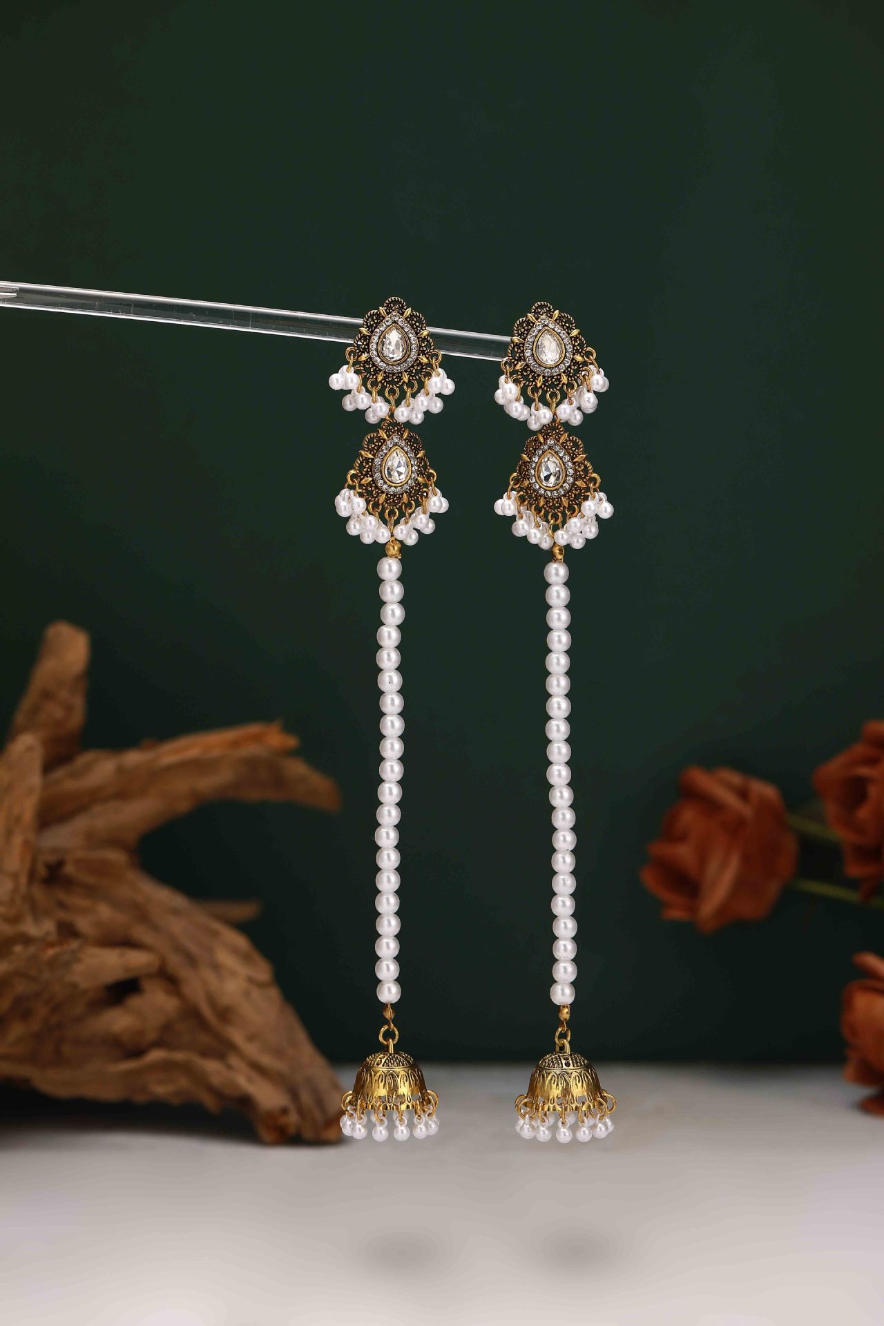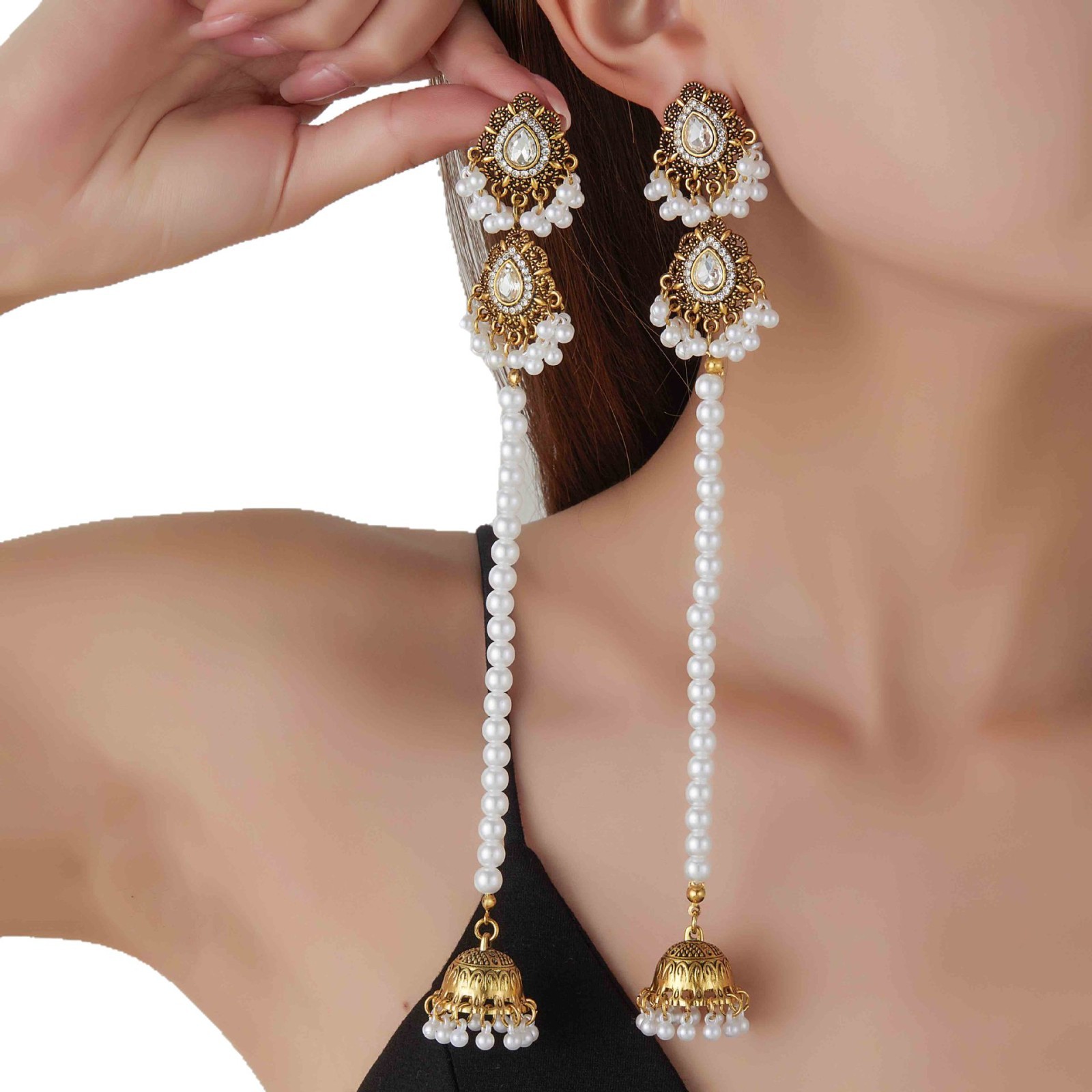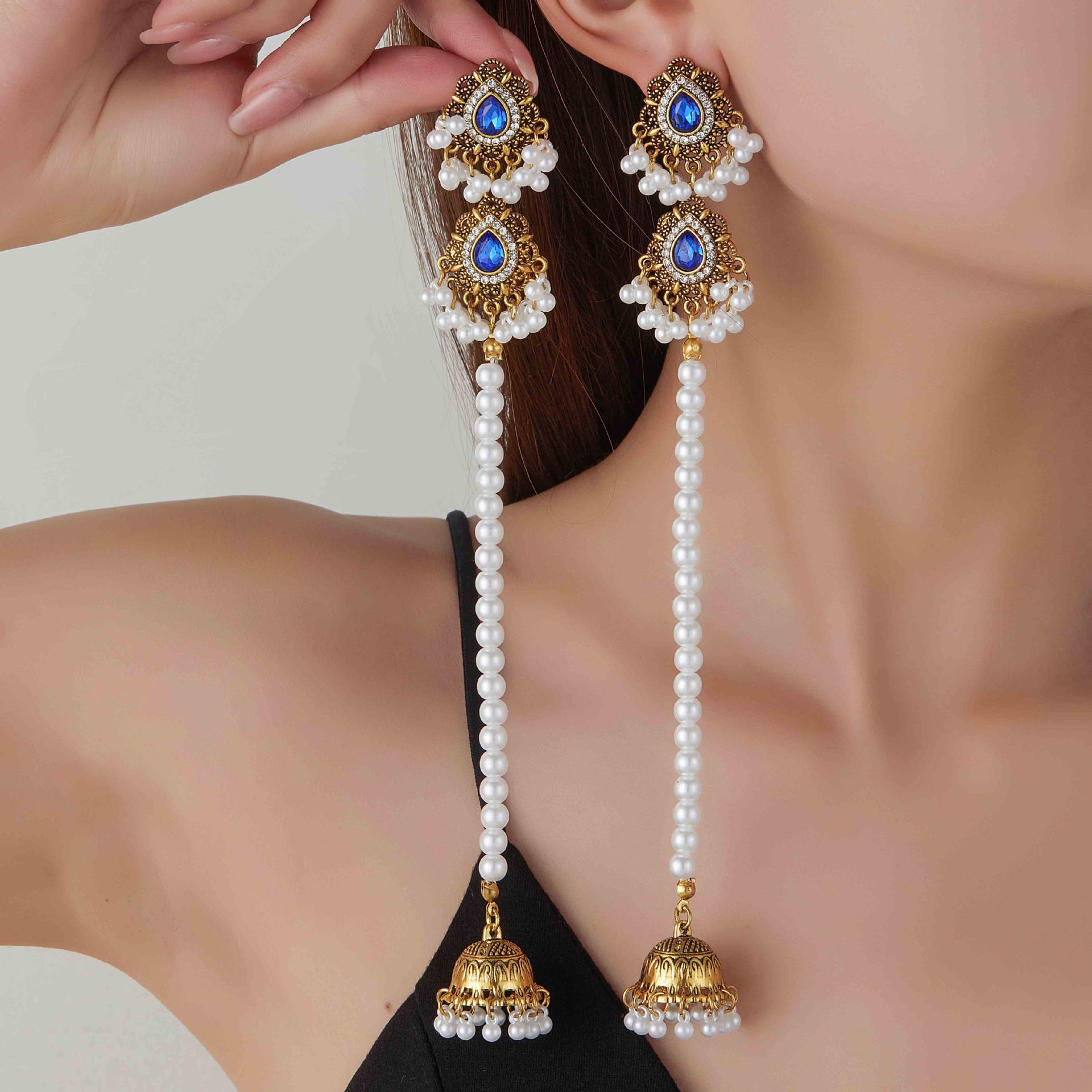 欧美跨境复古镶钻新中式波西米亚风金属民族风珍珠长流苏耳环耳饰