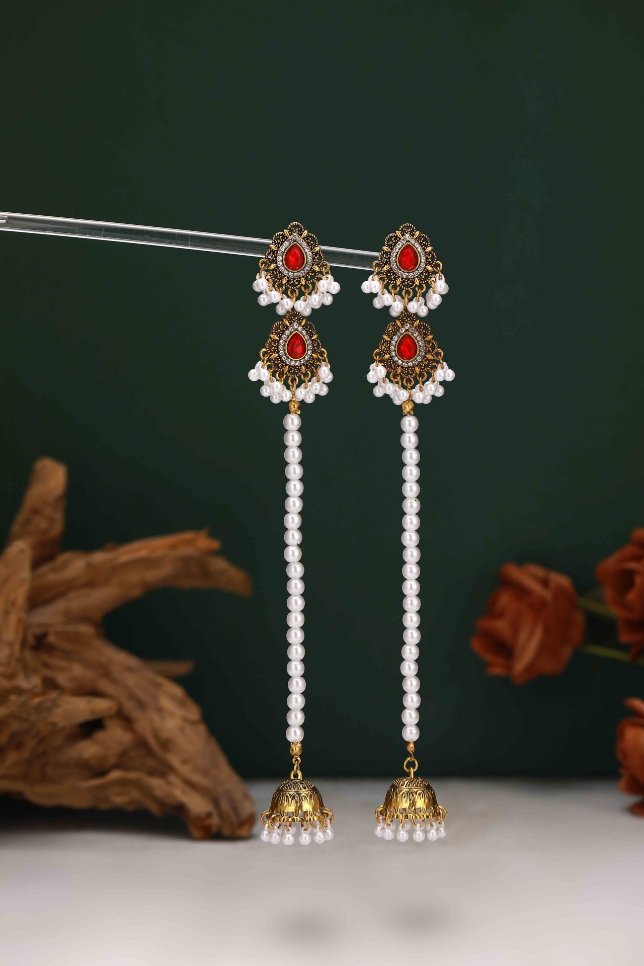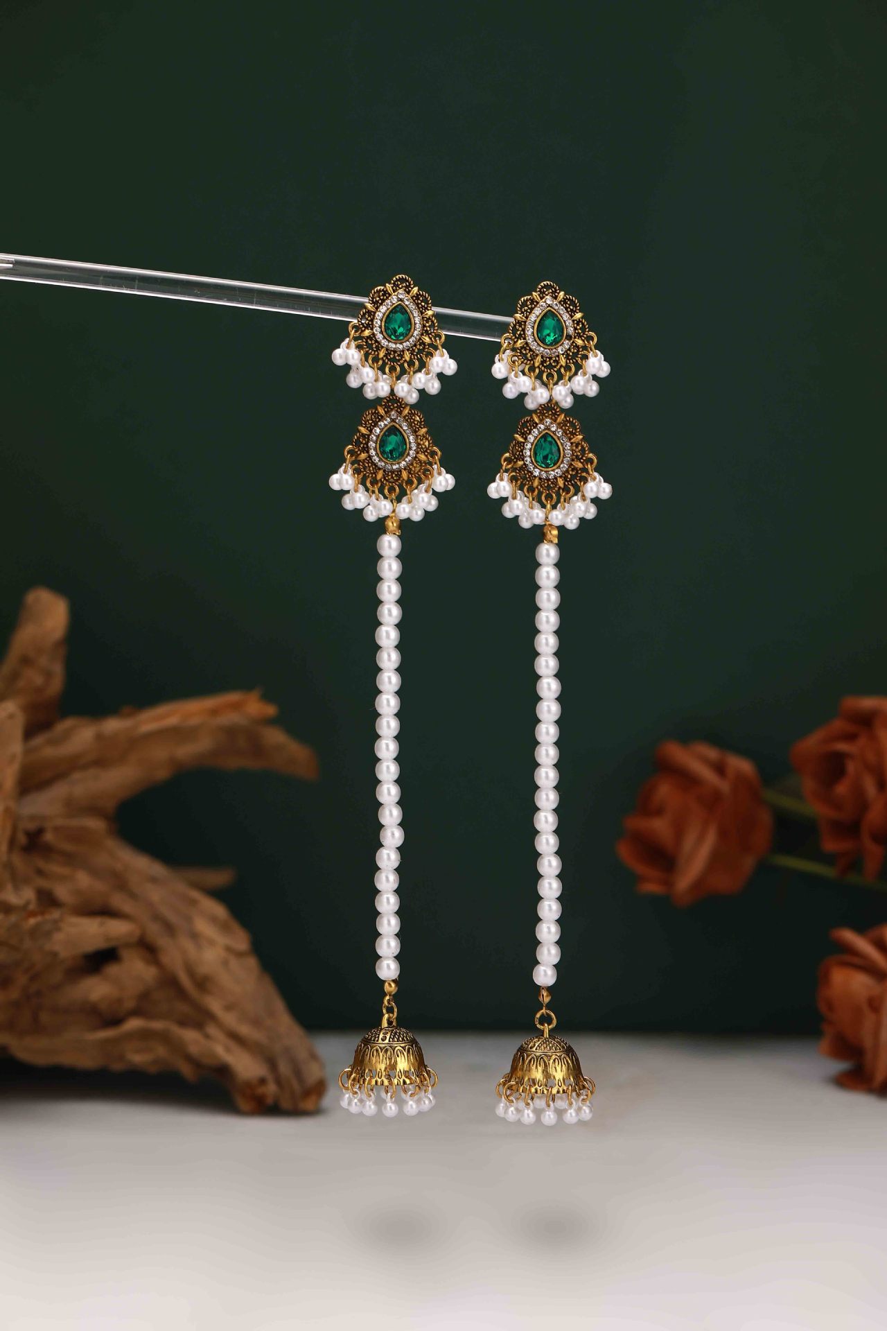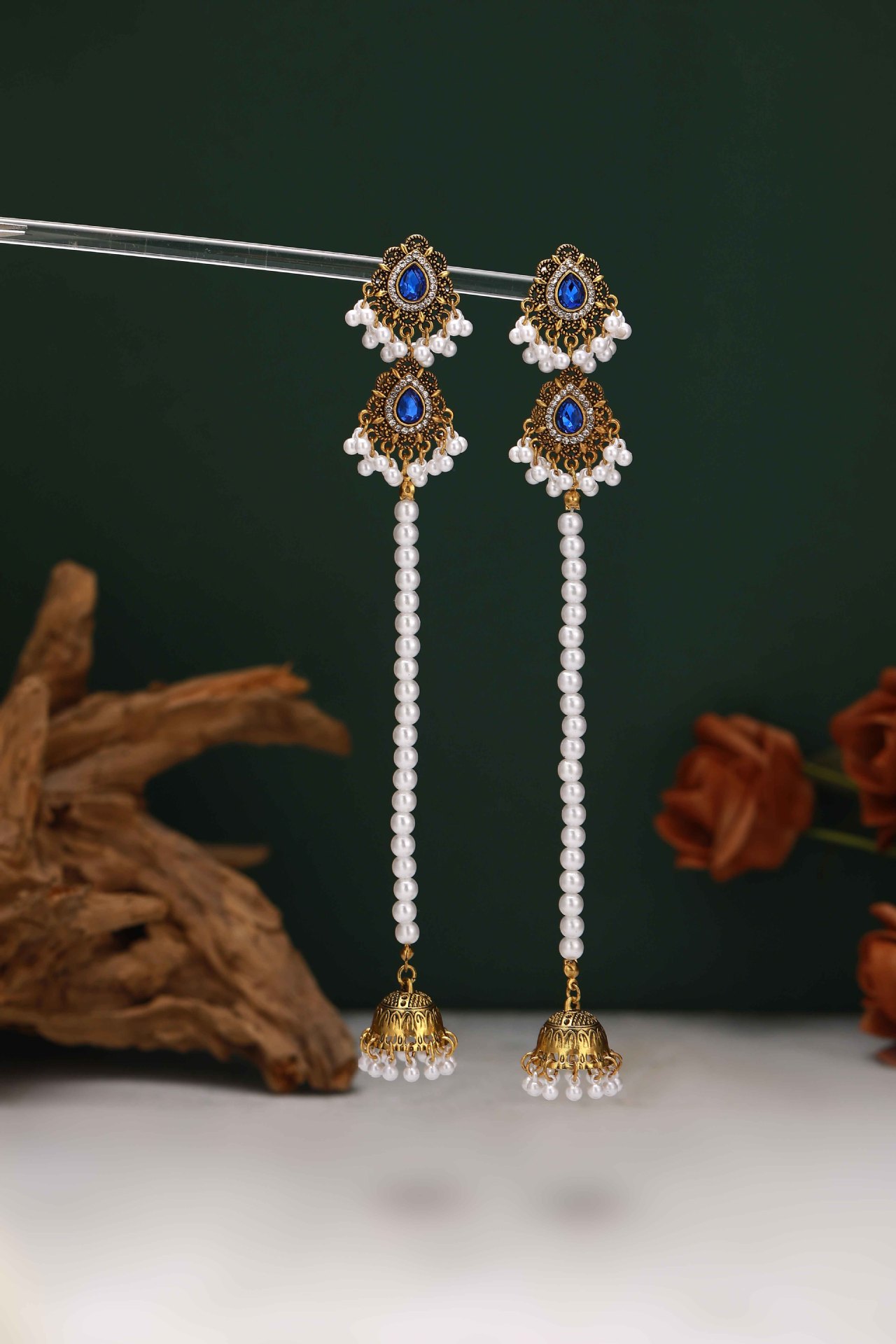 欧美跨境复古镶钻新中式波西米亚风金属民族风珍珠长流苏耳环耳饰