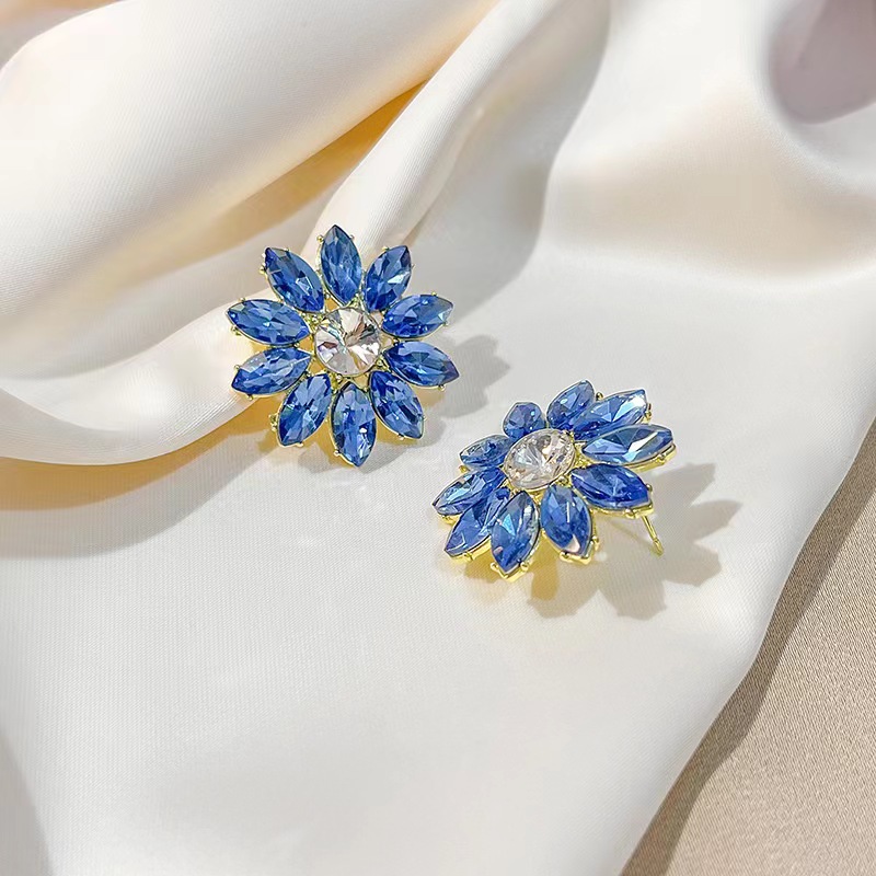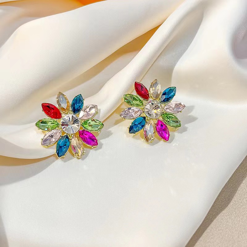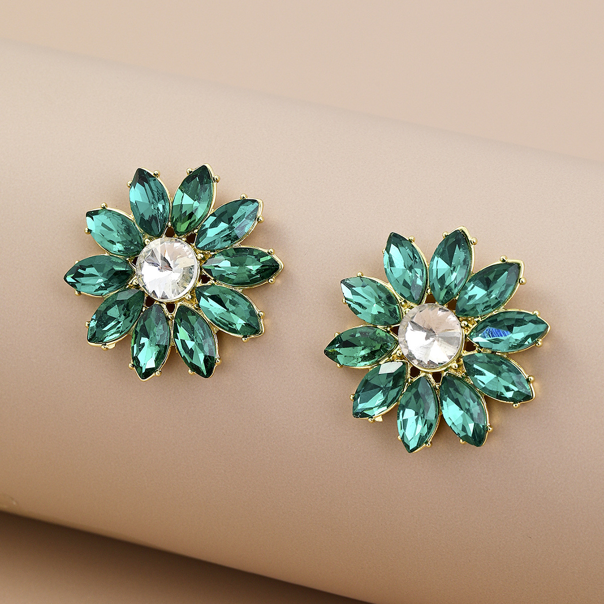 2025时尚爆款夸张水晶女气质耳饰外贸祖母绿树叶合金耳钉花朵