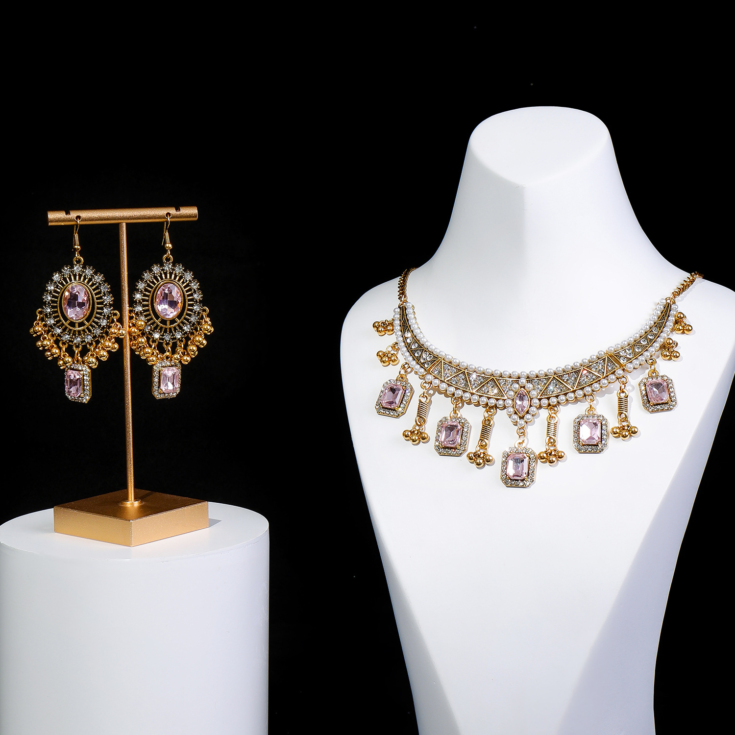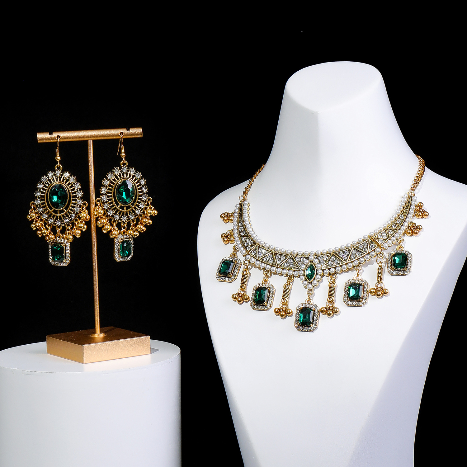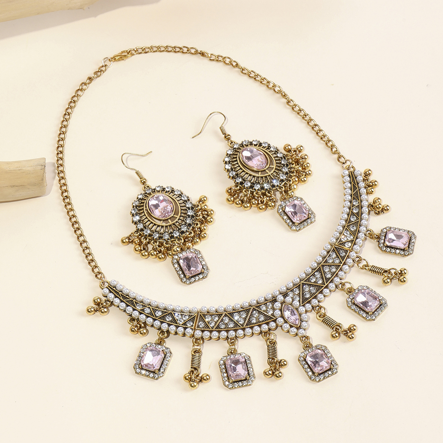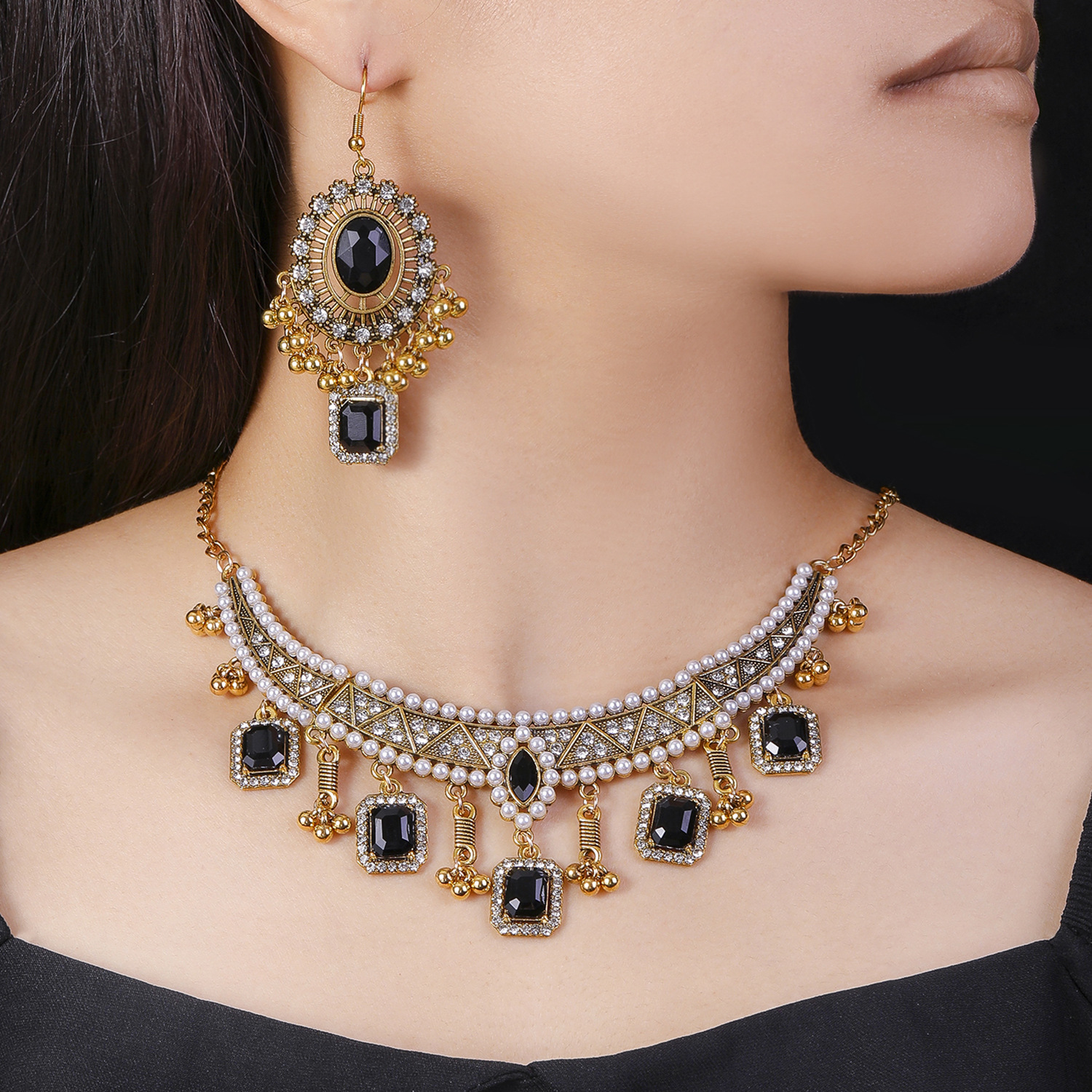 原创复古印度风项链耳环套装异域精致水钻流苏锁骨链耳坠宫廷