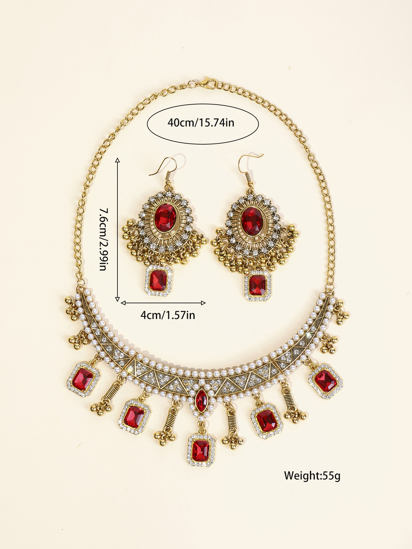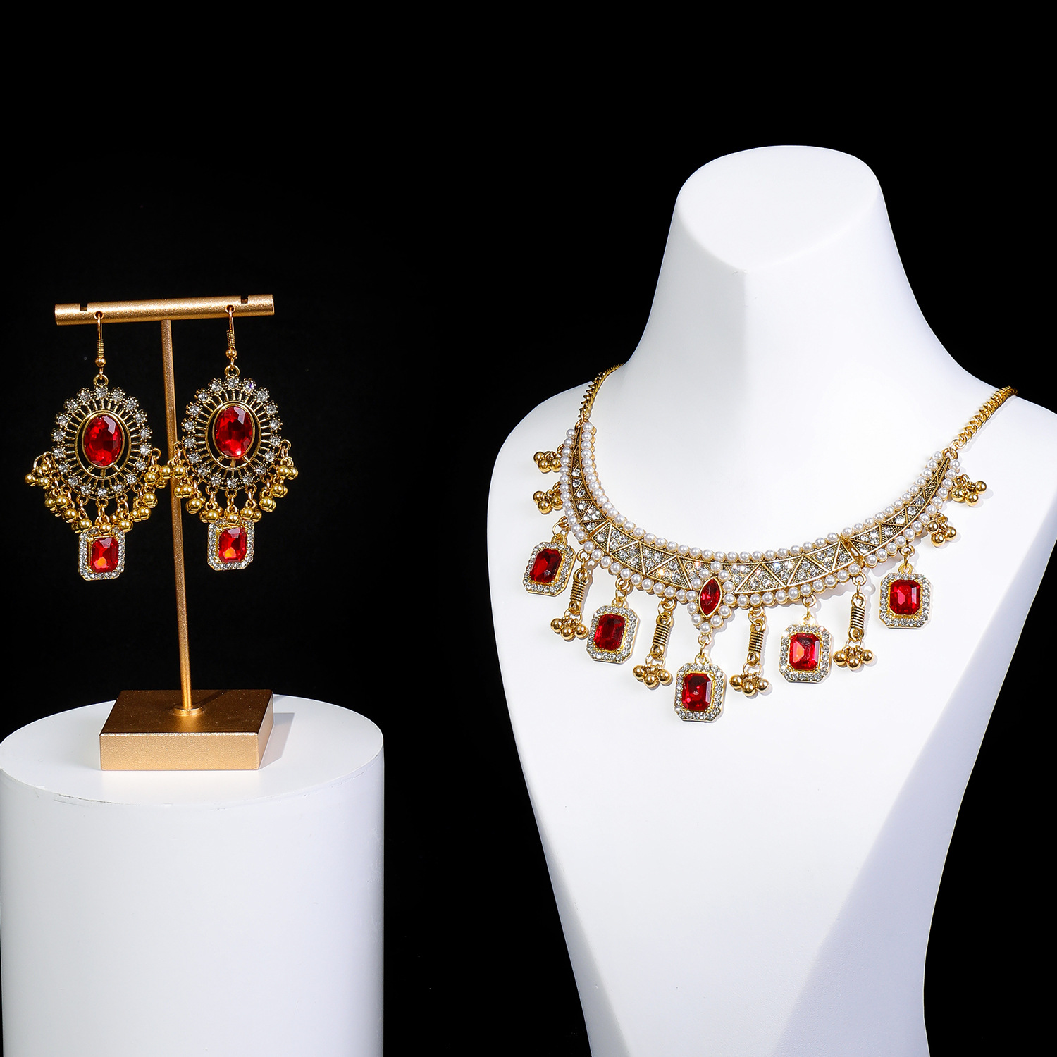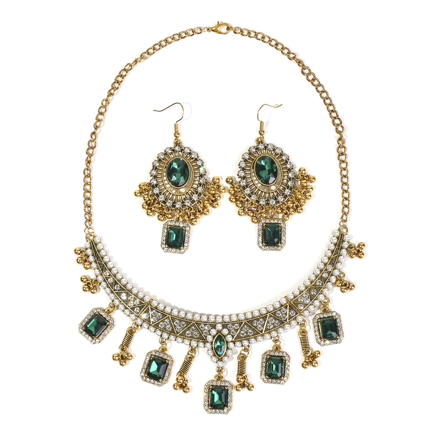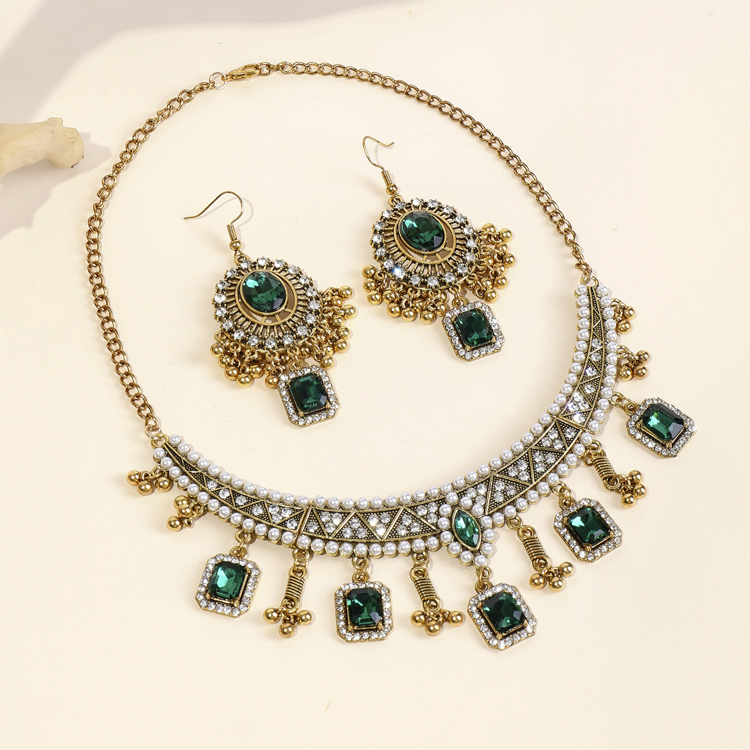 原创复古印度风项链耳环套装异域精致水钻流苏锁骨链耳坠宫廷