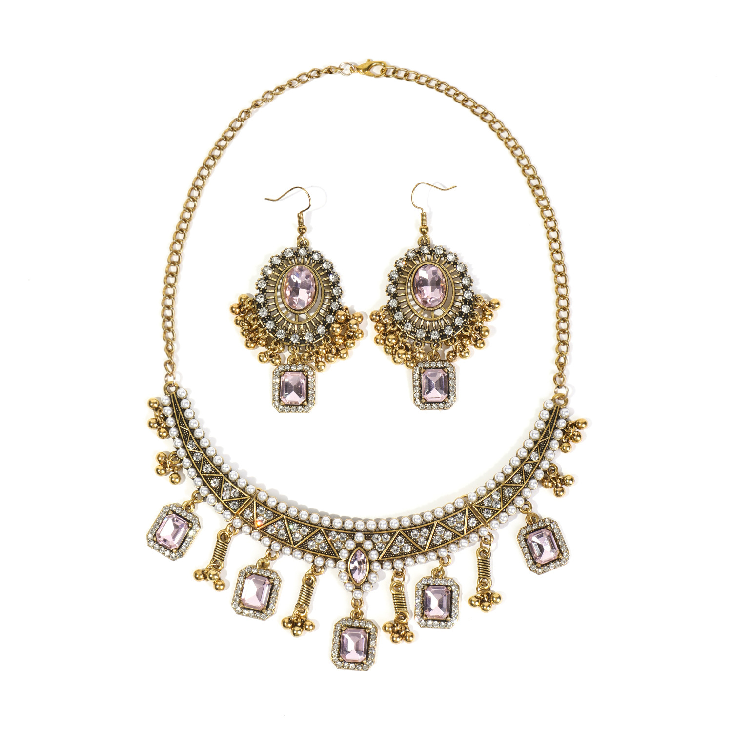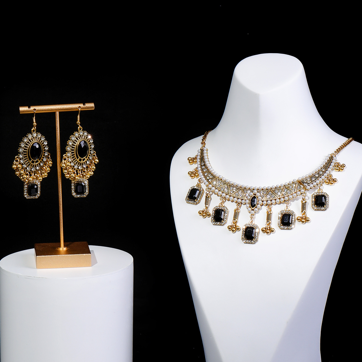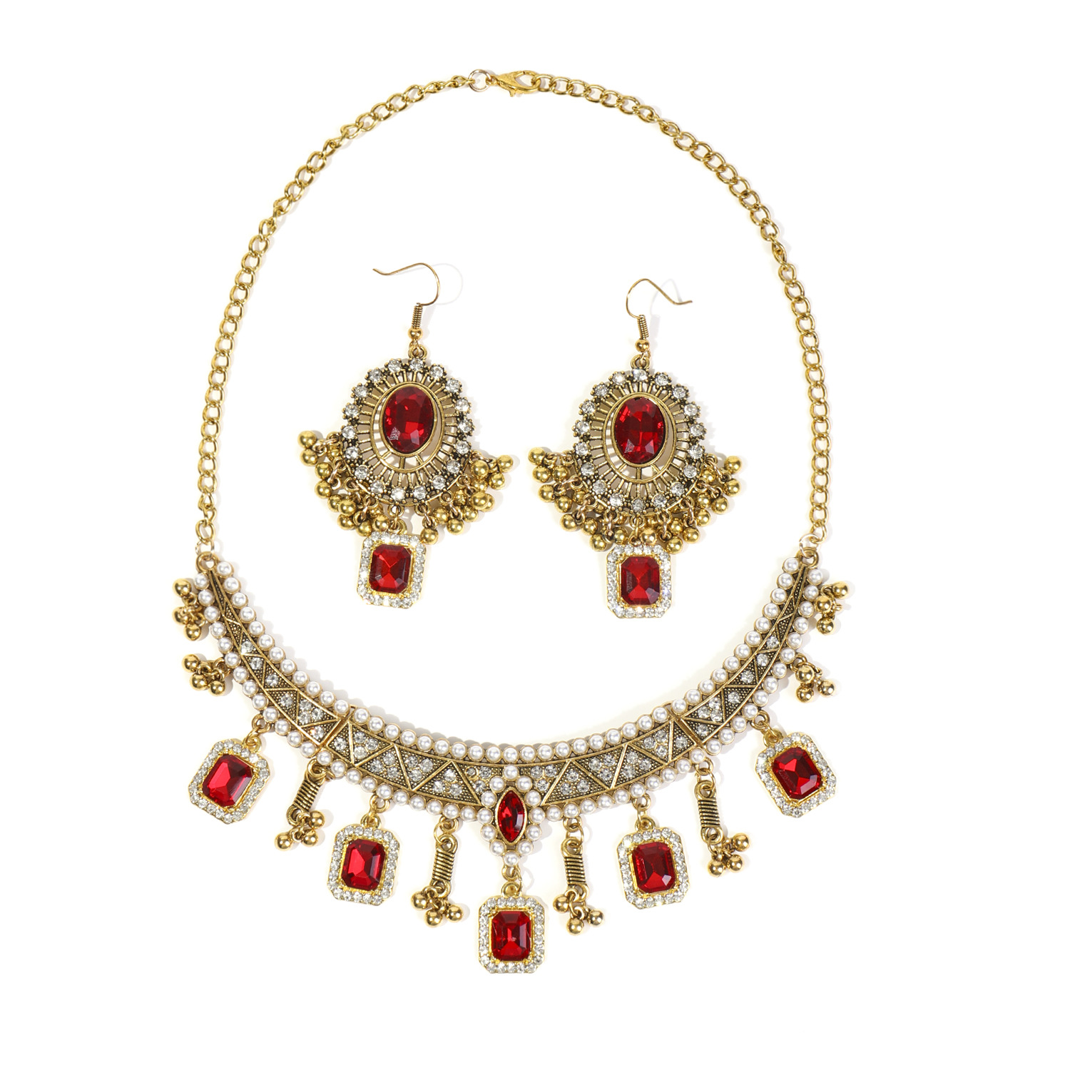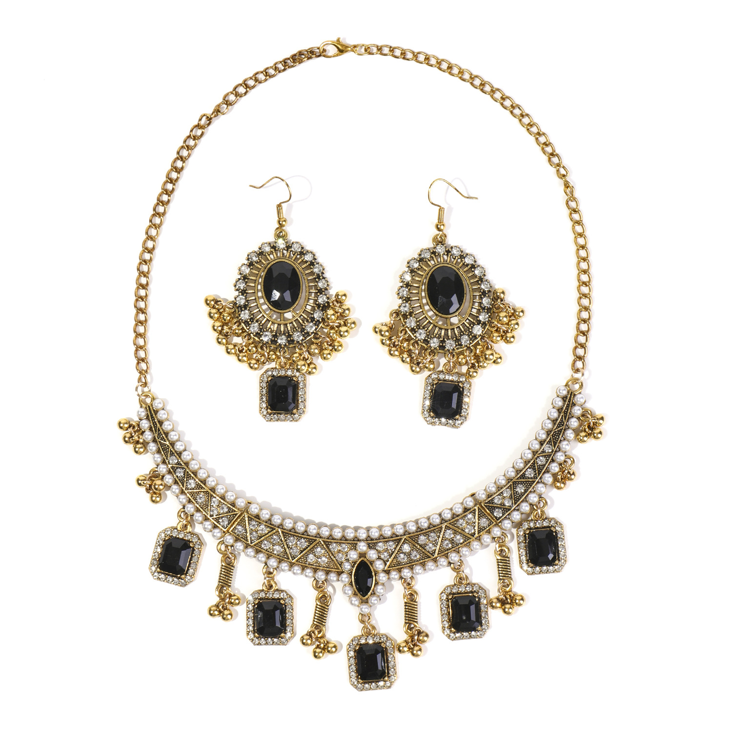 原创复古印度风项链耳环套装异域精致水钻流苏锁骨链耳坠宫廷