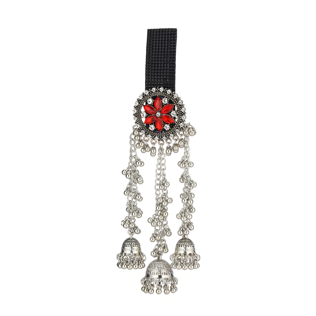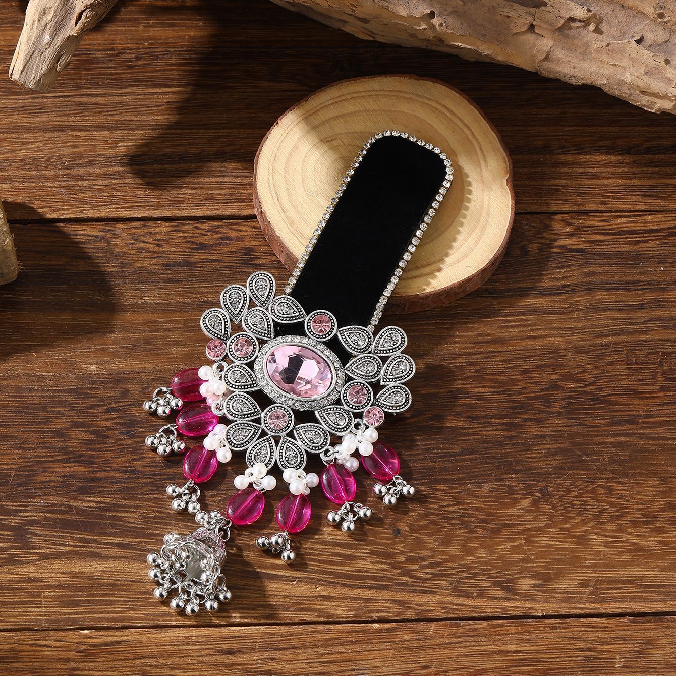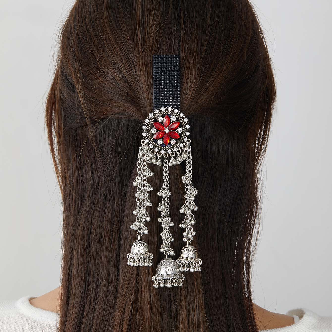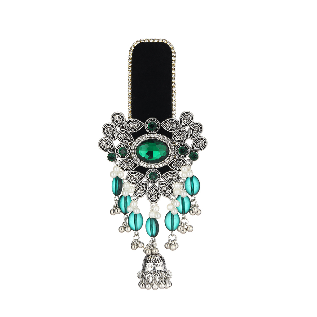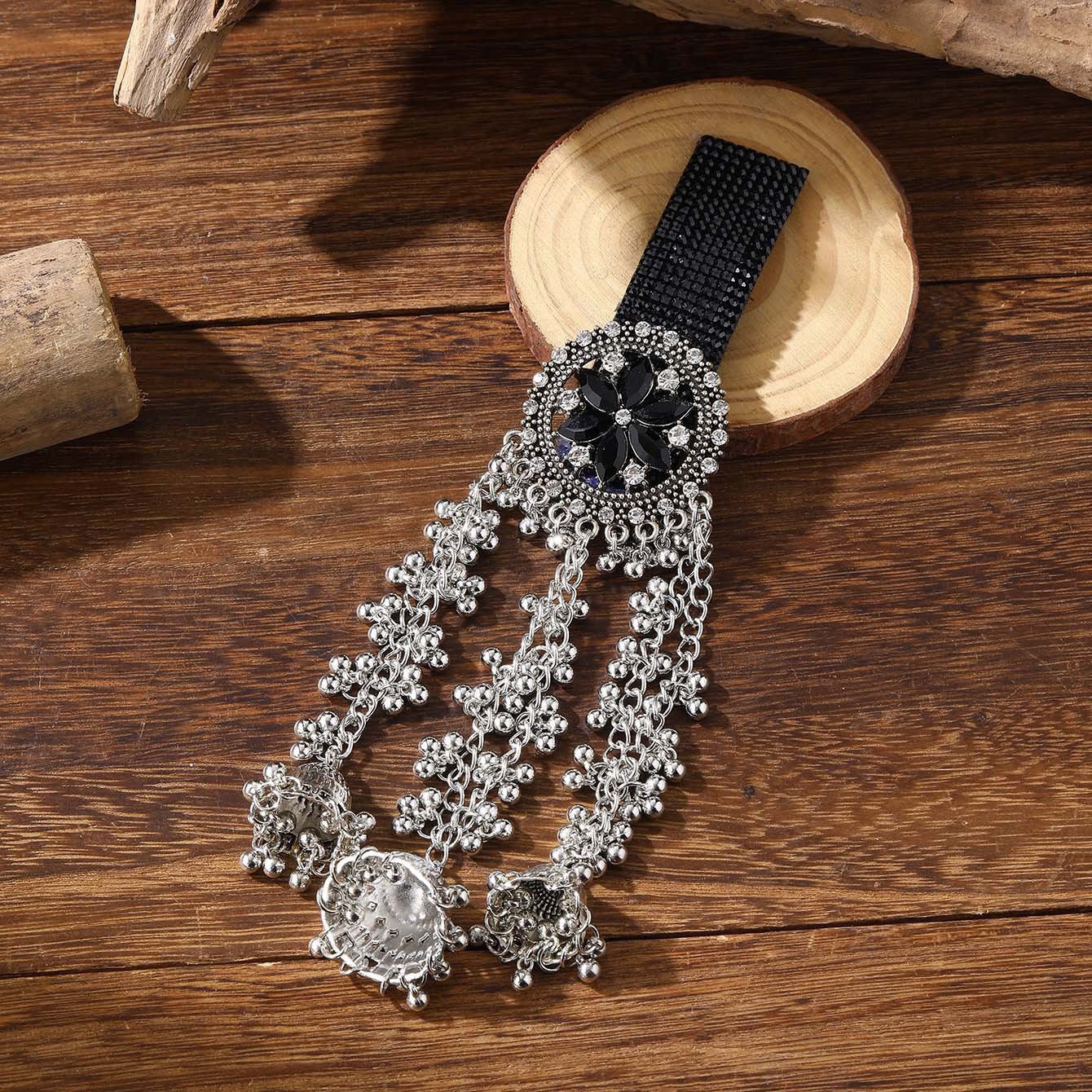跨境爆款胸针时尚复古印度风民族风头饰夸张流苏彩色水晶花发夹