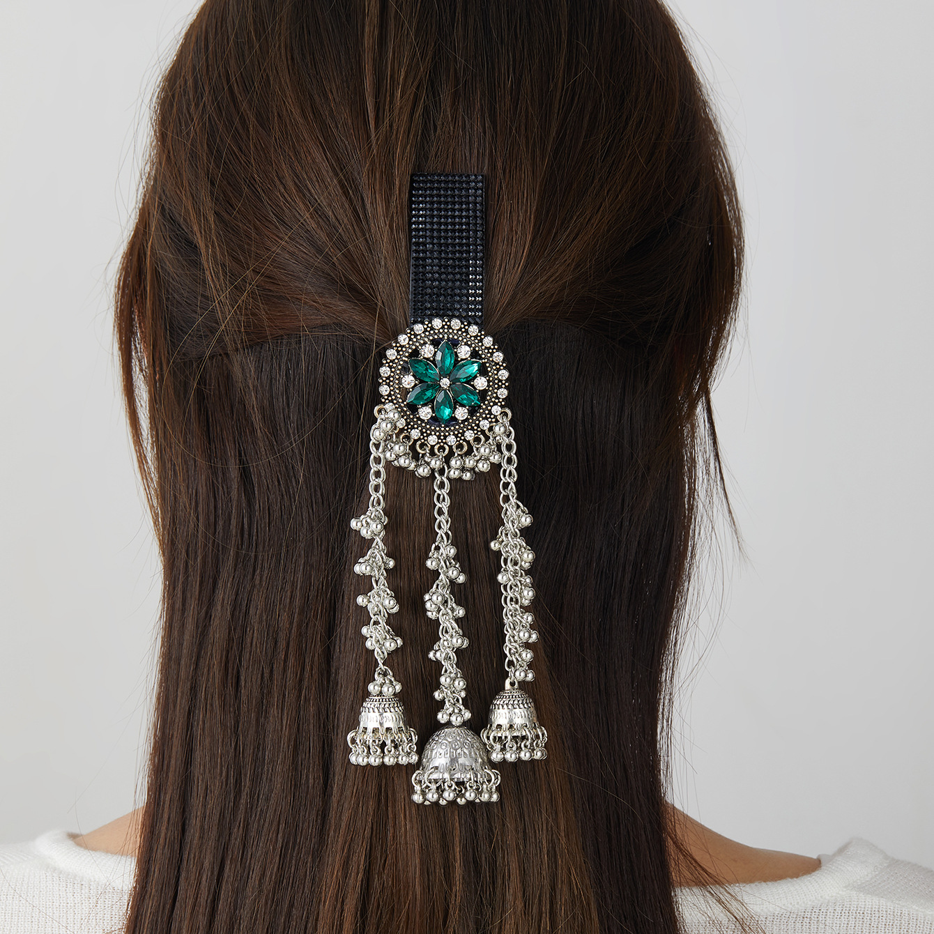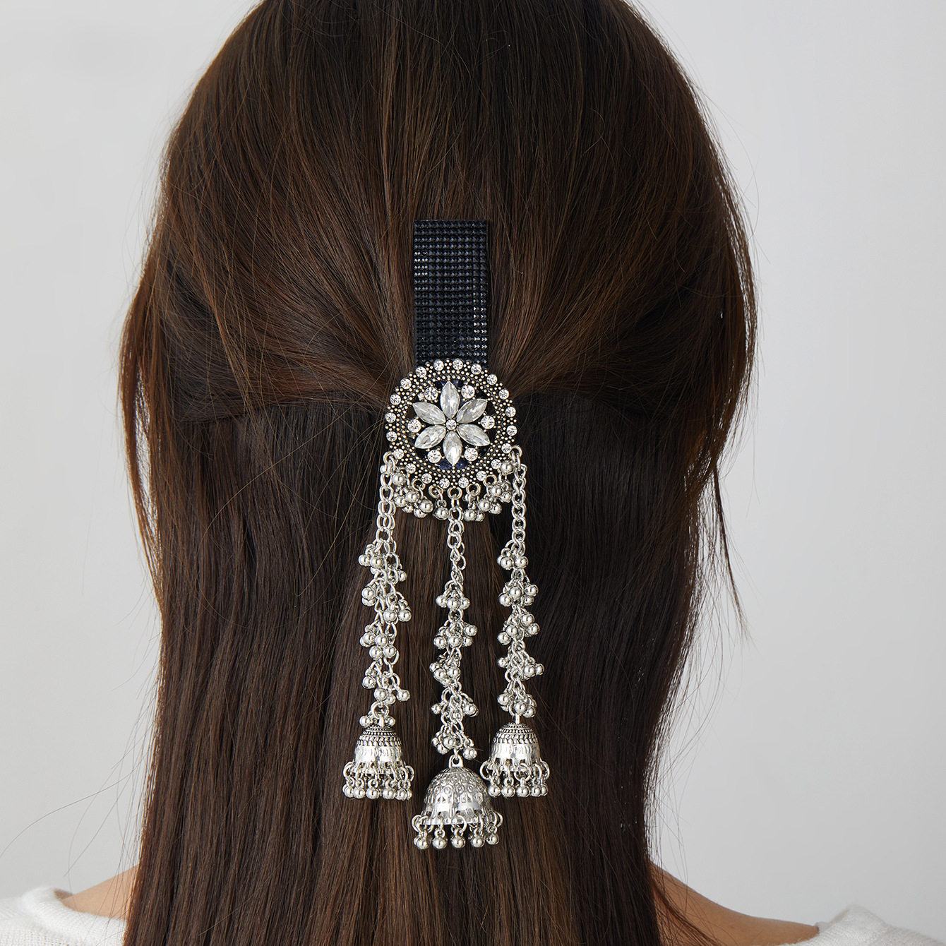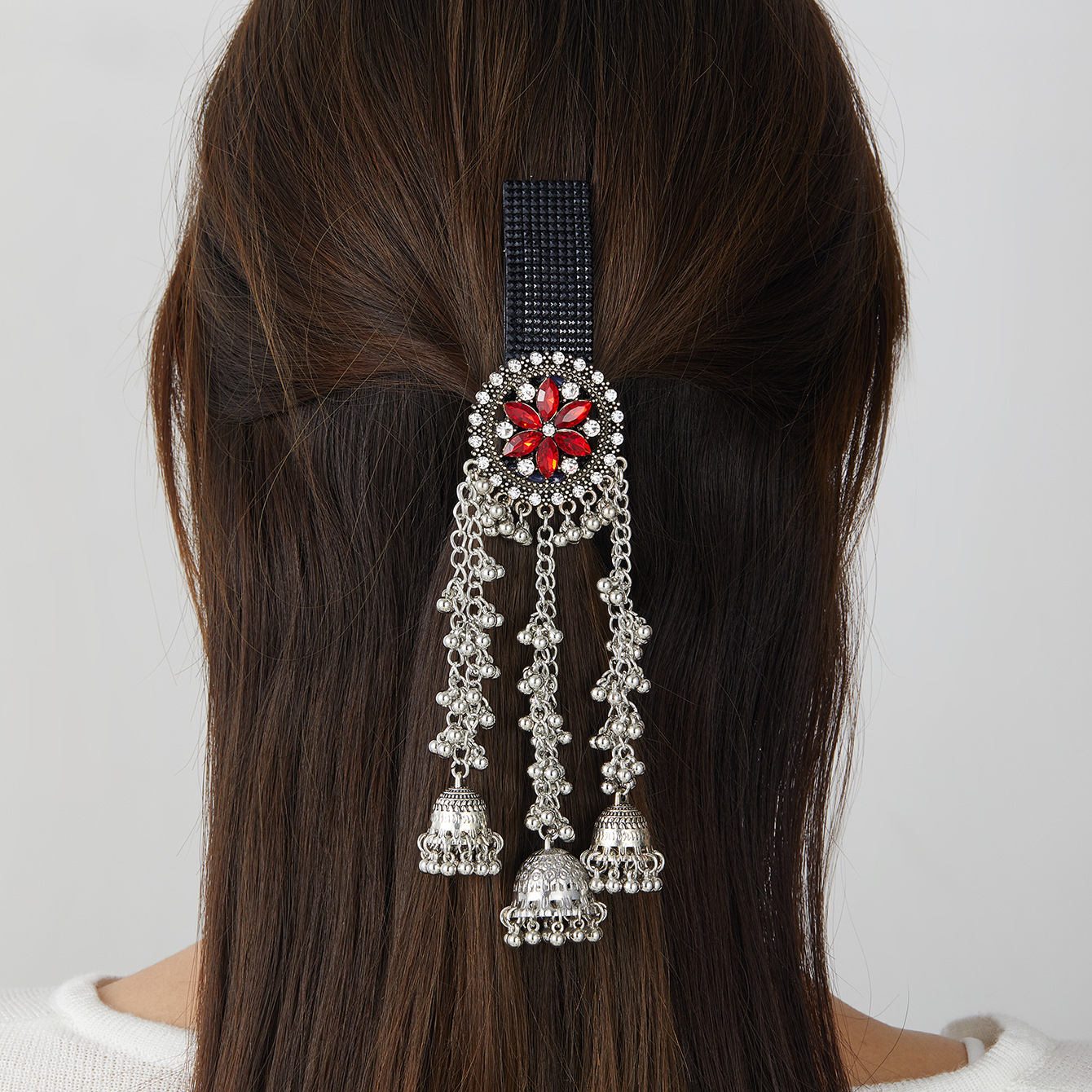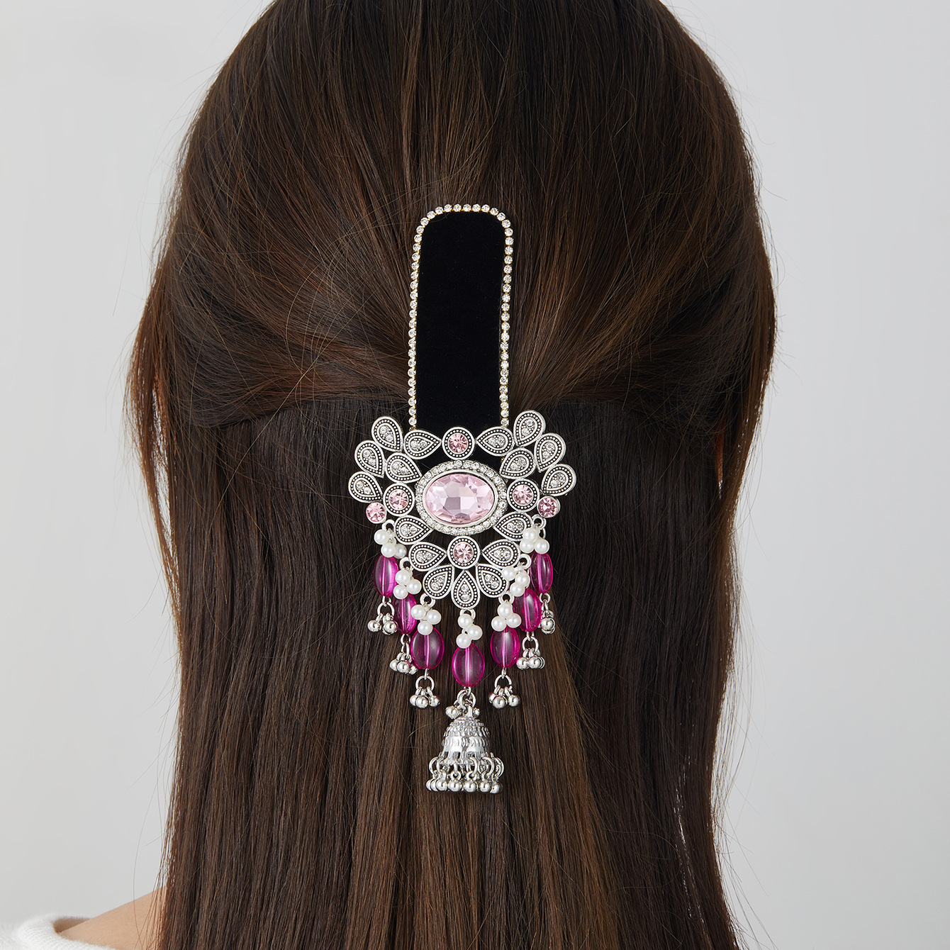 跨境爆款胸针时尚复古印度风民族风头饰夸张流苏彩色水晶花发夹